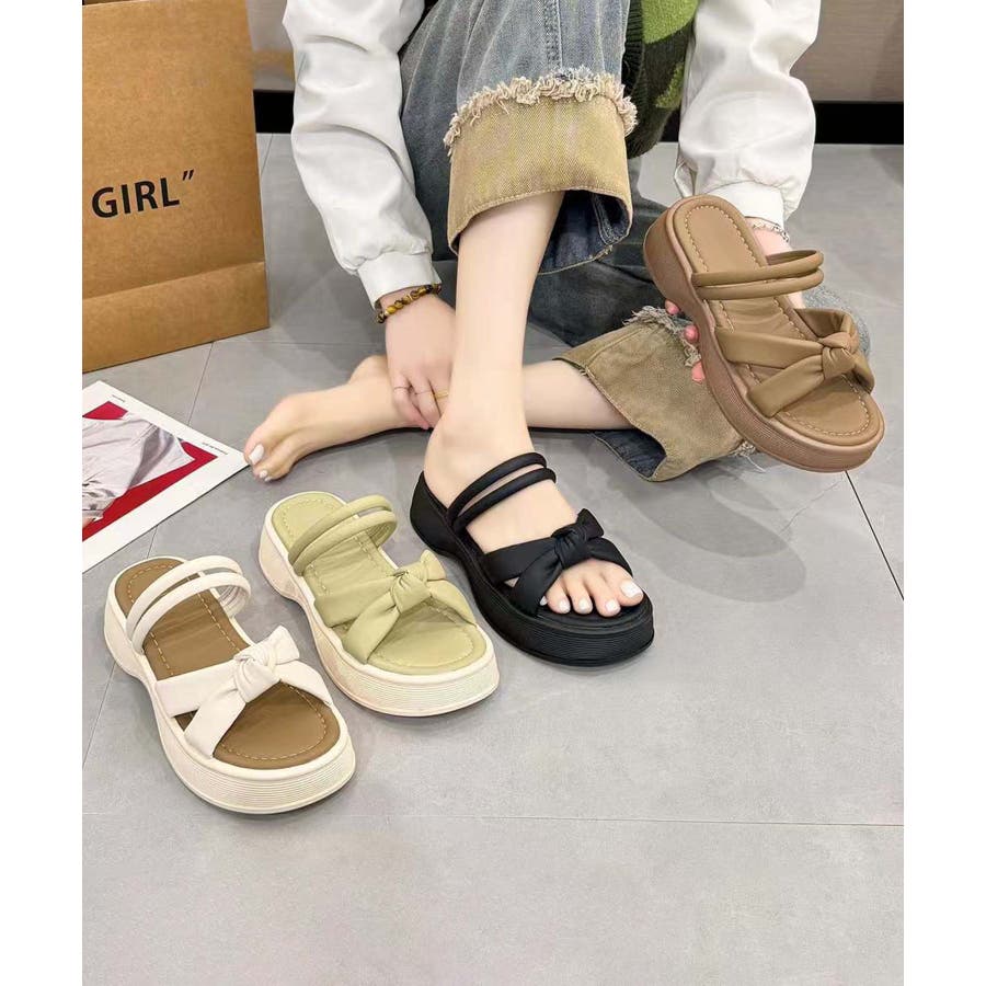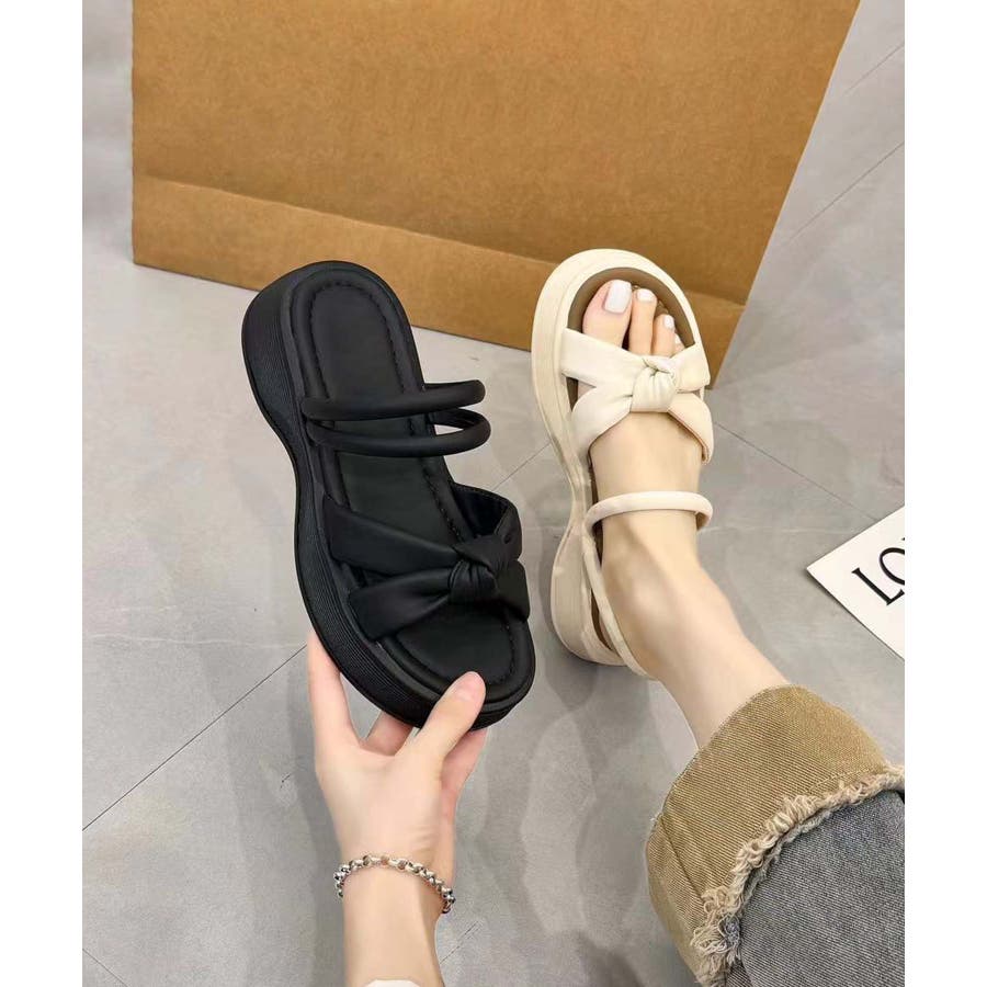 【shoes 365】リボンデザインダブルストラップ厚底サンダル