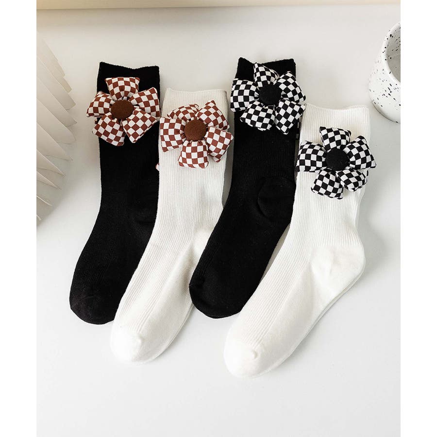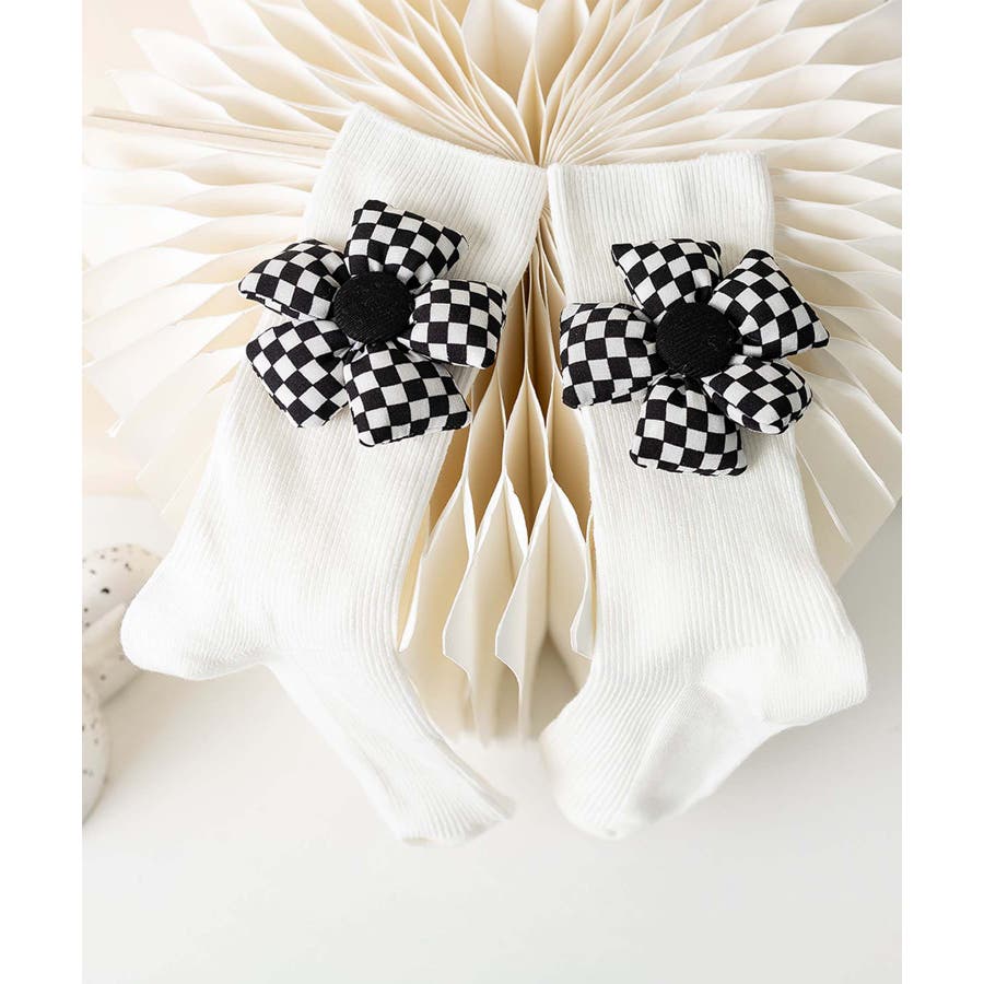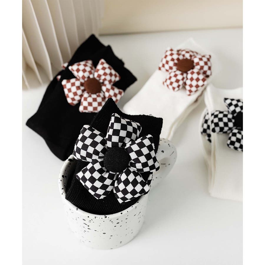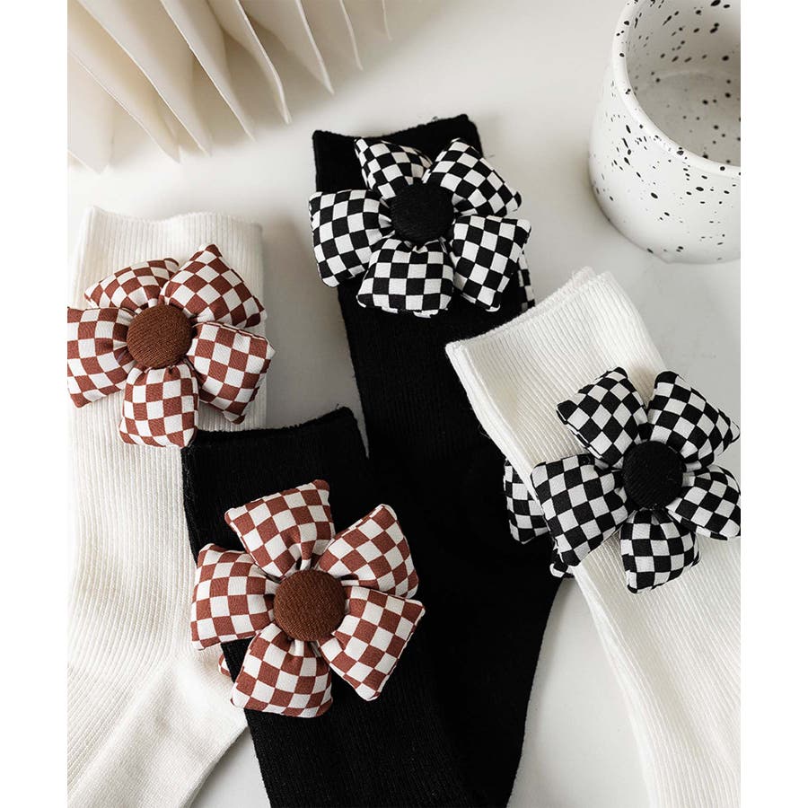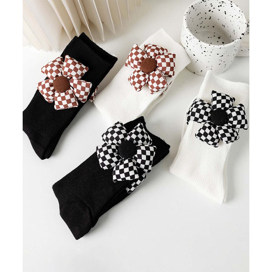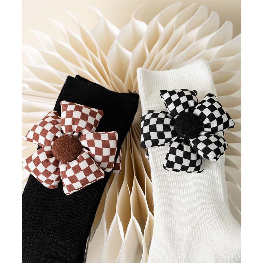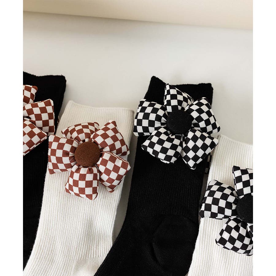 チェック柄大きな花ソックス