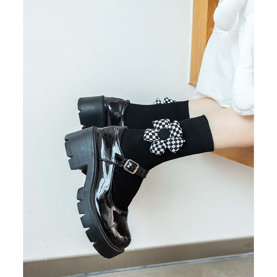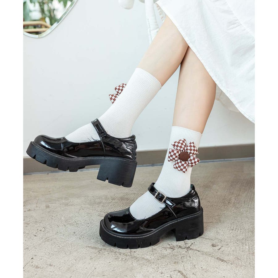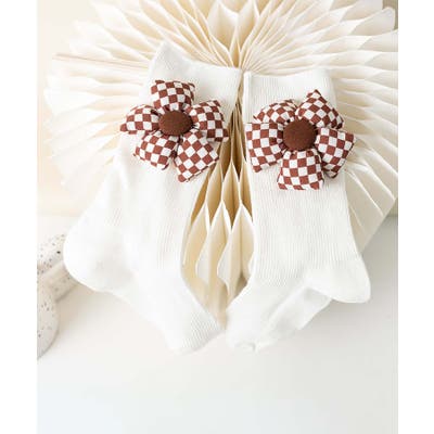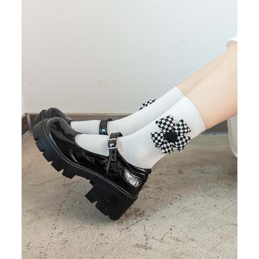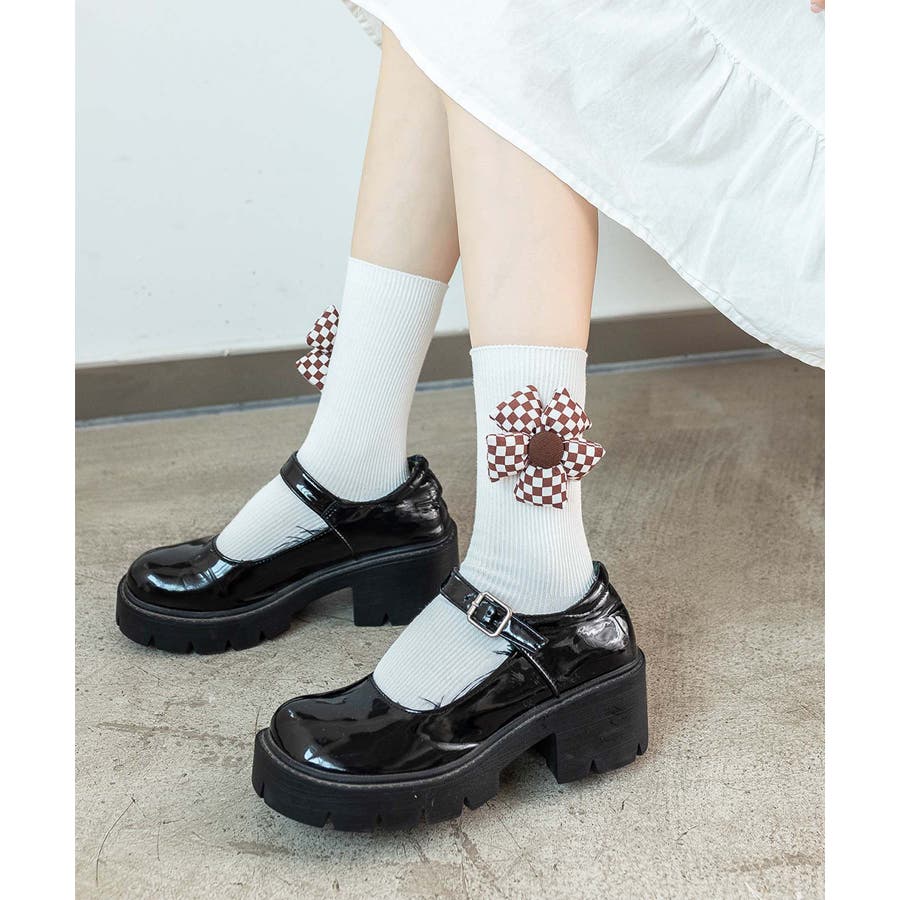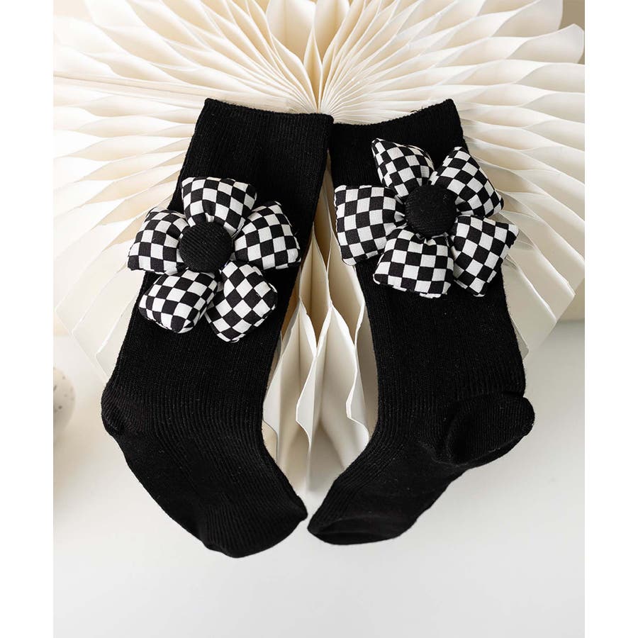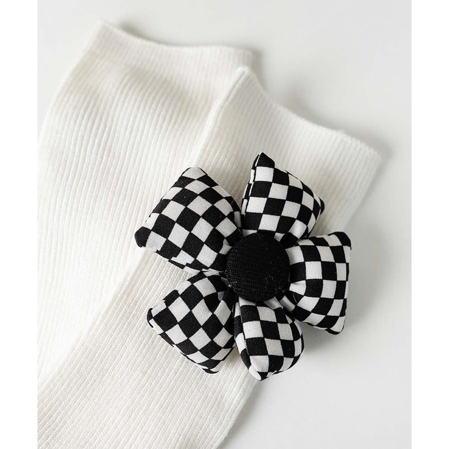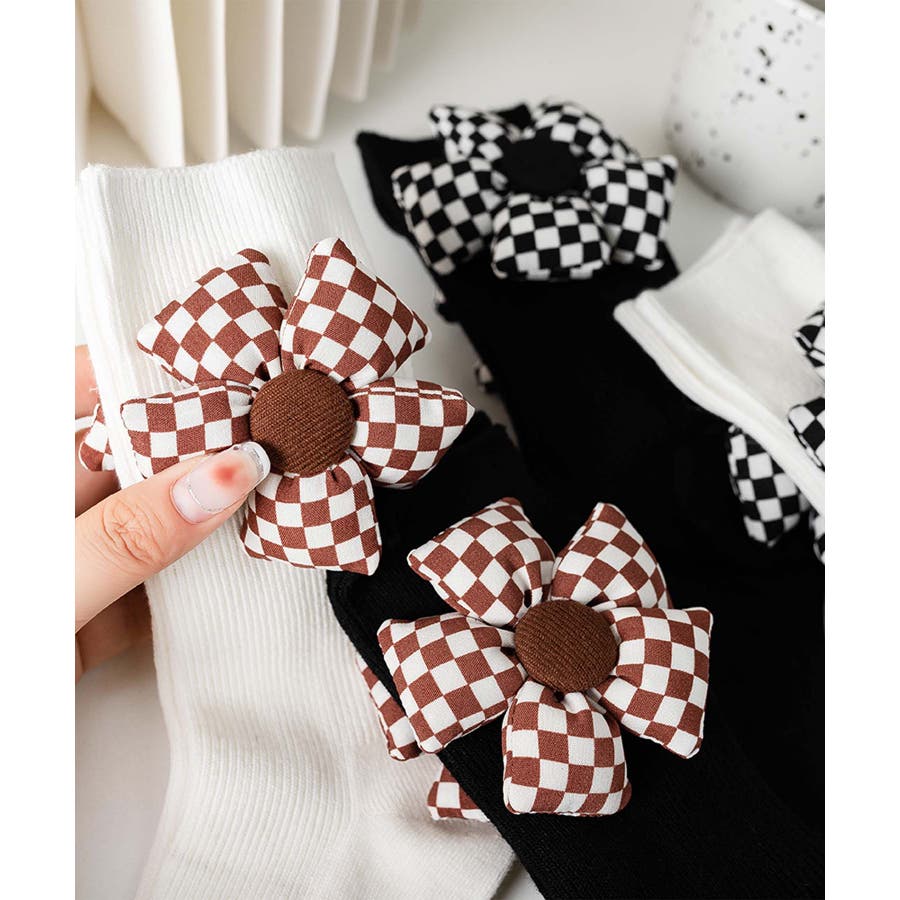 チェック柄大きな花ソックス