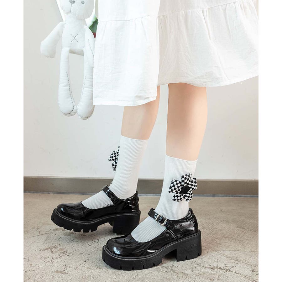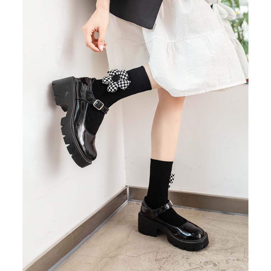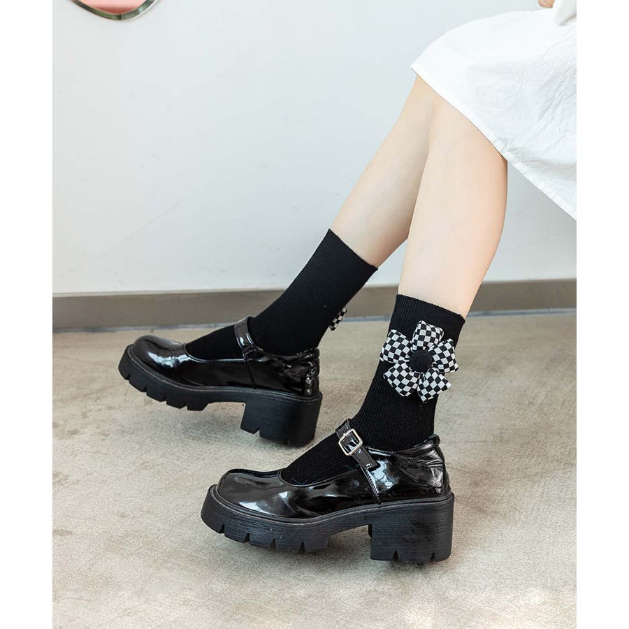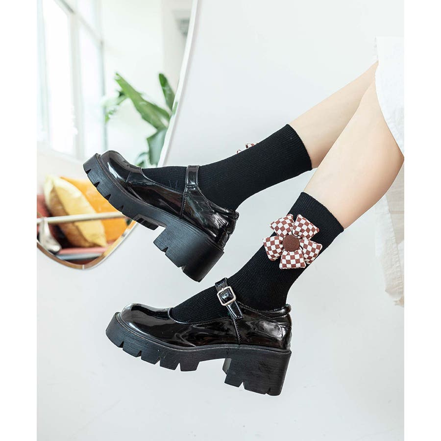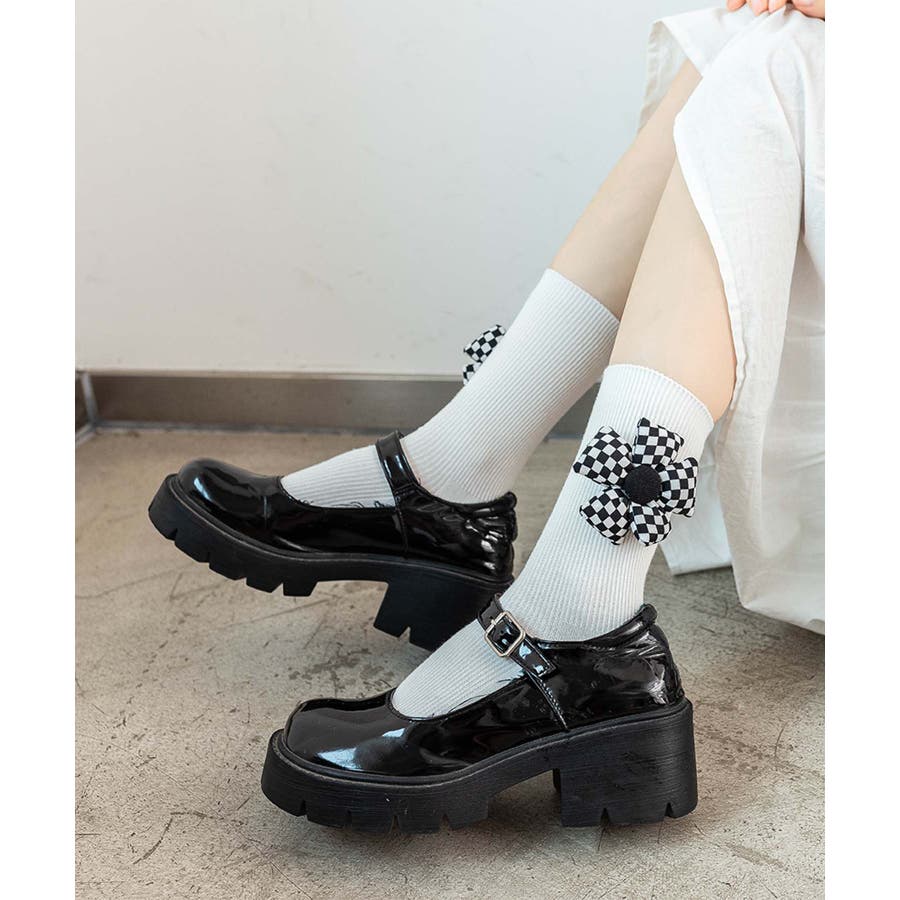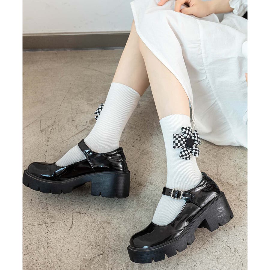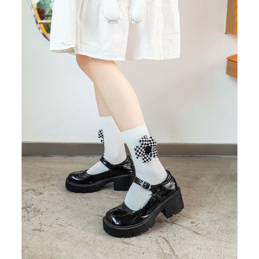 チェック柄大きな花ソックス