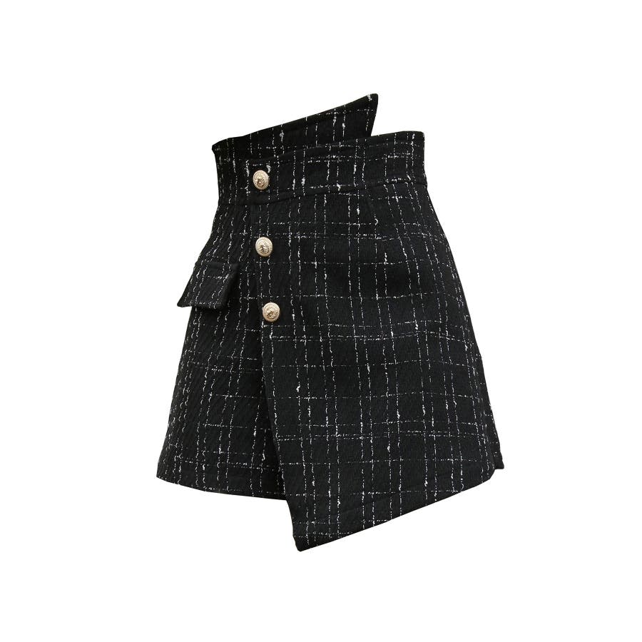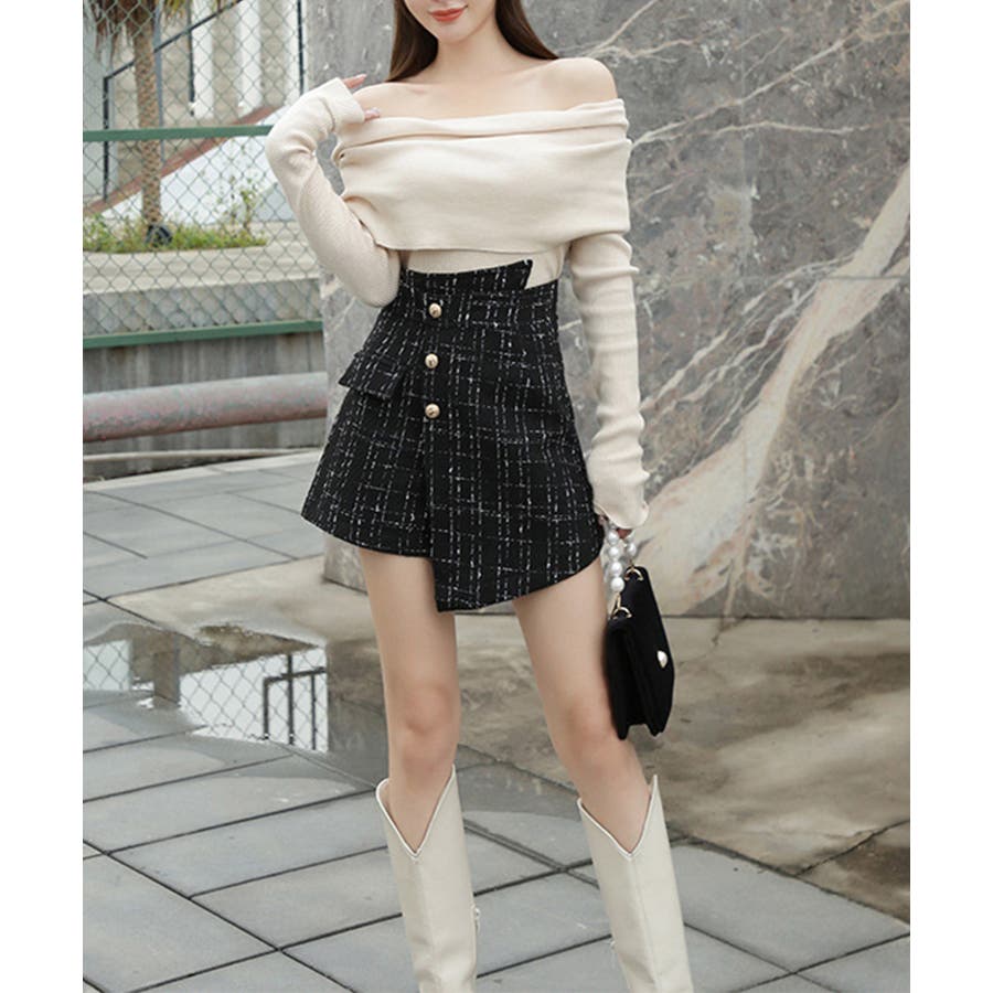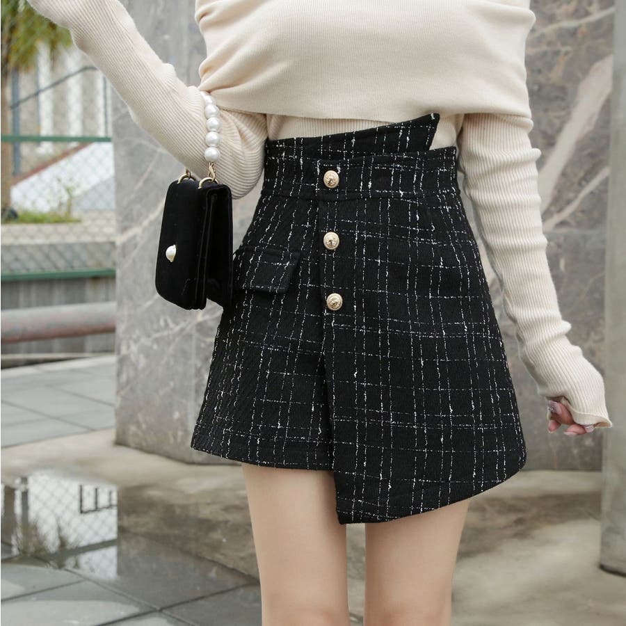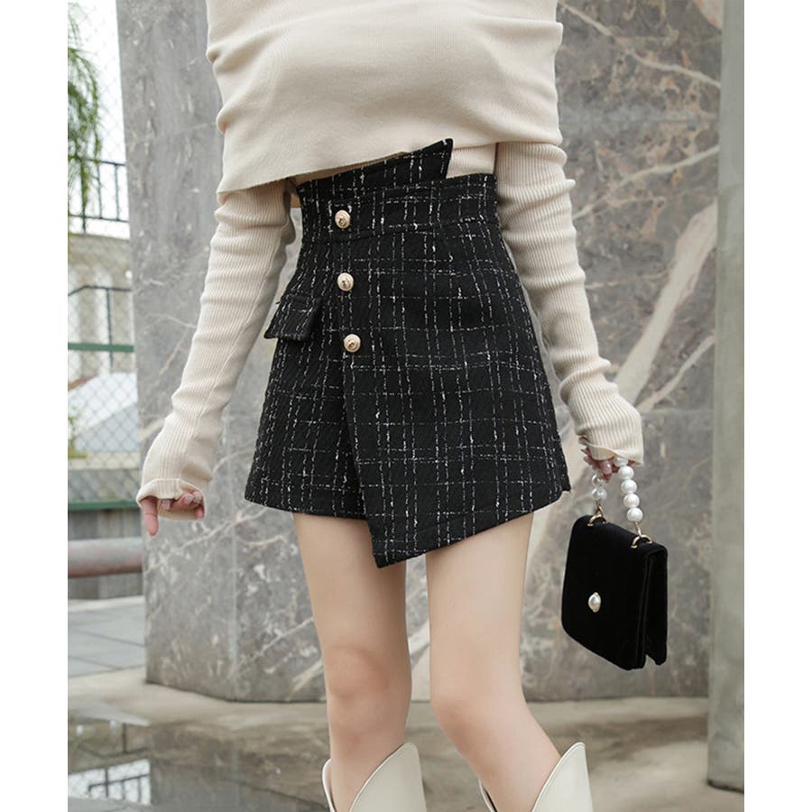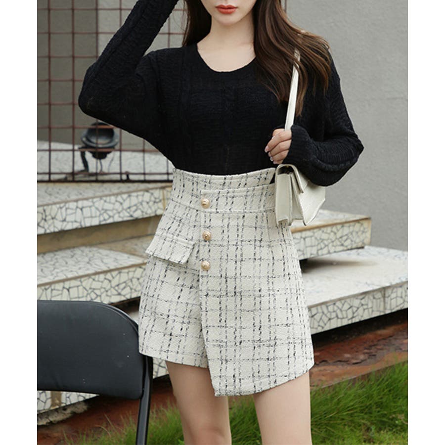 ラップスカート風ツイードショートパンツ 韓国ファッション 春夏秋冬
