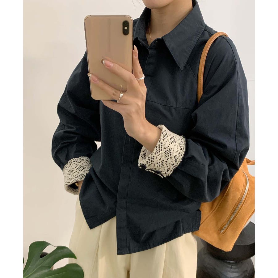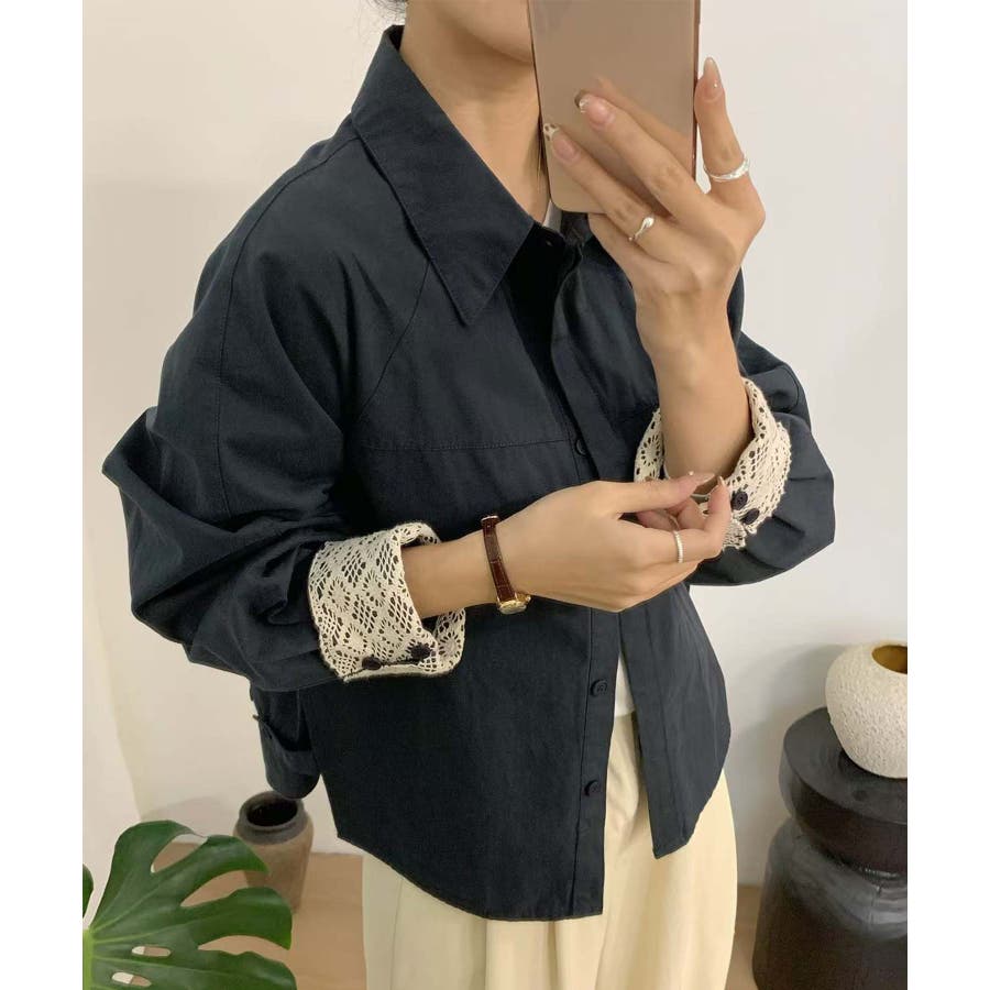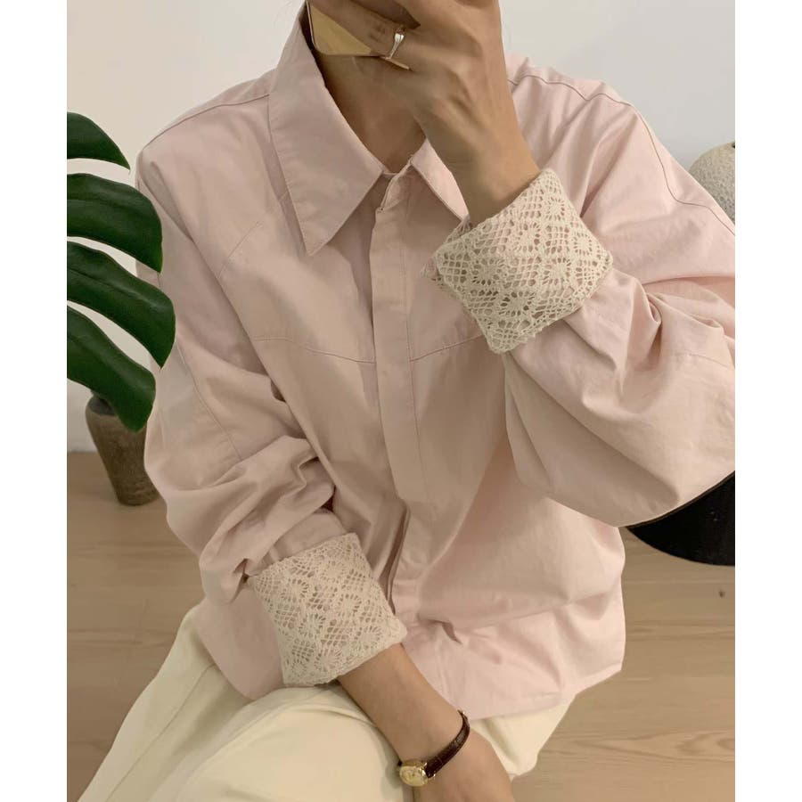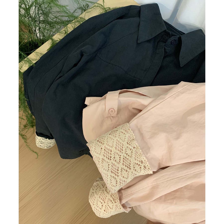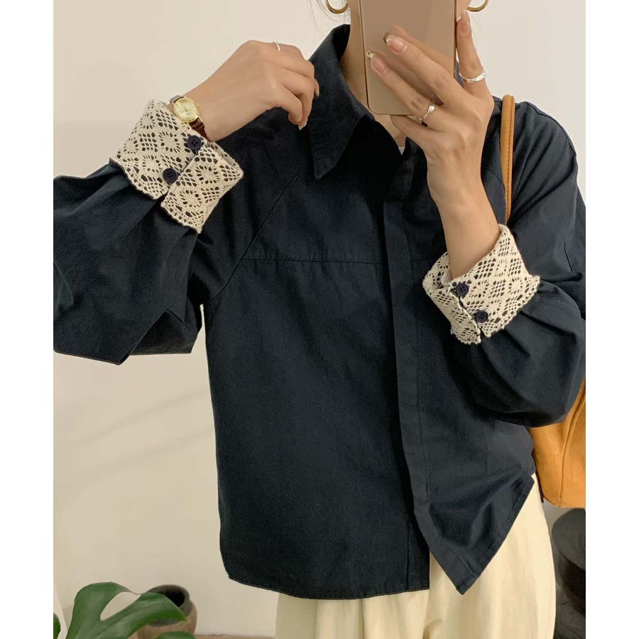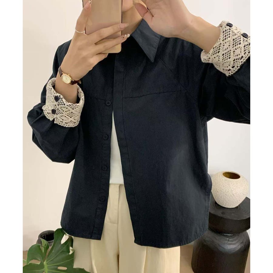 レースディテールコットンシャツ