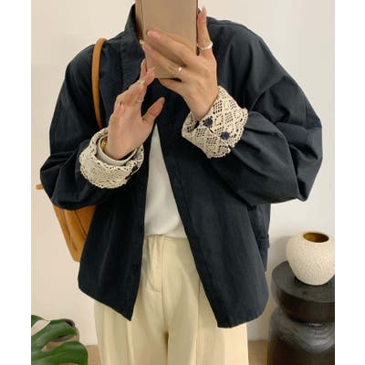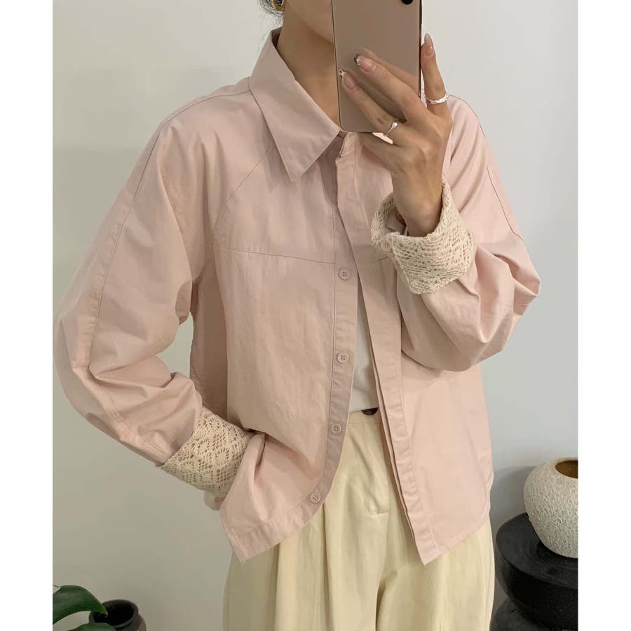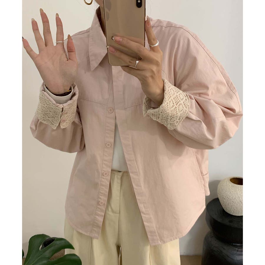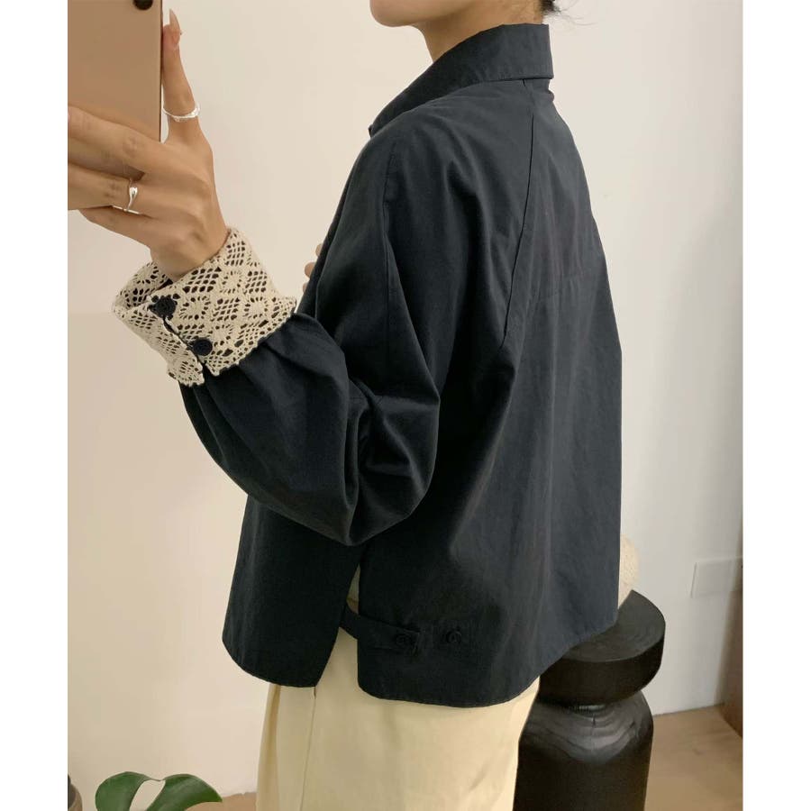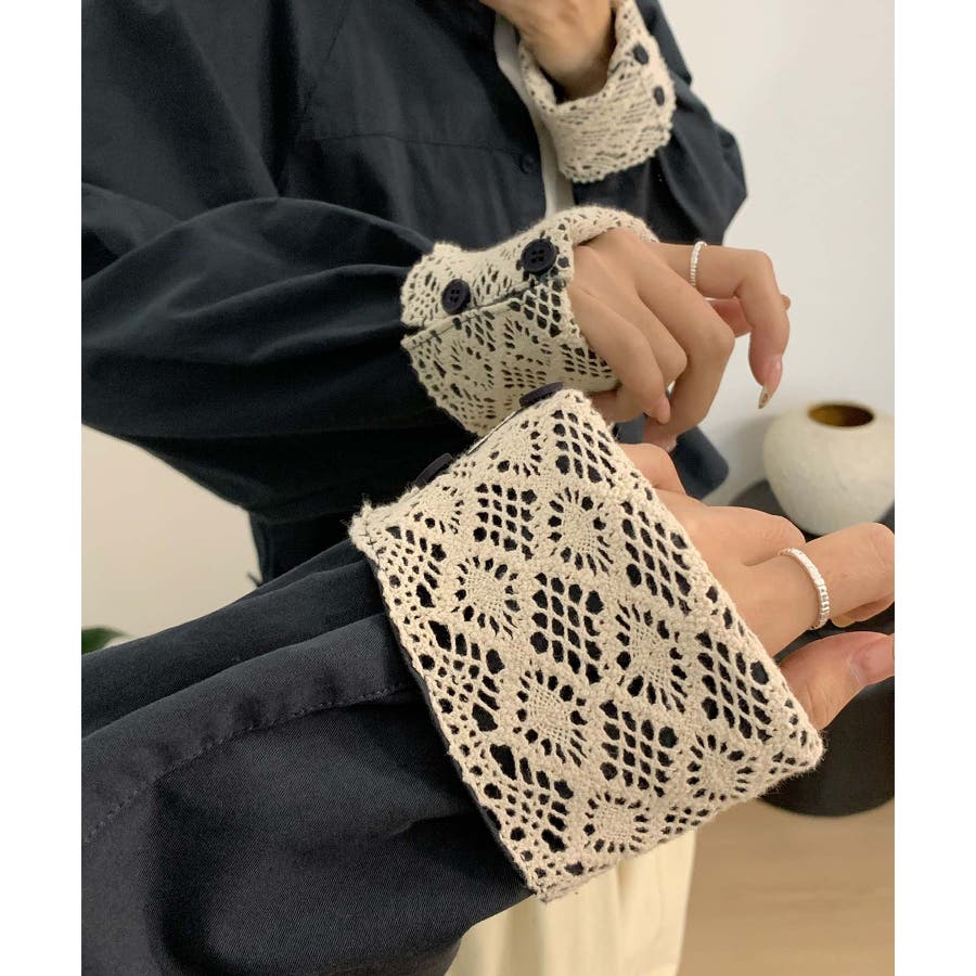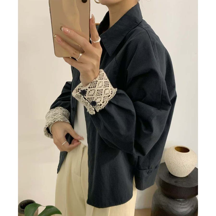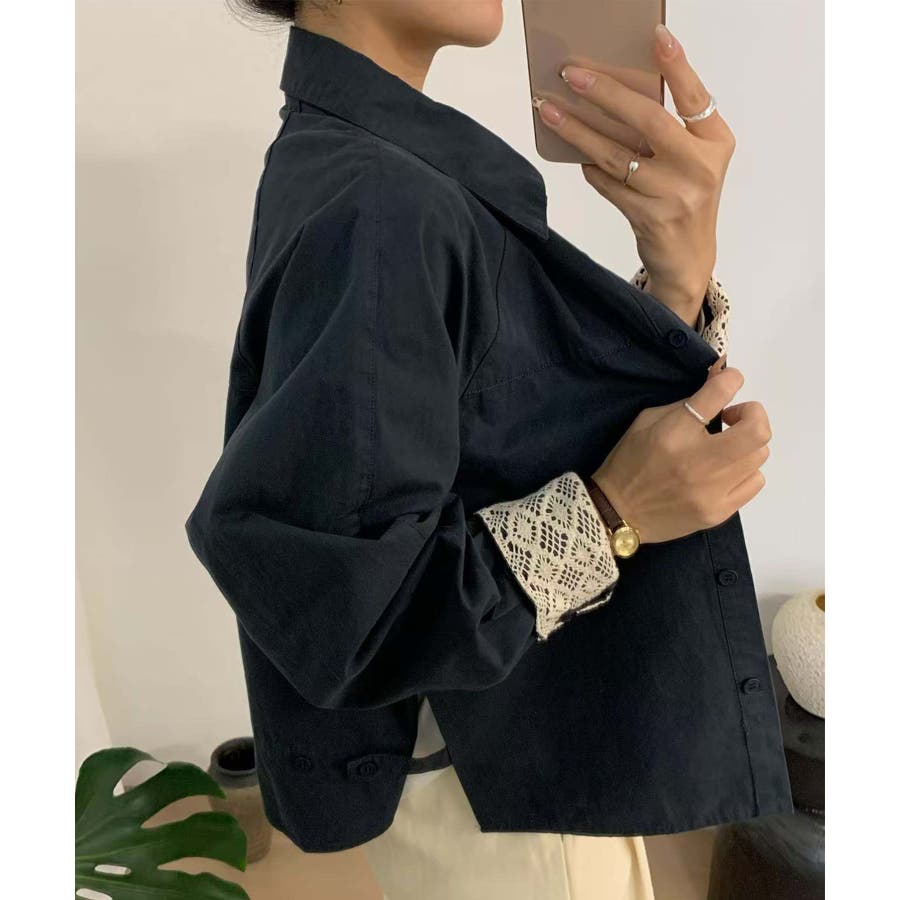 レースディテールコットンシャツ