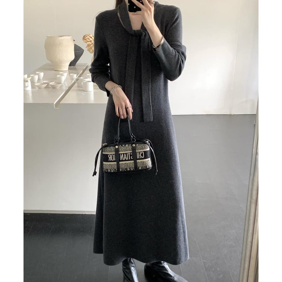 ボウタイニットワンピース【AW】