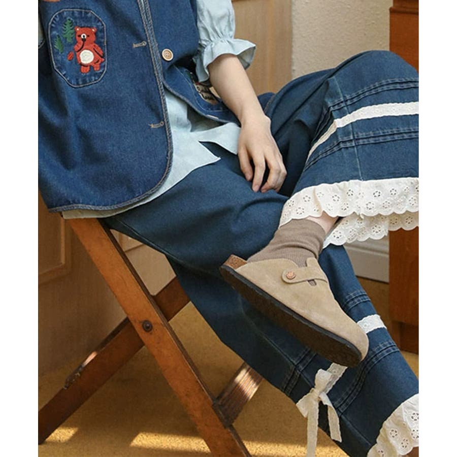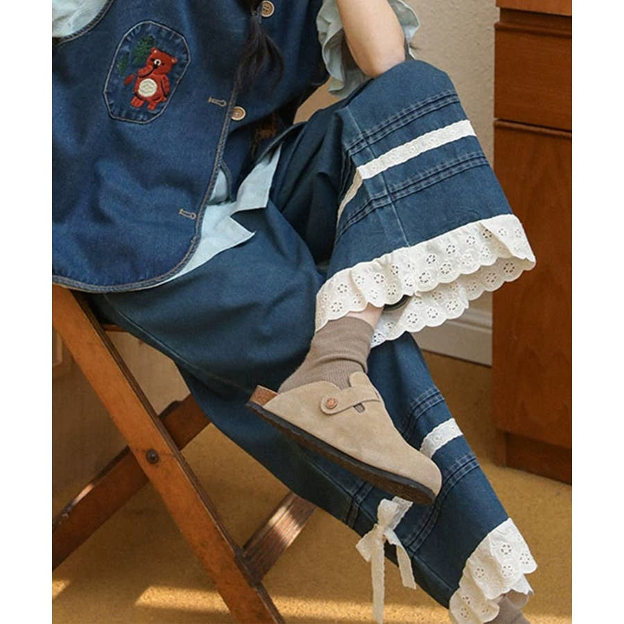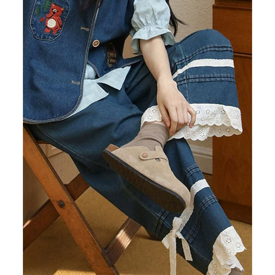 春 10代 オフィス セクシー 春アウター ロンT オフィスカジュアル ホーム スウェット 厚底スニーカー スプリングコート 大きいサイズ 韓国ファッション 春 ワンピ トイ レディース 春服 韓国 ベスト 服飾雑貨 ワイドシルエットデニムパンツ 裾フリンジ&レースデザイン 韓国風ゆるデニムパンツ