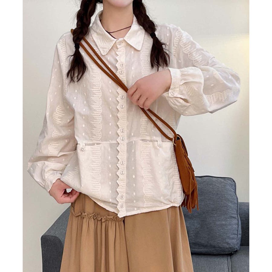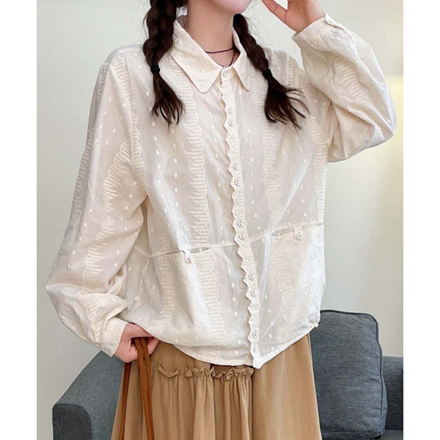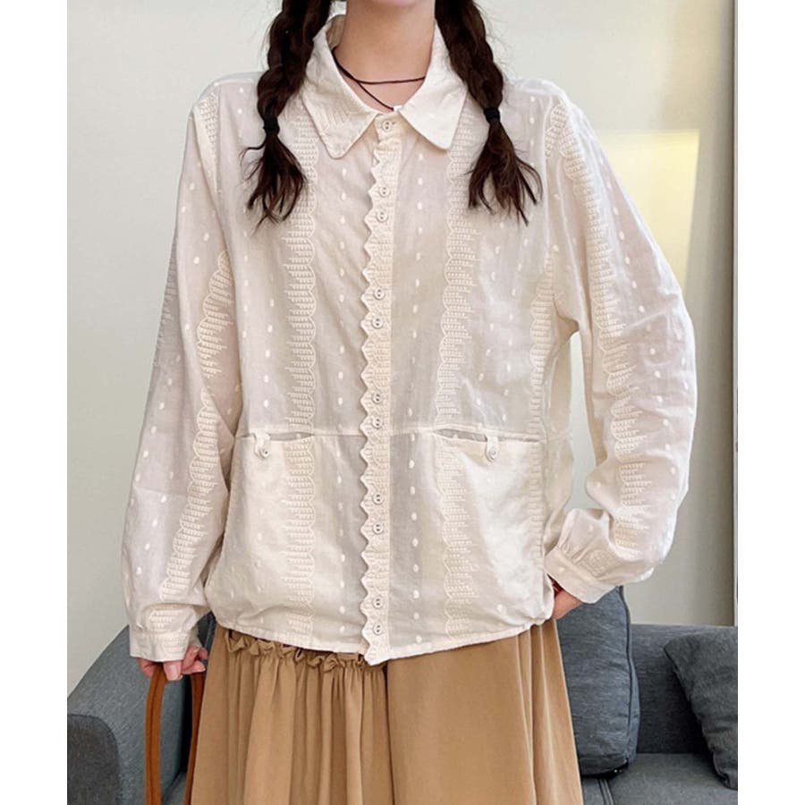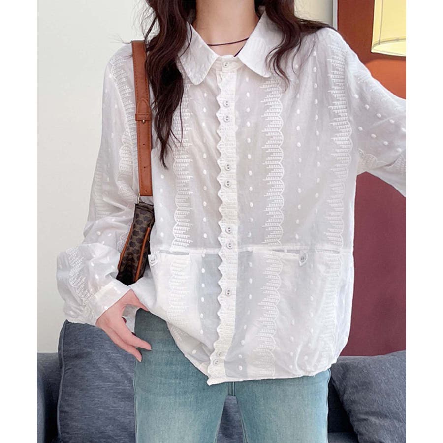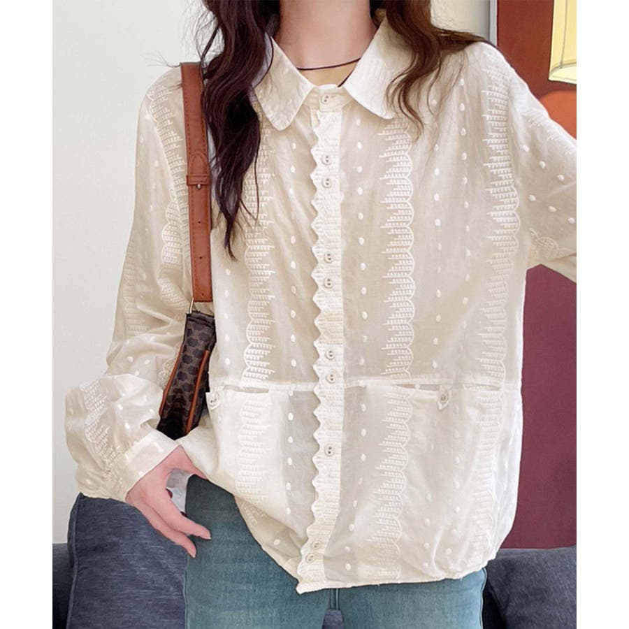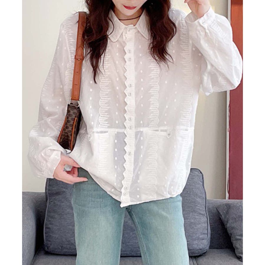 レーストリムドットシャツブラウス