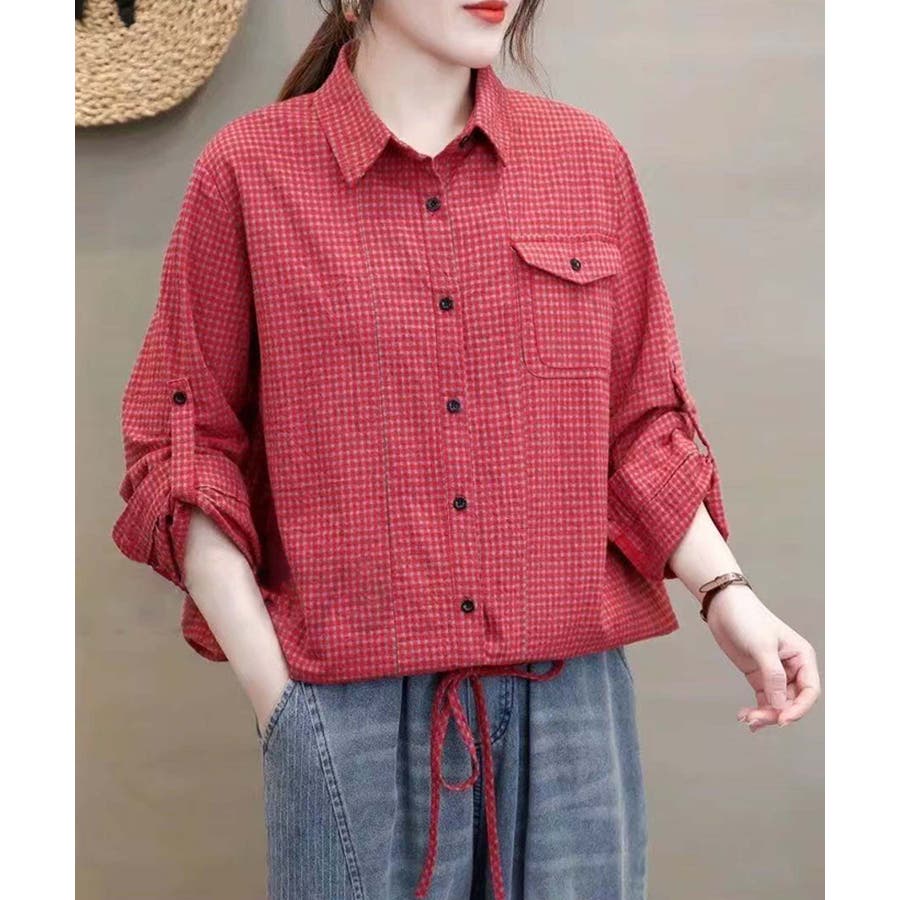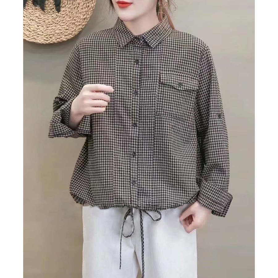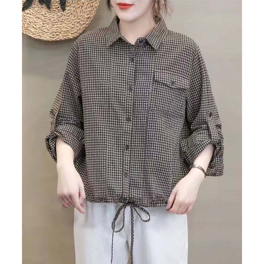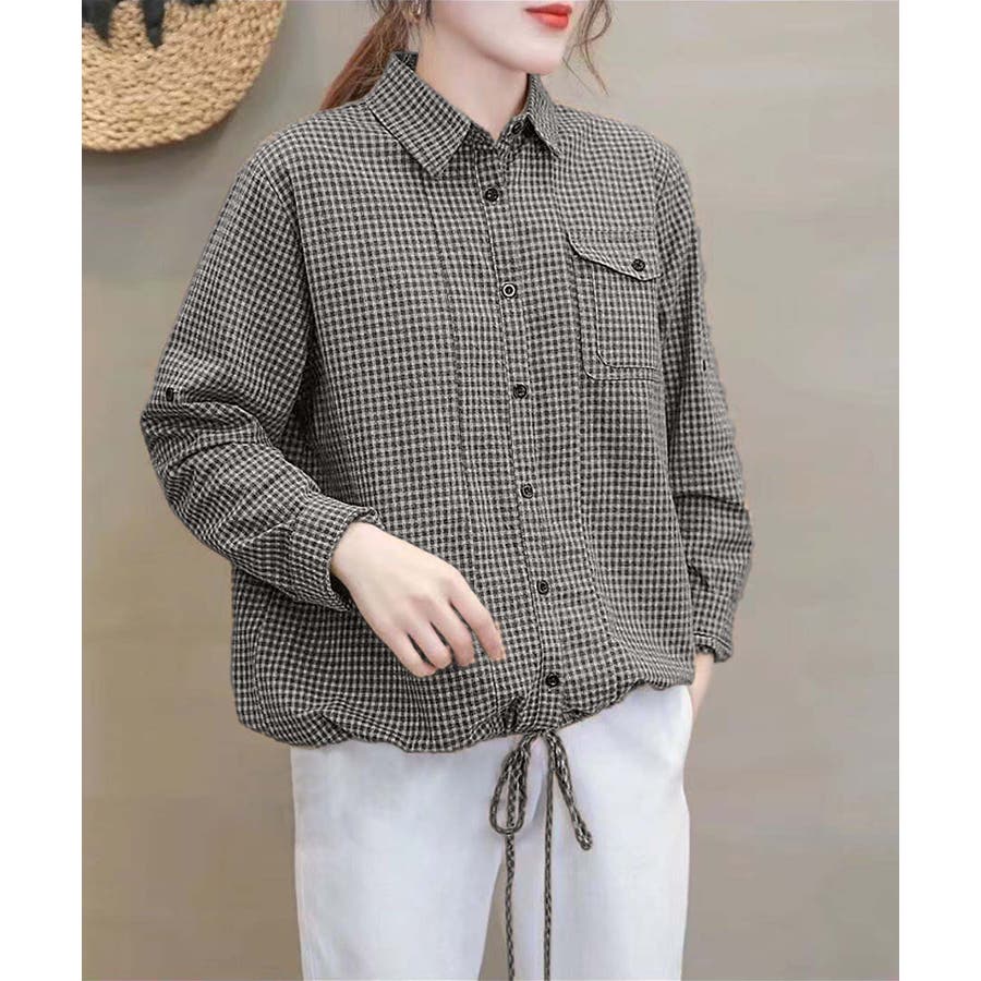 ■デザインレトロ感のある細かいチェック柄が特徴的なシャツ。フロントにはボタン付きの大きなフラップポケットが施されています。ウエスト部分にはドローストリングがあり、シルエットを調整できるため、リラックスした着心地が楽しめます。袖はロールアップベルト付きで色々な着こなしが楽しめます。■素材綿100%の素材を使用しており、肌触りが非常に柔らかく、通気性に優れています。軽やかで快適な着心地が特徴で、長時間着用しても快適です。■コーディネートの提案・デニムのパンツやスカートと合わせて、カジュアルな日常スタイルに。・シンプルなボトムスと合わせるとチェックのシャツが引き立ちます。・シンプルなサンダルやローファーと合わせて、軽やかでリラクシーなコーディネートに。
