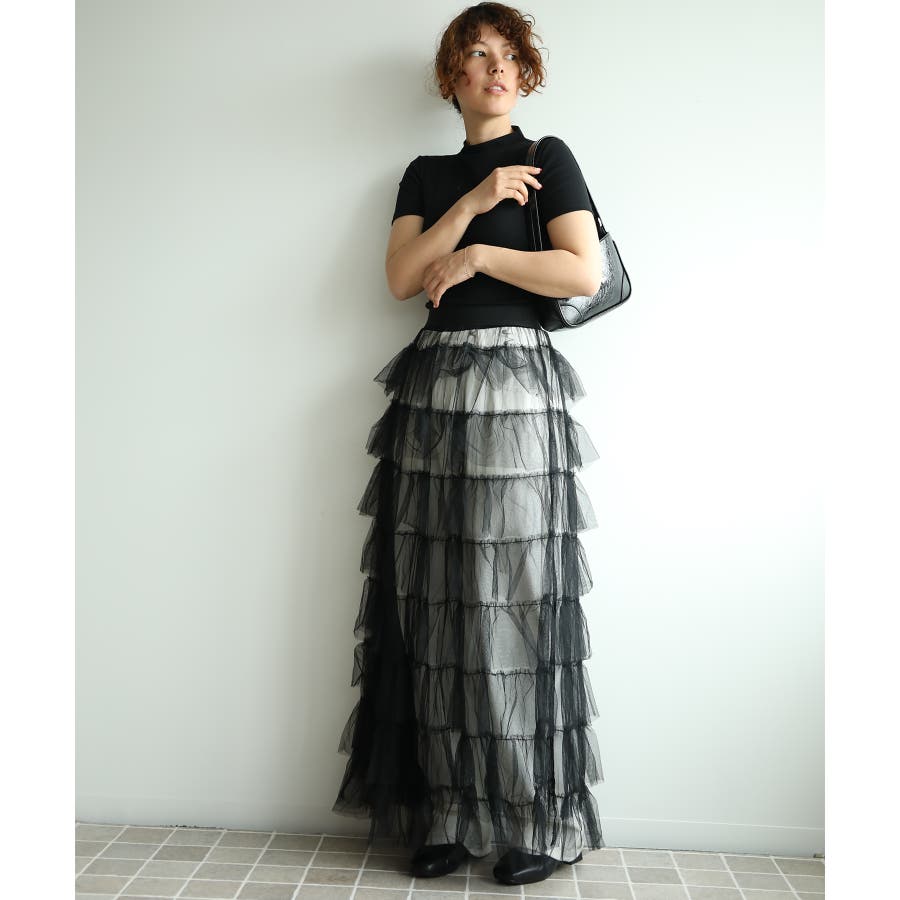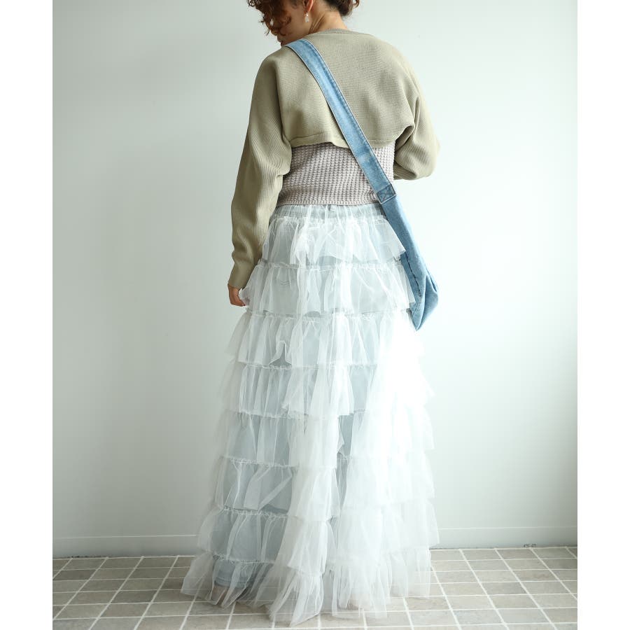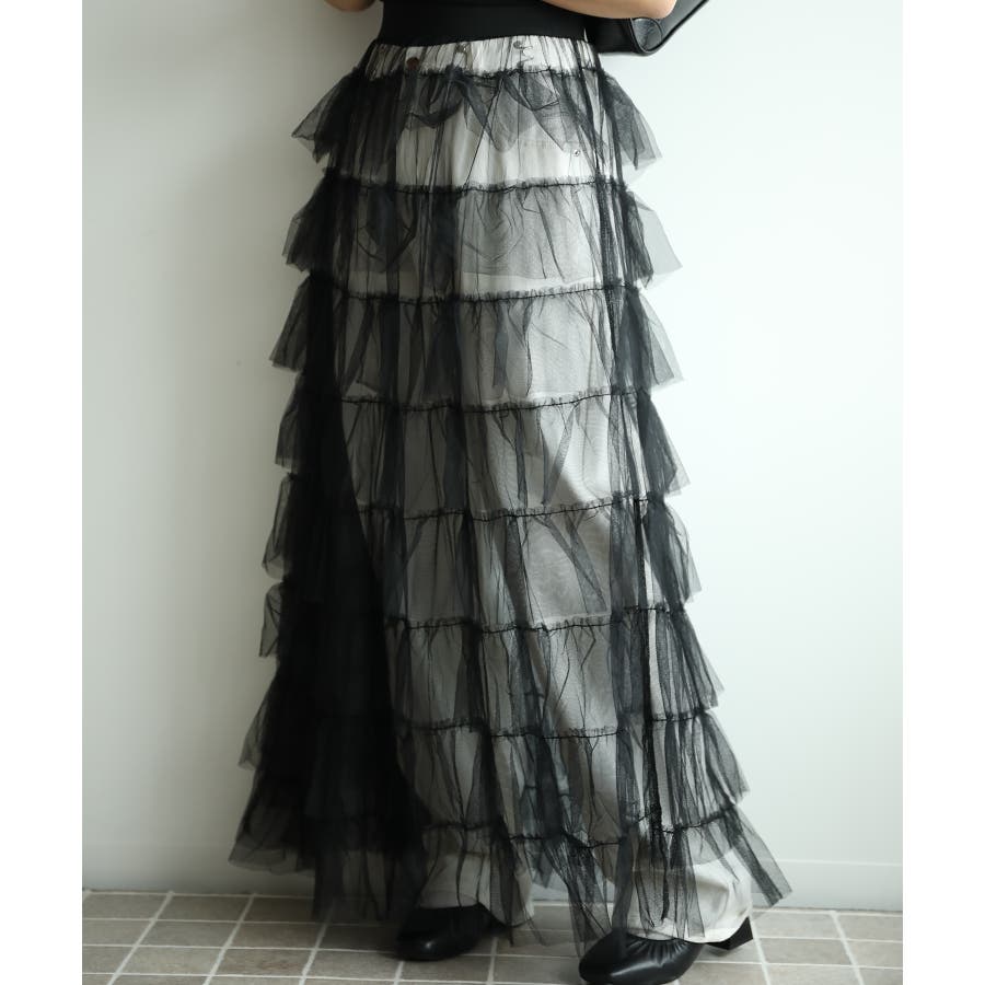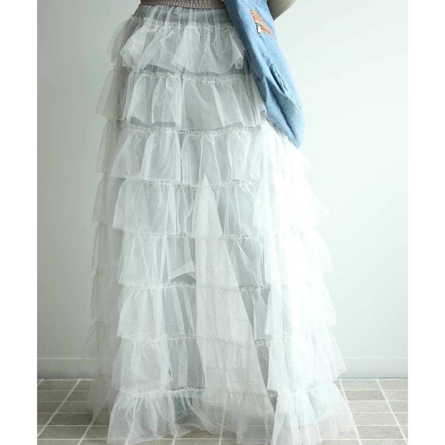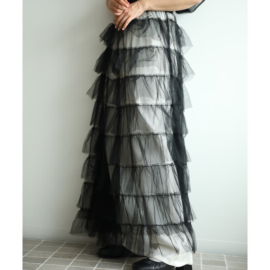 素材:ボリュームティアードシアーチュールスカート