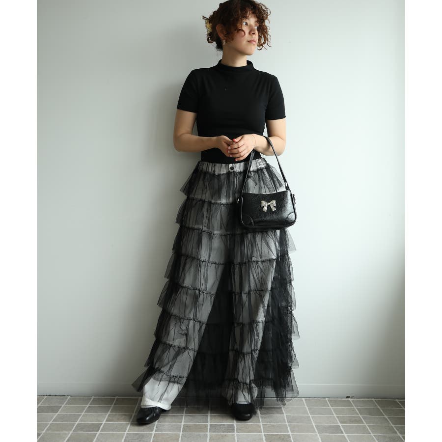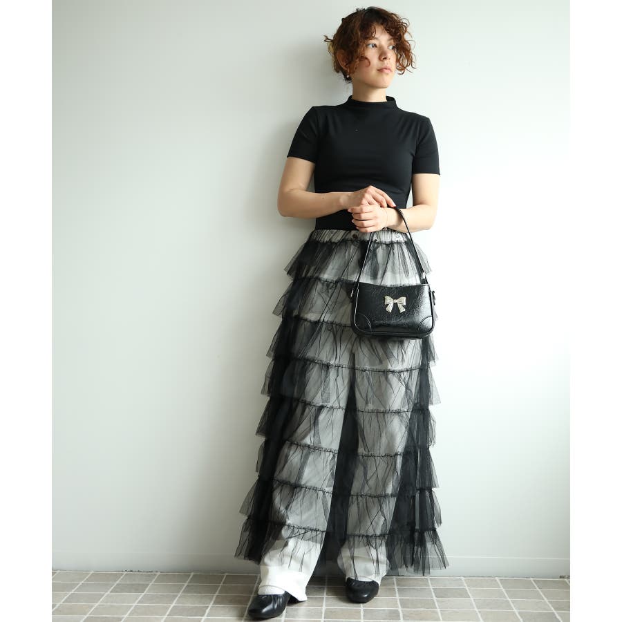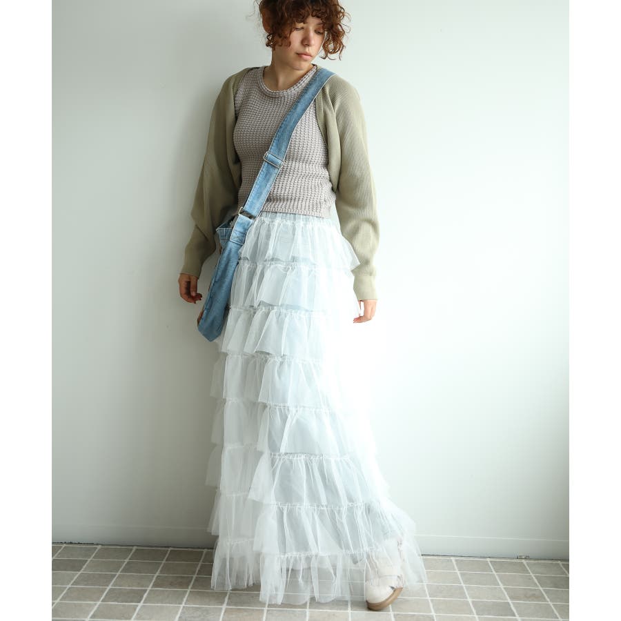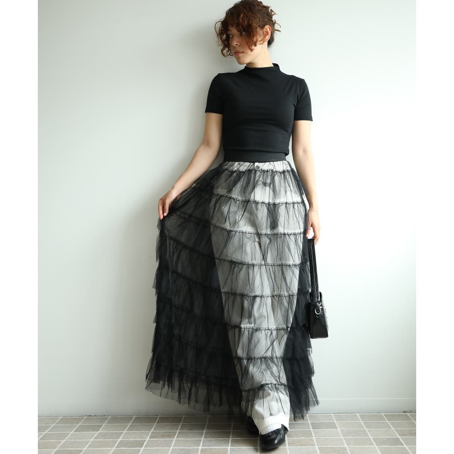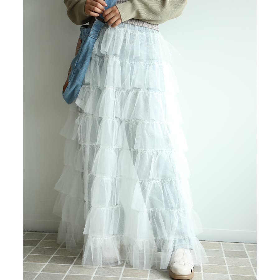 素材:ボリュームティアードシアーチュールスカート