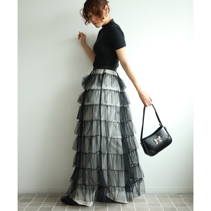 透け感のある素材感と立体的なのティアードデザインが春夏にぴったりなチュールスカート。