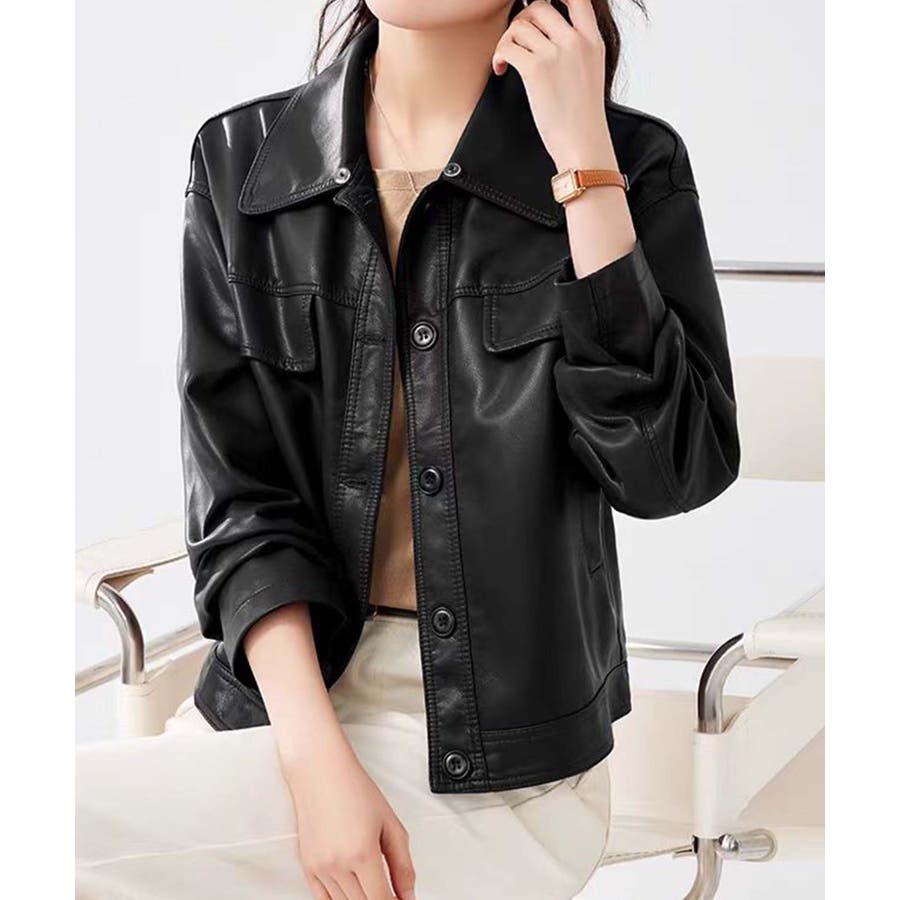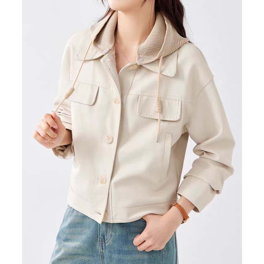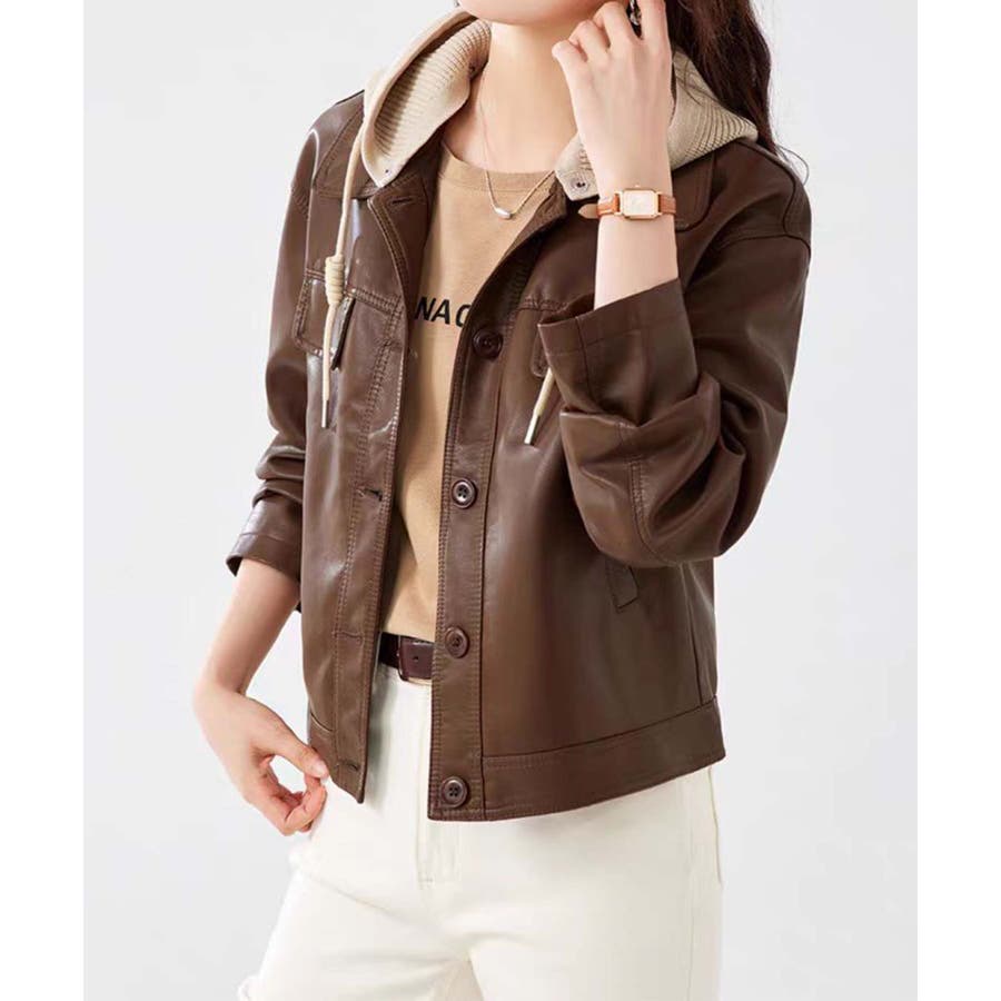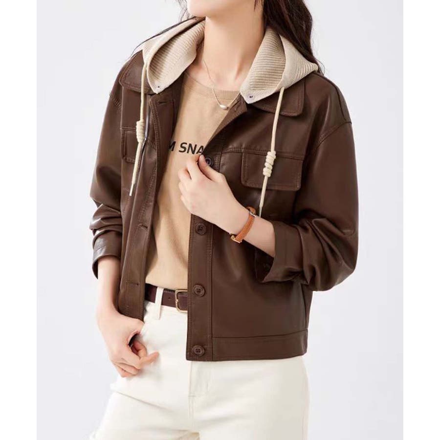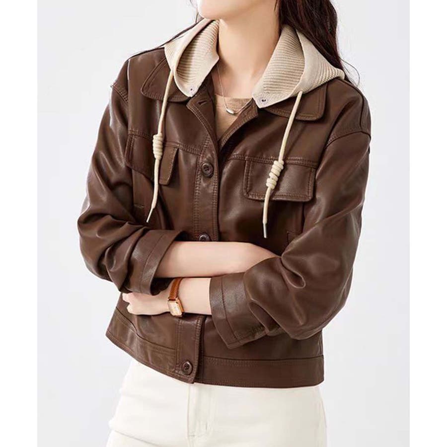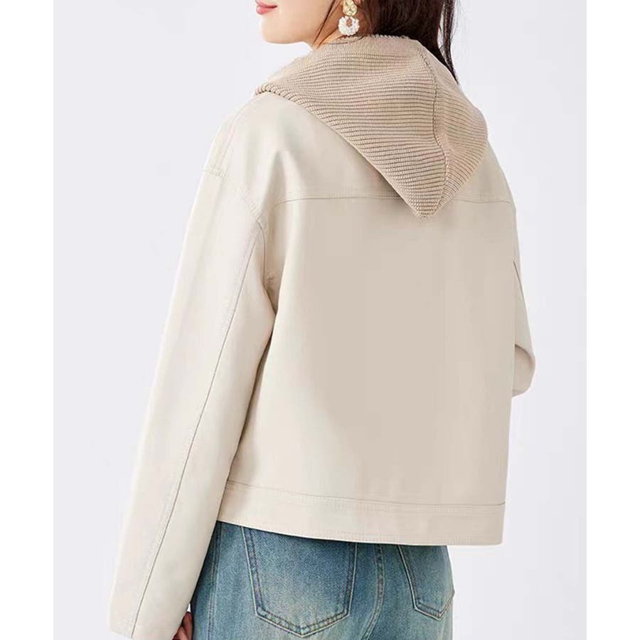 フード付きPUショートジャケット