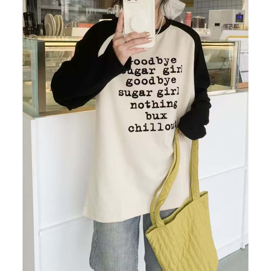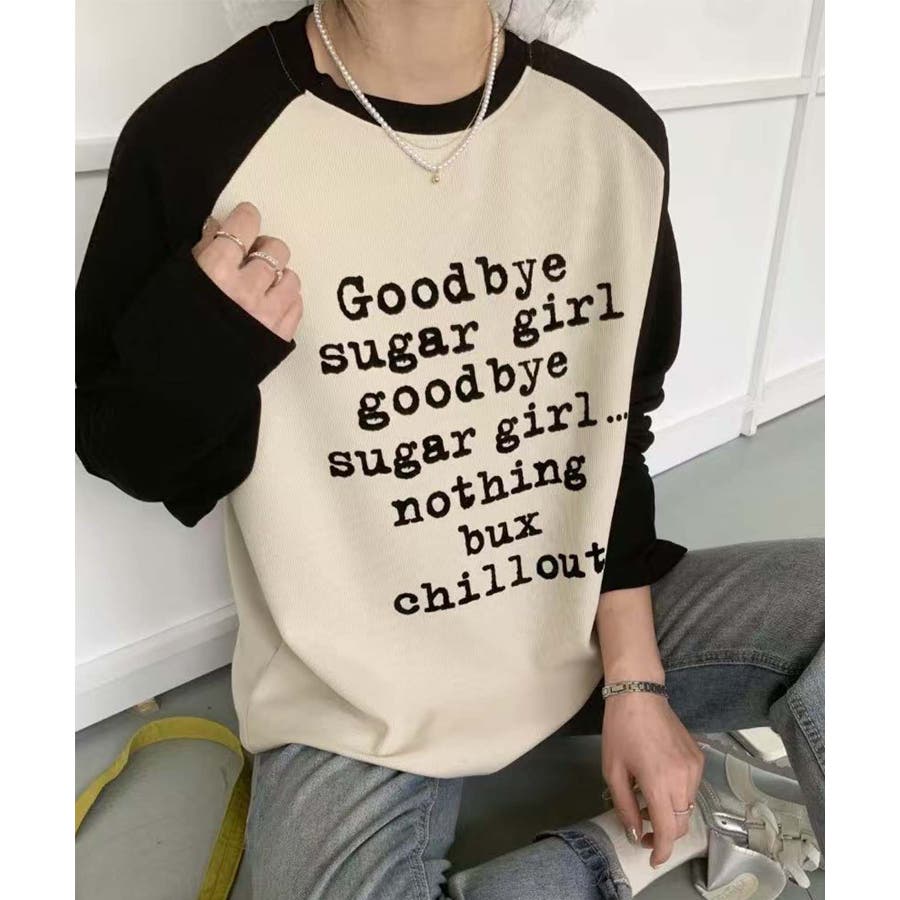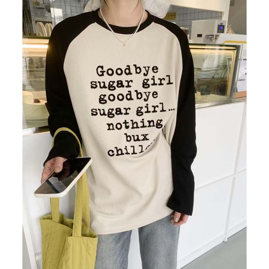 フロントに「Goodbye sugar girl」のプリントが施されたラグランスリーブTシャツ。異なる色の袖とボディのデザインが、シンプルでありながら個性的な印象を与えます。リラックス感のあるシルエットが、日常のどんなシーンにもぴったりのアイテムです。柔らかく、適度な伸縮性のある素材で、快適に過ごせます。カジュアルなデニムやチノパンと合わせることで、リラックスした日常スタイルを完成させます。スニーカーやローファーで軽快に仕上げ、シンプルでおしゃれな印象を作り出します。寒い季節には、ジャケットやカーディガンと合わせても素敵です。