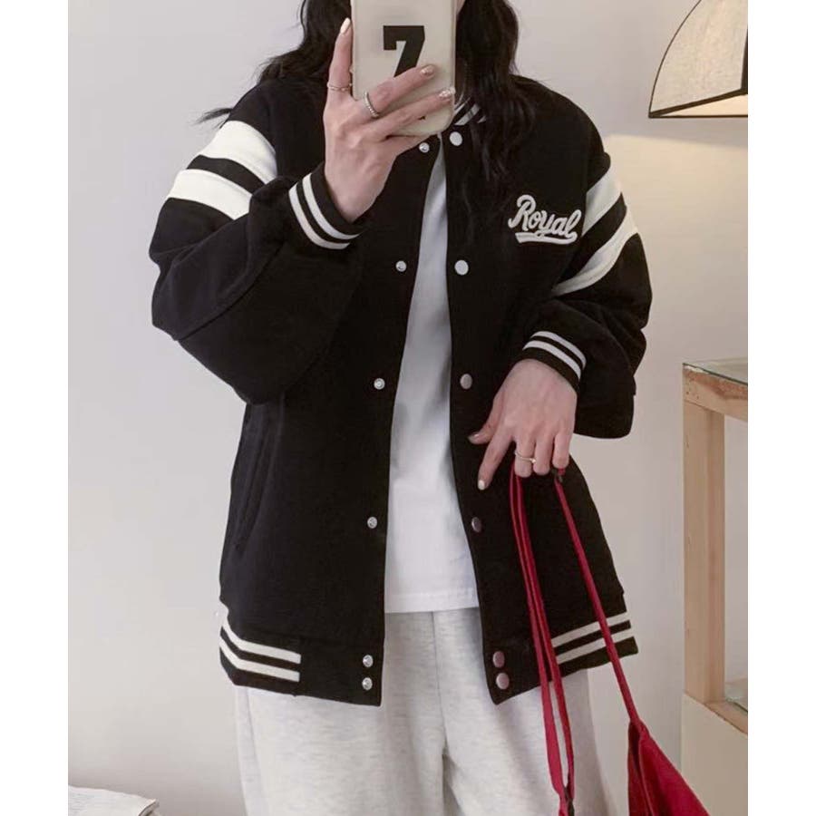フロントに「Royal」のロゴ刺繍が施されたスタジャンジャケット。袖の2つのラインデザインが特徴的で、スポーティーながらもカジュアルな印象を与えます。シンプルでありながら存在感のあるデザインが、日常使いにぴったりのアイテムです。柔らかく、伸縮性のある素材で、快適な着心地。カジュアルなTシャツやスウェットと合わせて、リラックスした日常スタイルを完成させます。デニムやジョガーパンツと合わせると、スポーティーでスタイリッシュな印象に。