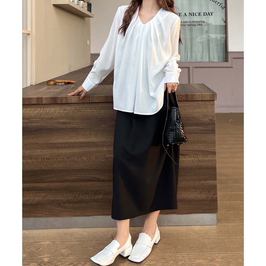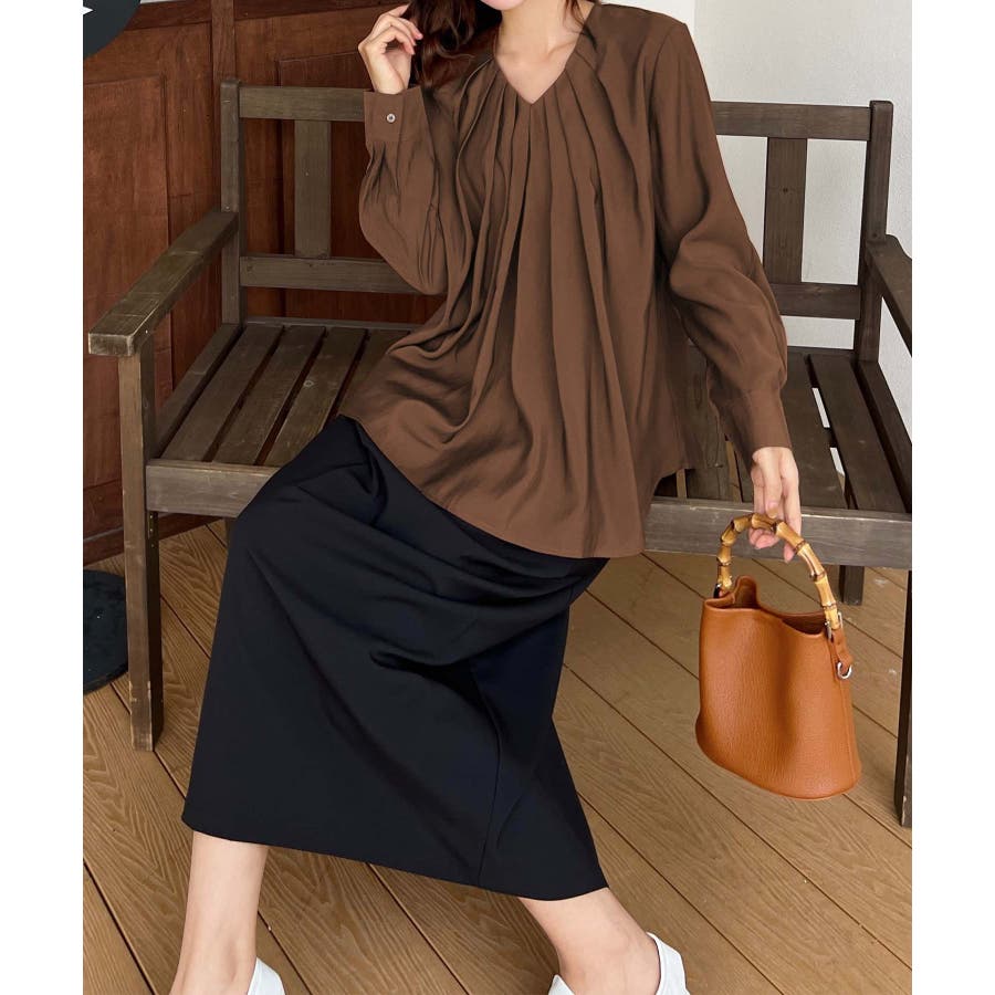 すっきりとしたVネックラインがエレガントな印象に仕上げるタックブラウス。首元から裾に向けてふんわり広がるタックが施され、スタイリッシュな印象ながらも女性らしい柔らかさも演出。シルエットはややゆったりとしているので、体型カバーも叶います。生地は柔らかく、快適で通気性があり、暑い夏の日でも涼しく過ごせます。カジュアルにデニムパンツやスカートを合わせたデイリーシーンはもちろん、スラックスやプリーツスカートを合わせたオフィスカジュアルやフォーマルシーンでも活躍します。様々なシーンで着用できる万能アイテムです♪※「商品のお気に入り登録」で再入荷通知や、ラスト通知、セール通知も受け取ることができます。*「ブランドのお気に入り登録」 で新商品や再入荷など、いち早くお得な情報を受け取ることができます!※ご注文いただいた予約商品のお届け時期の確認は、注文履歴ページより行えます。※他のイベントにより期間中に価格が変動する場合がございます。※セールは予告なく終了する場合がございます。