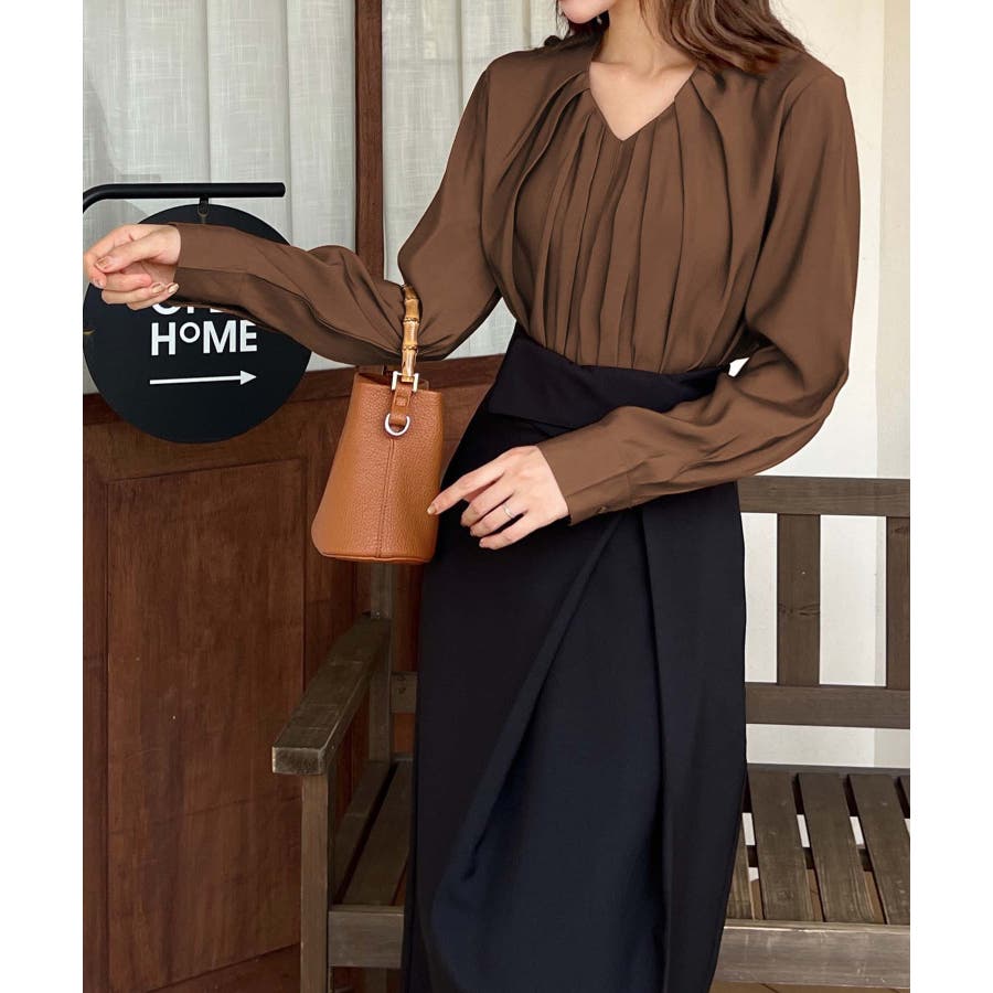 【BANICO】プリーツVネックブラウス
