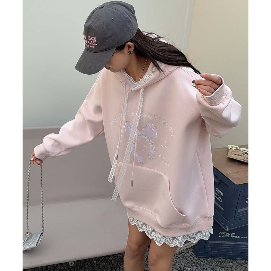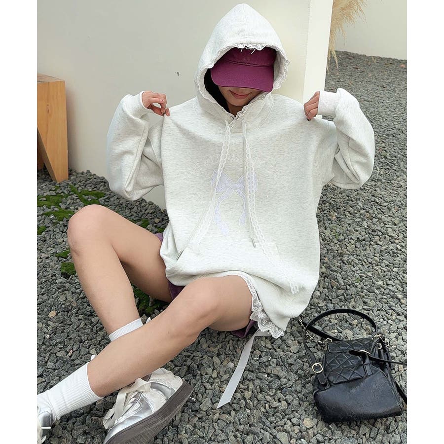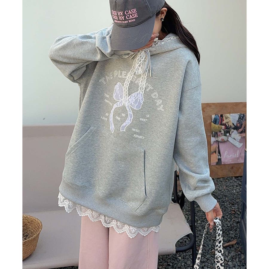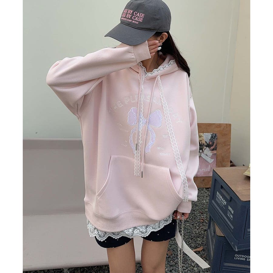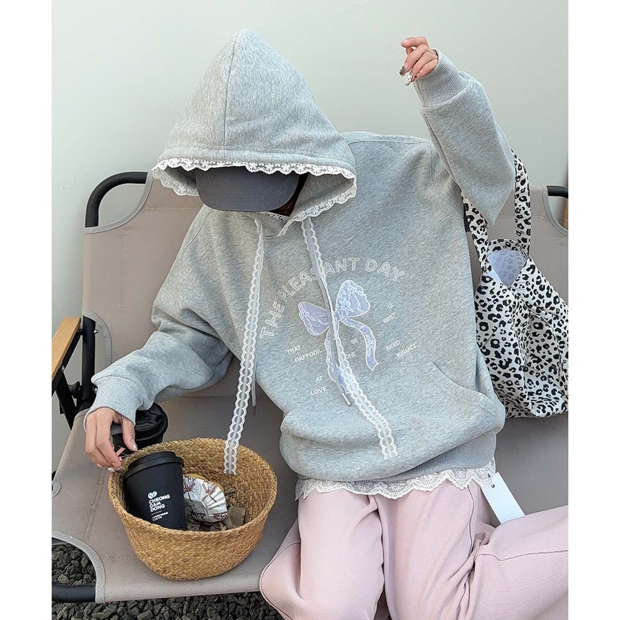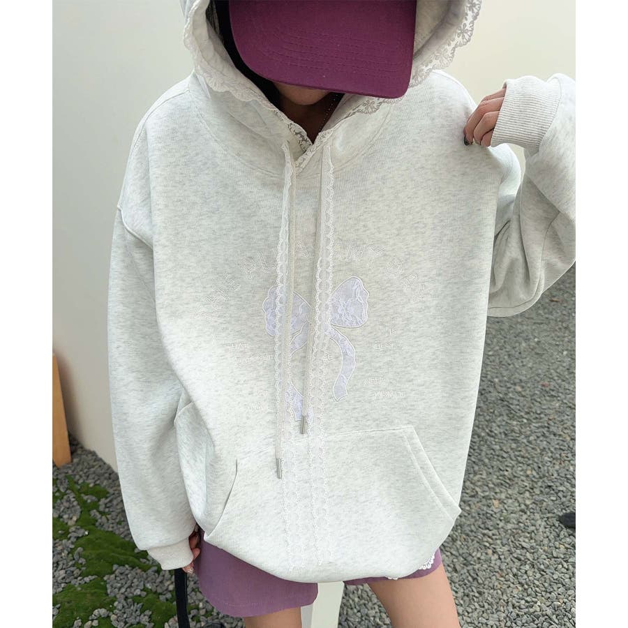 リボンプリントパーカー