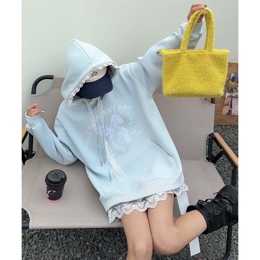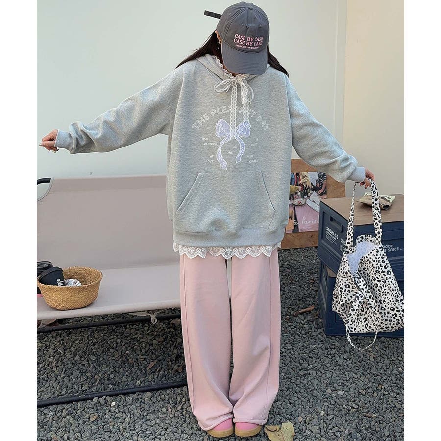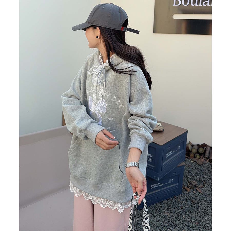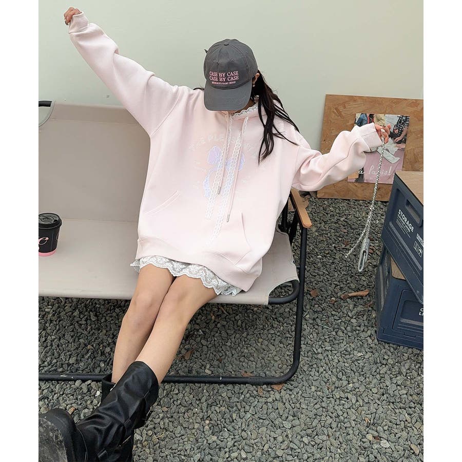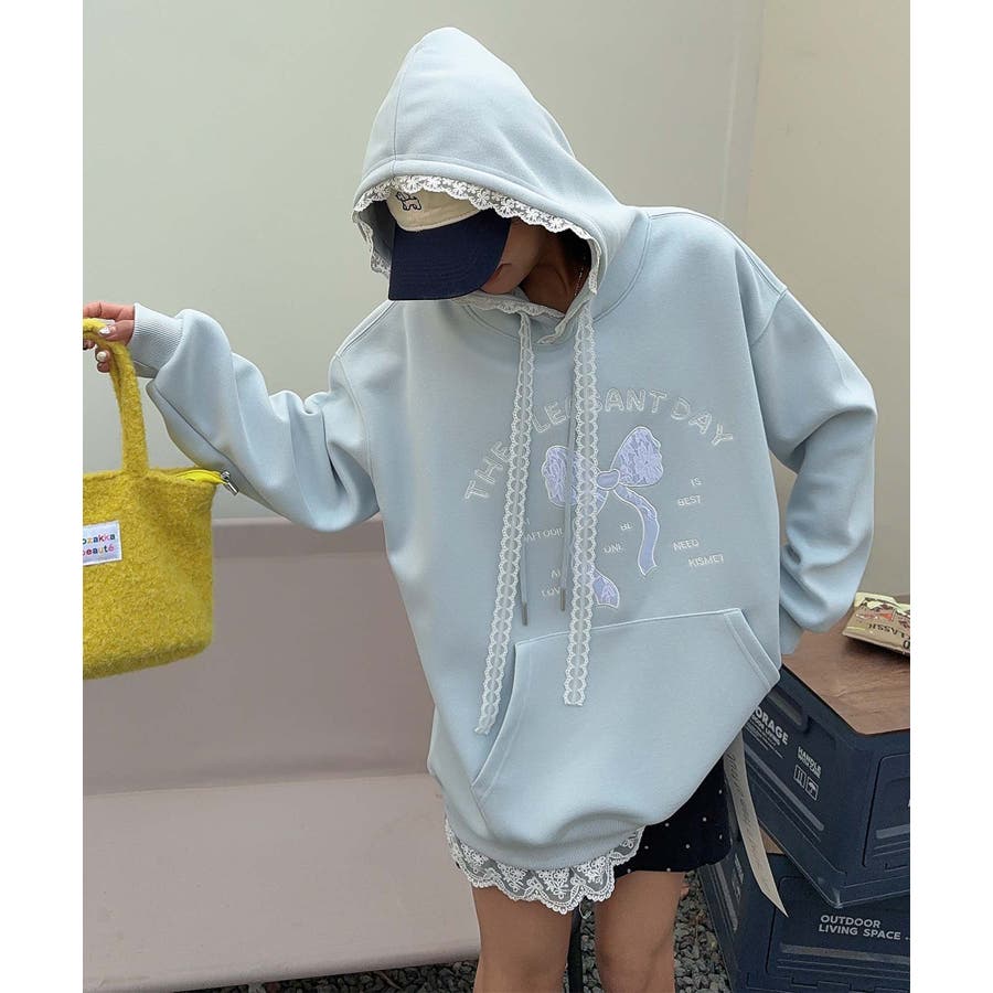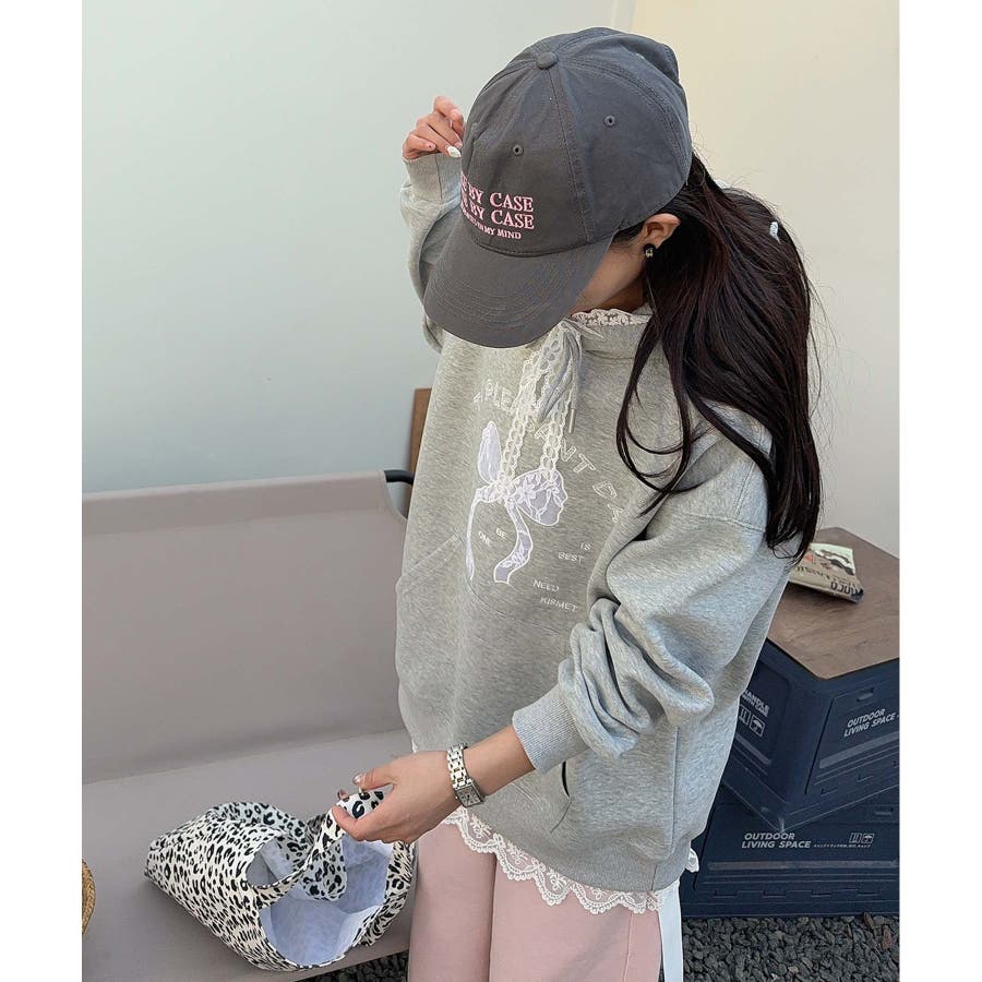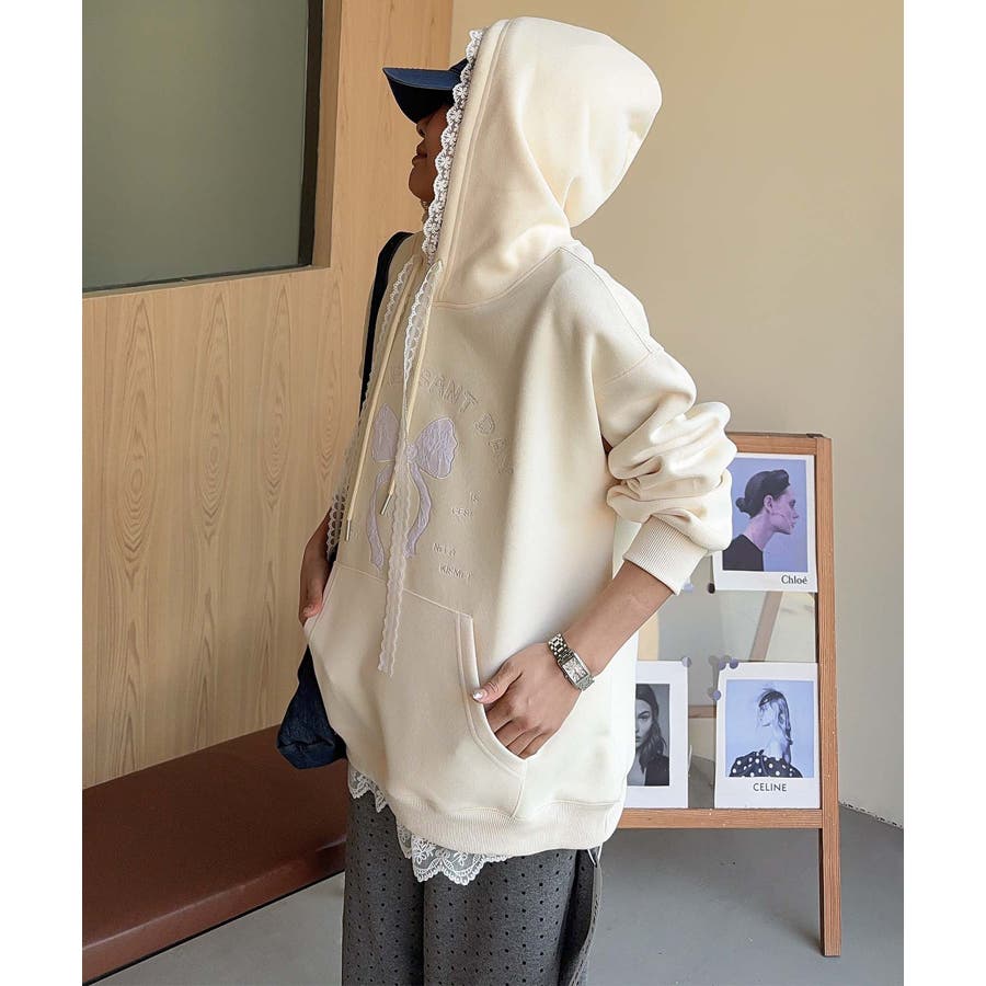リボンプリントパーカー