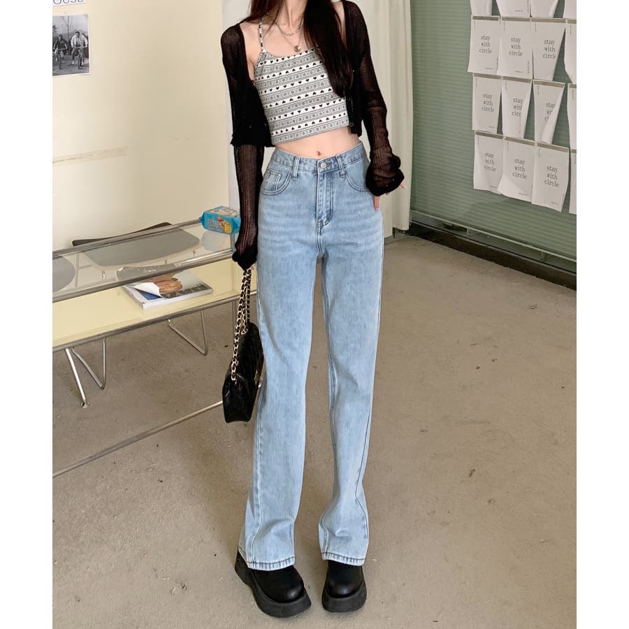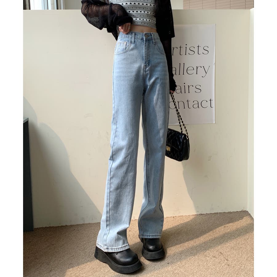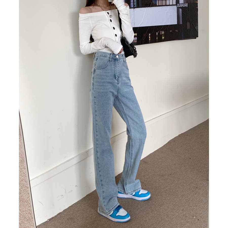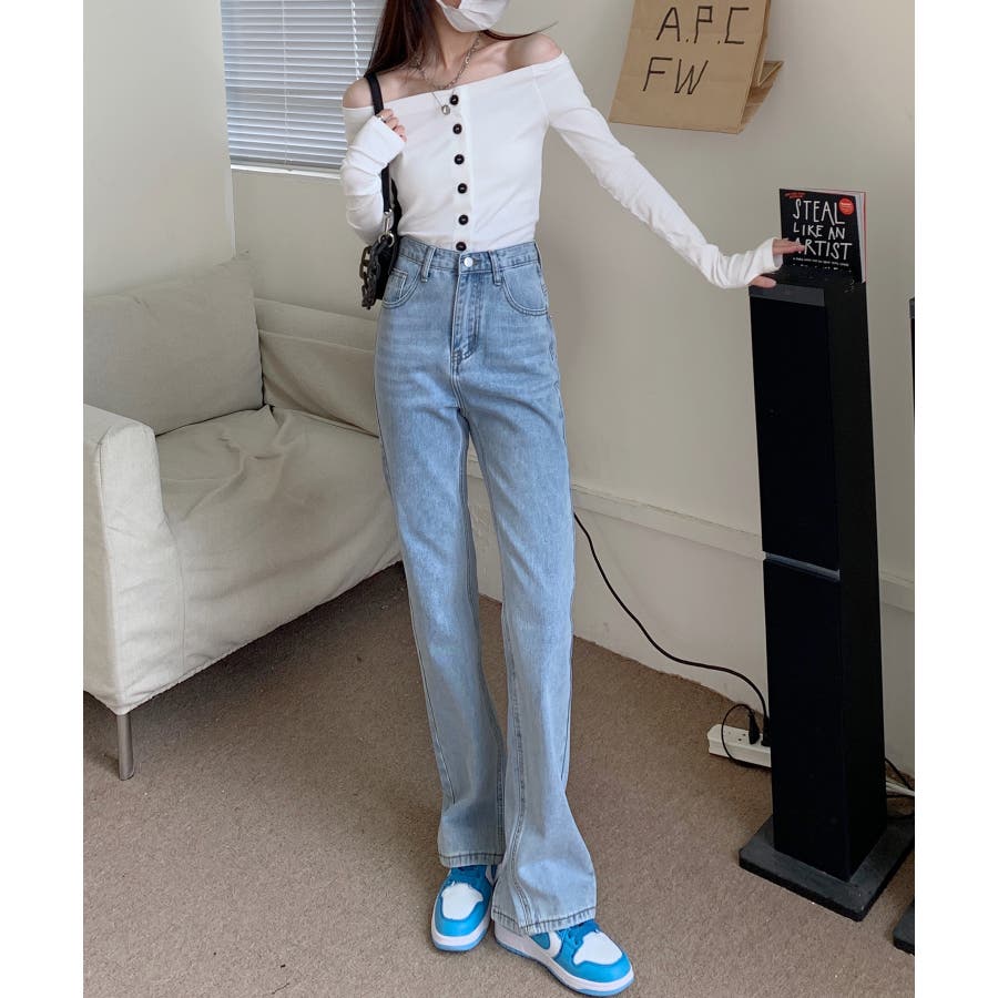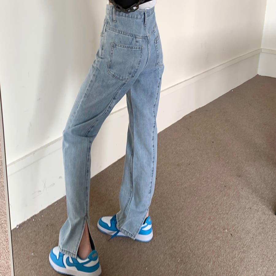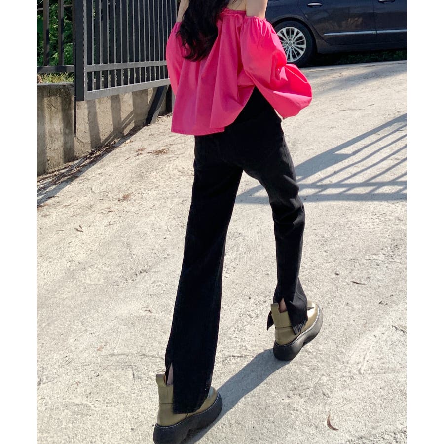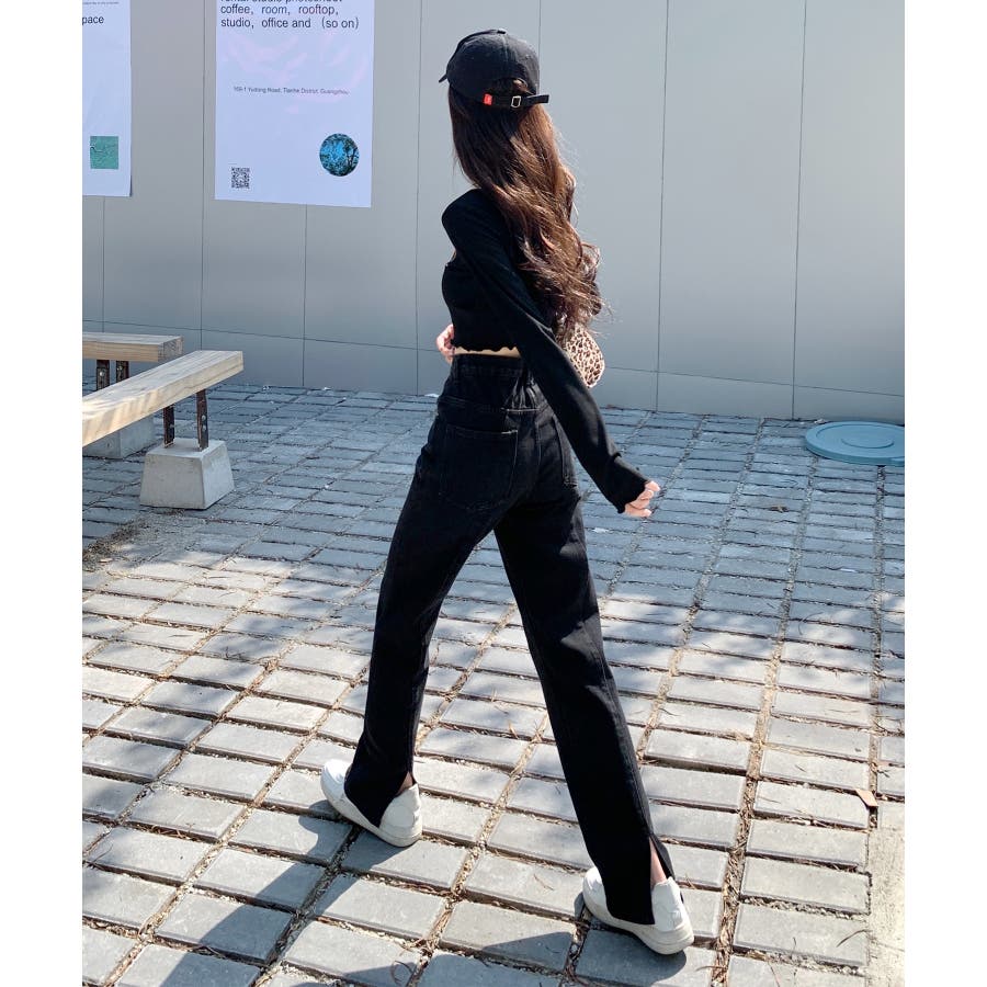 スリット入りデニムパンツ 韓国ファッション ワンピース