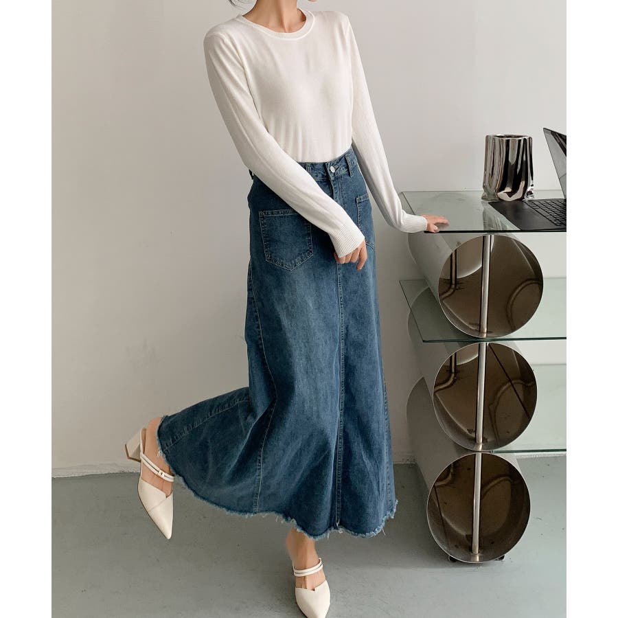 デイリーにもお出かけにも活躍する、大人のための万能デニムスカートです。