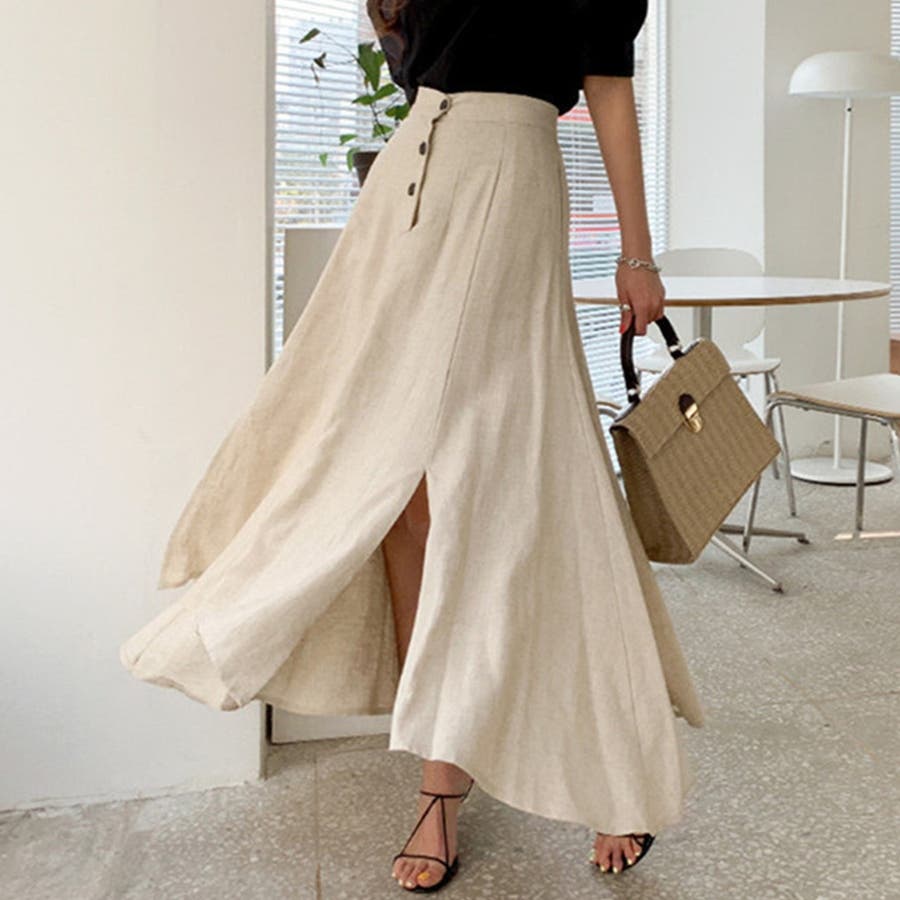 【Jasmine Grandiflorum】麻のロングマーメイドスカート 韓国フ…