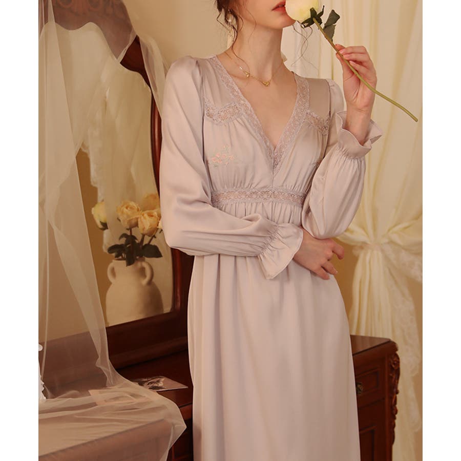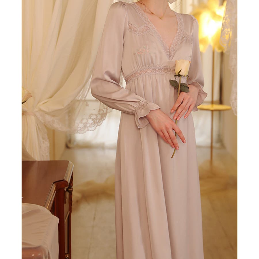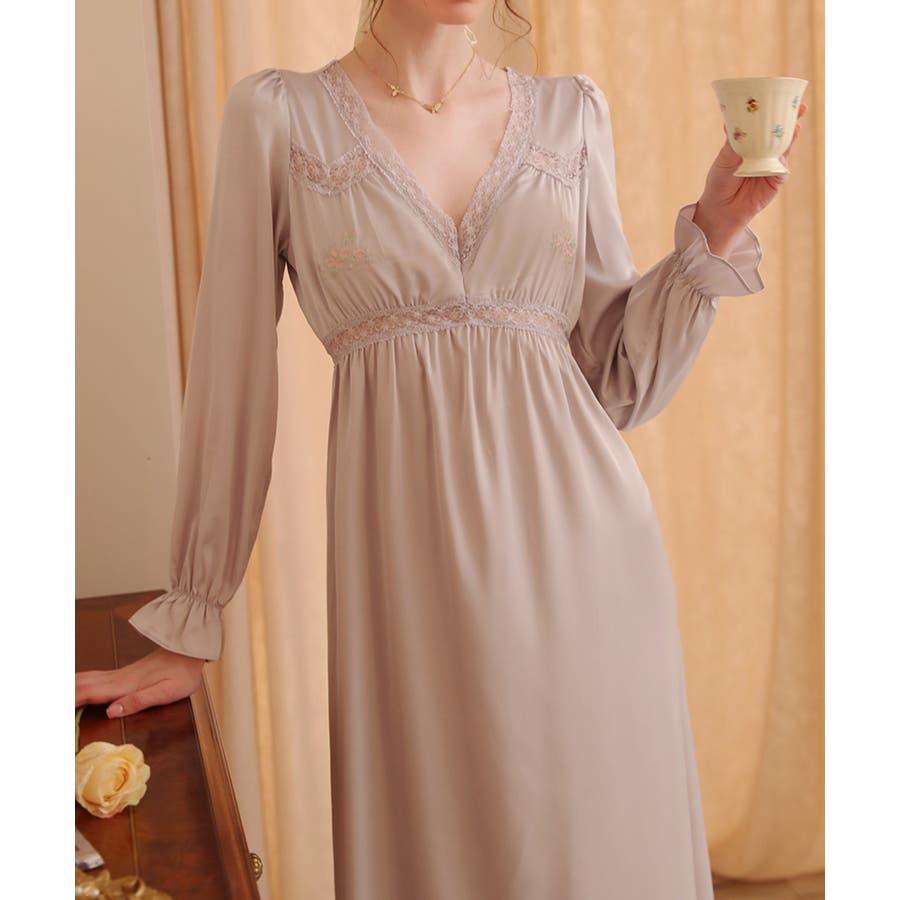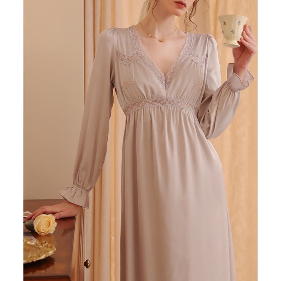 レース切り替えロングスリーブルームウェアワンピース パジャマ ルームウェア