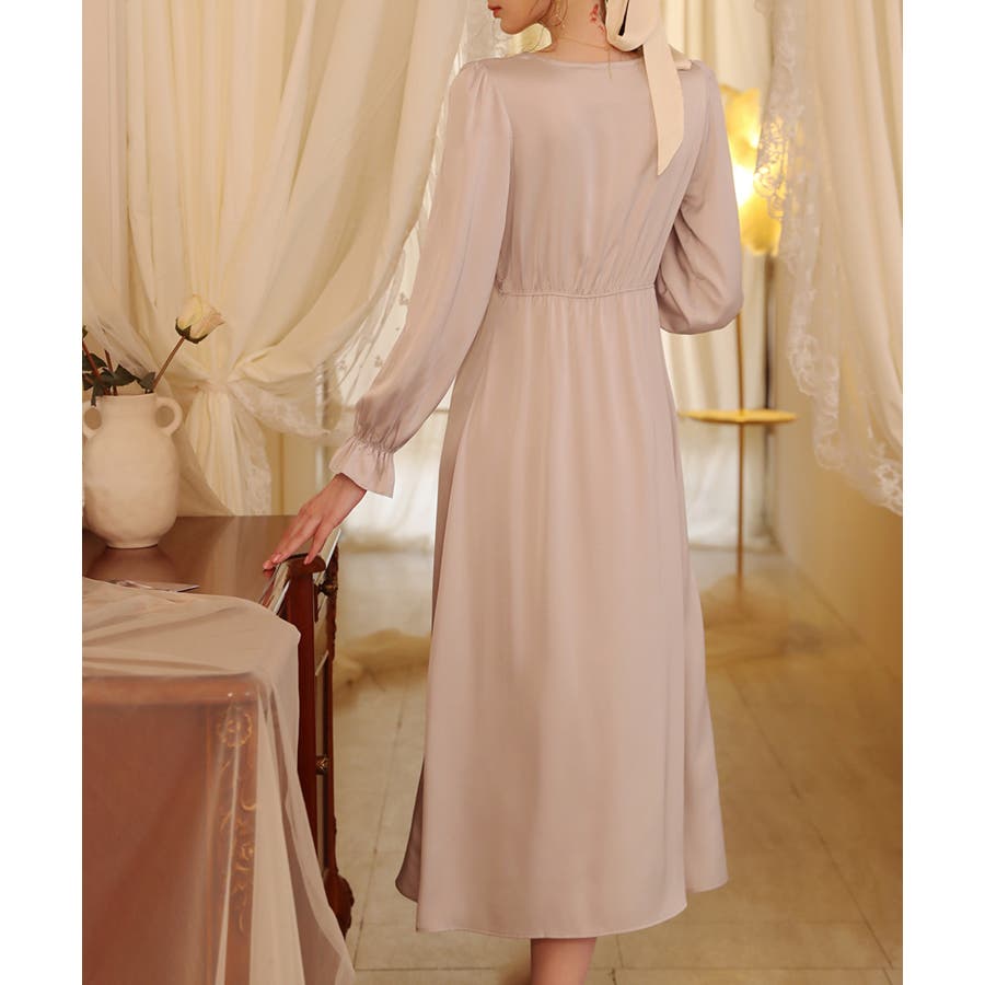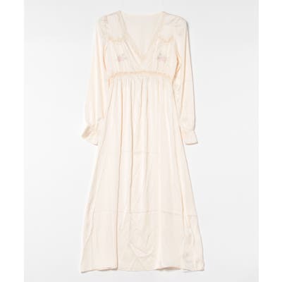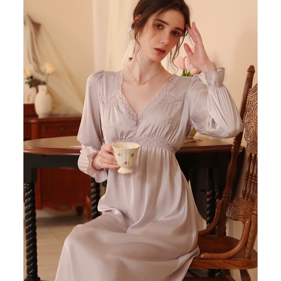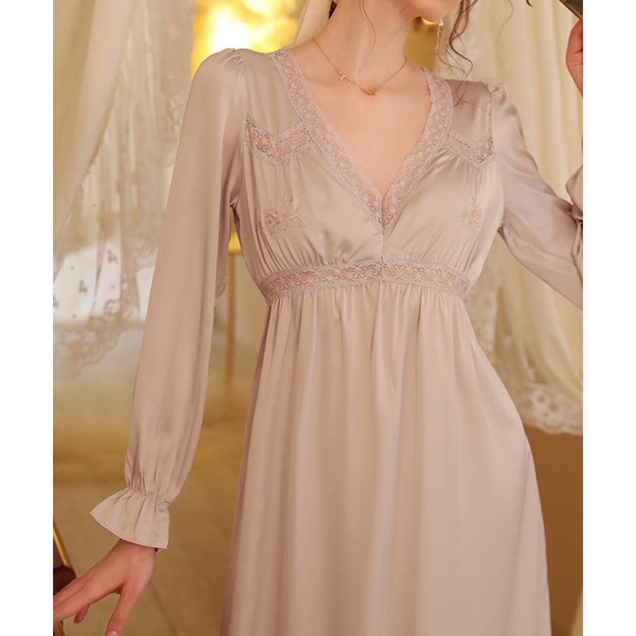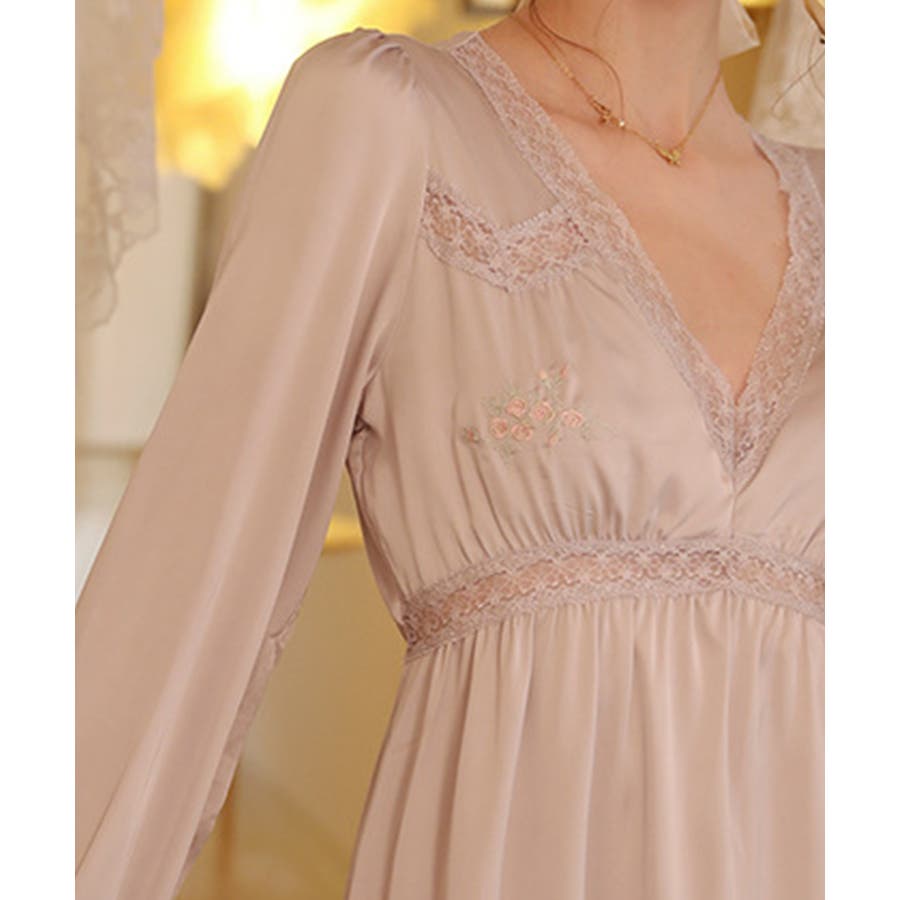 レース切り替えロングスリーブルームウェアワンピース パジャマ ルームウェア