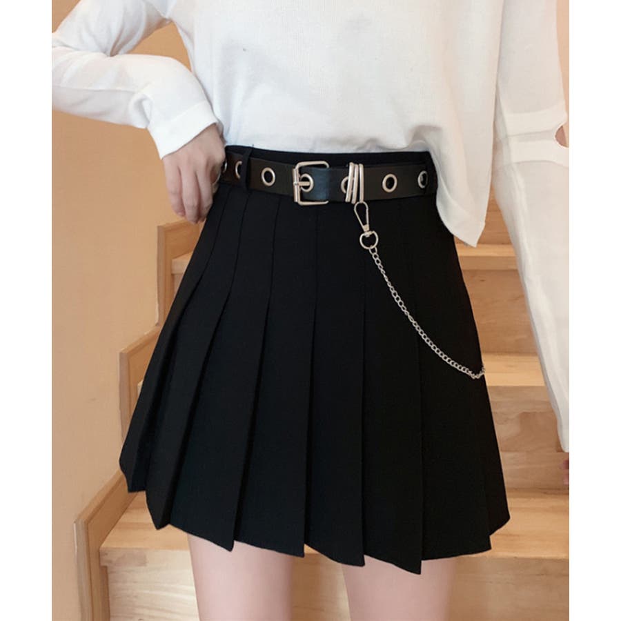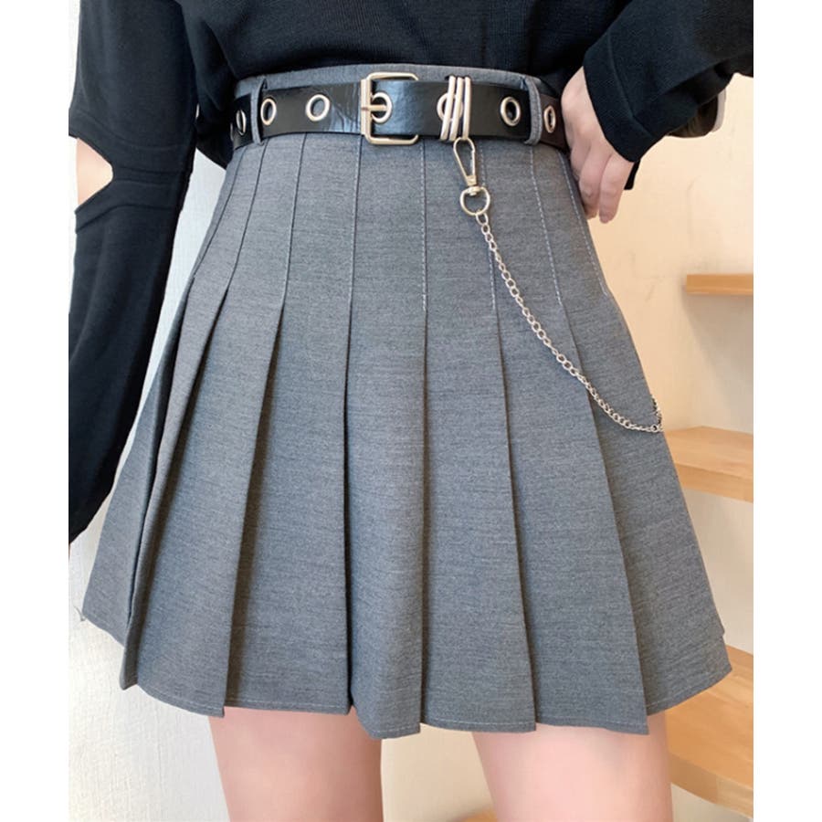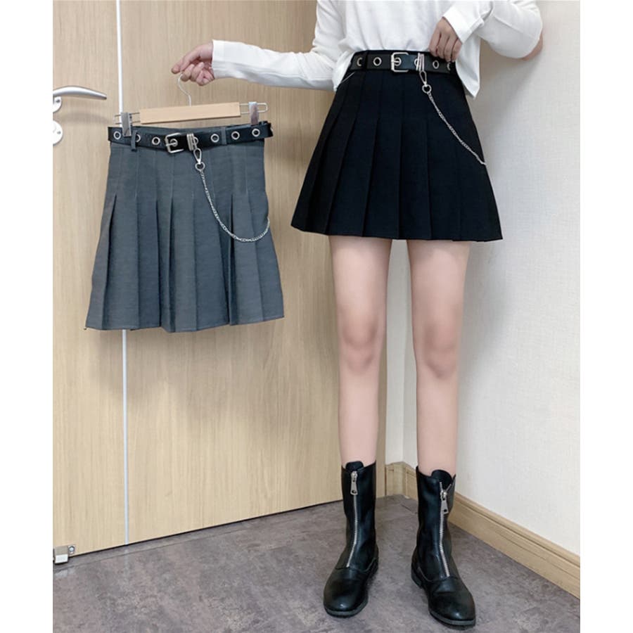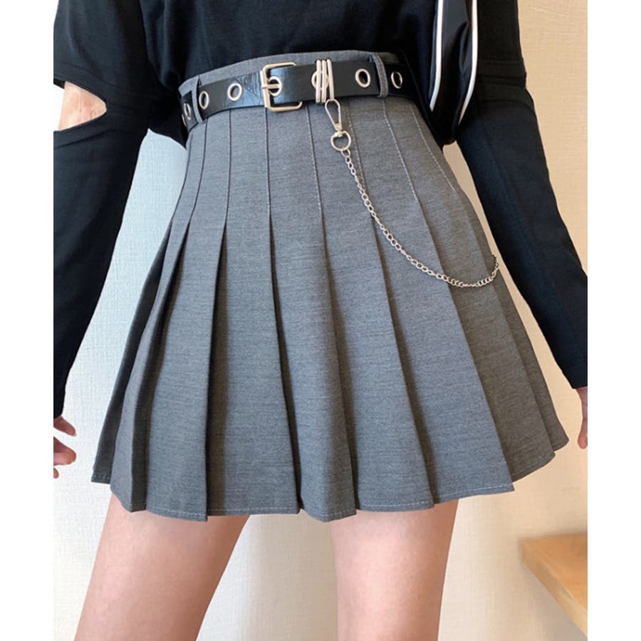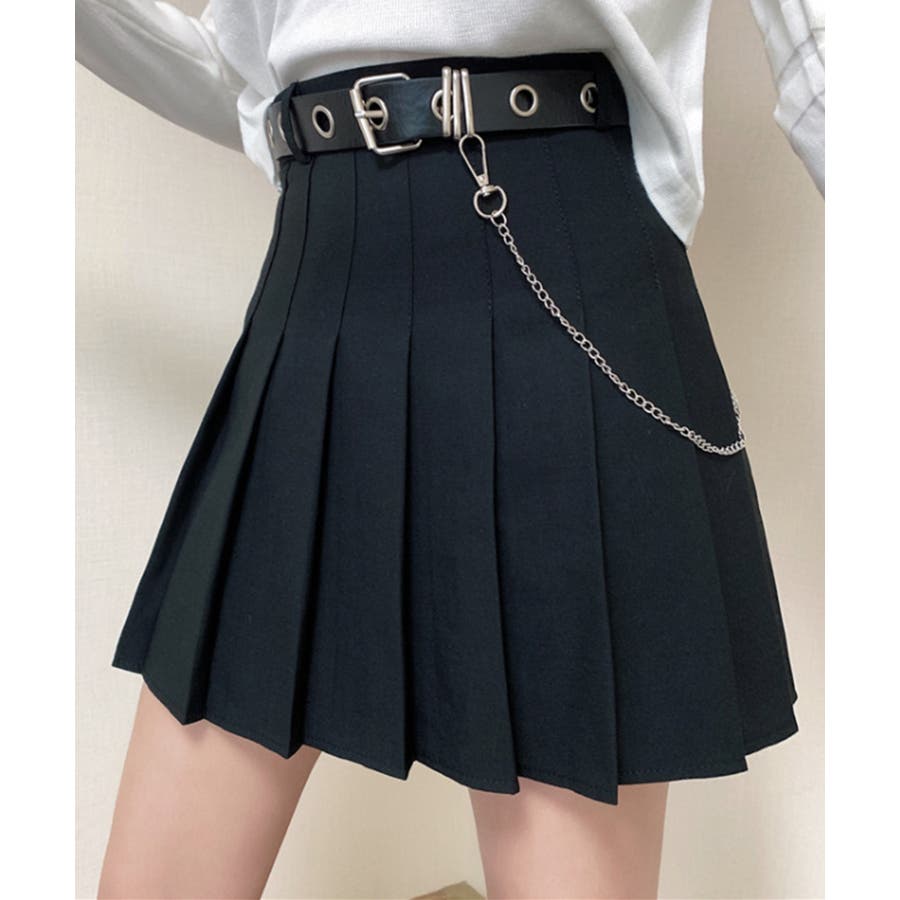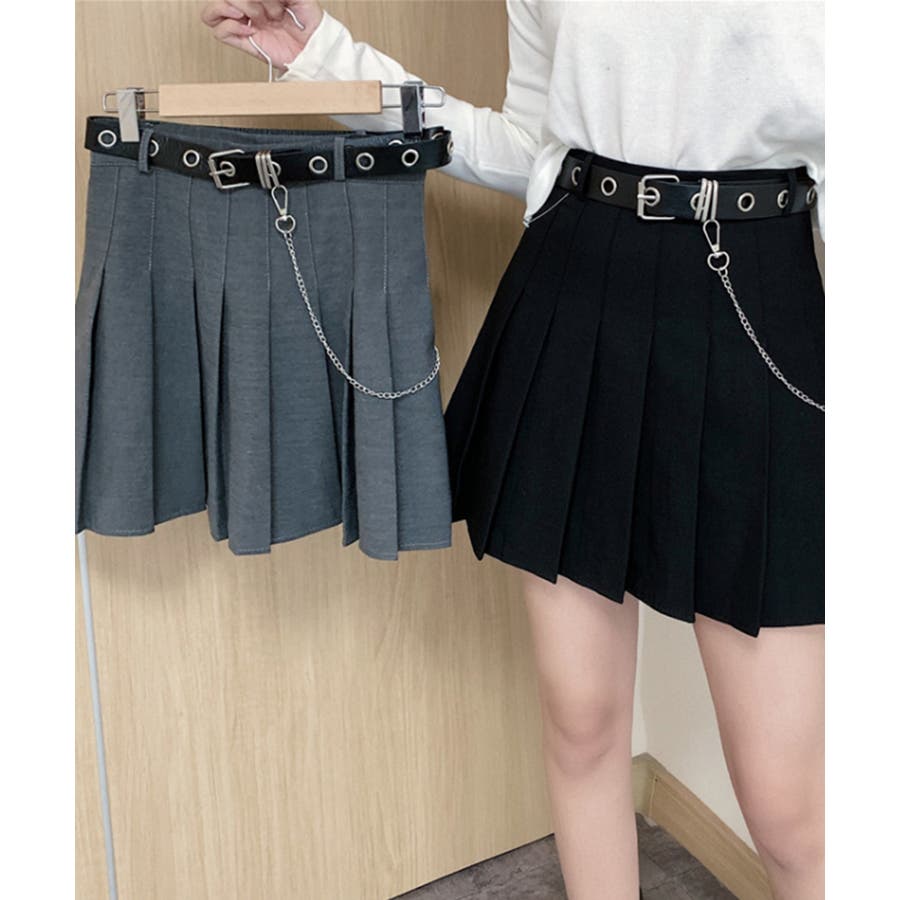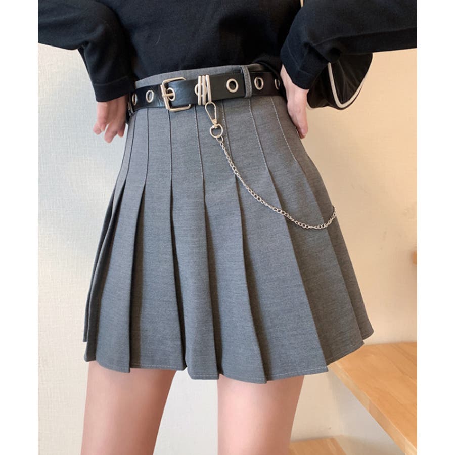 チェーンベルト付きプリーツミニスカート 韓国ファッション ワンピース