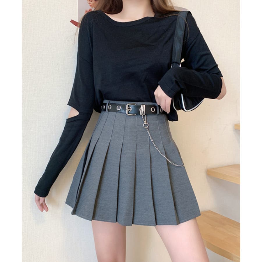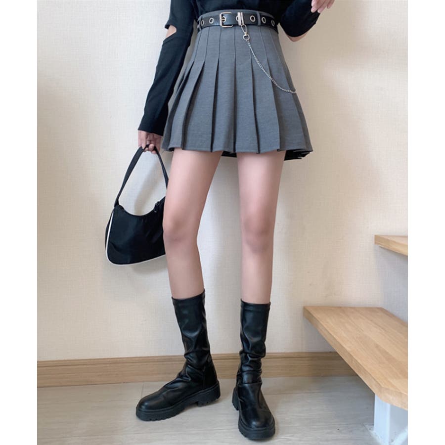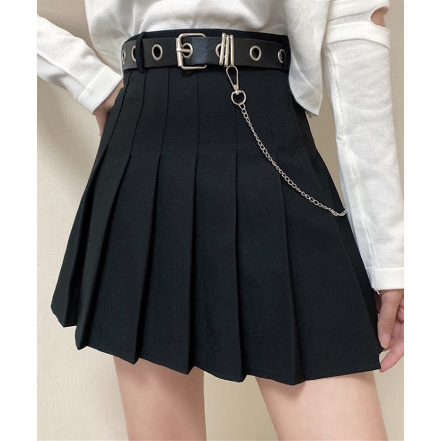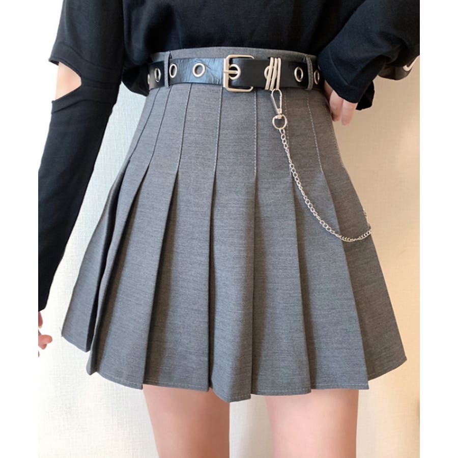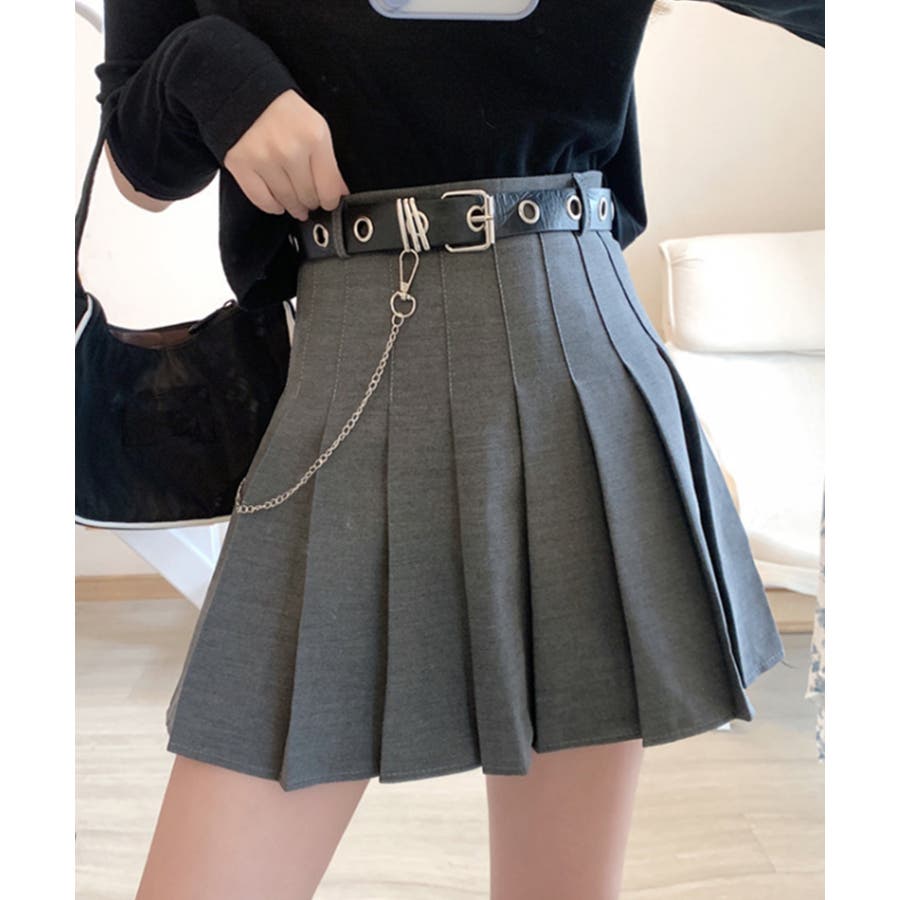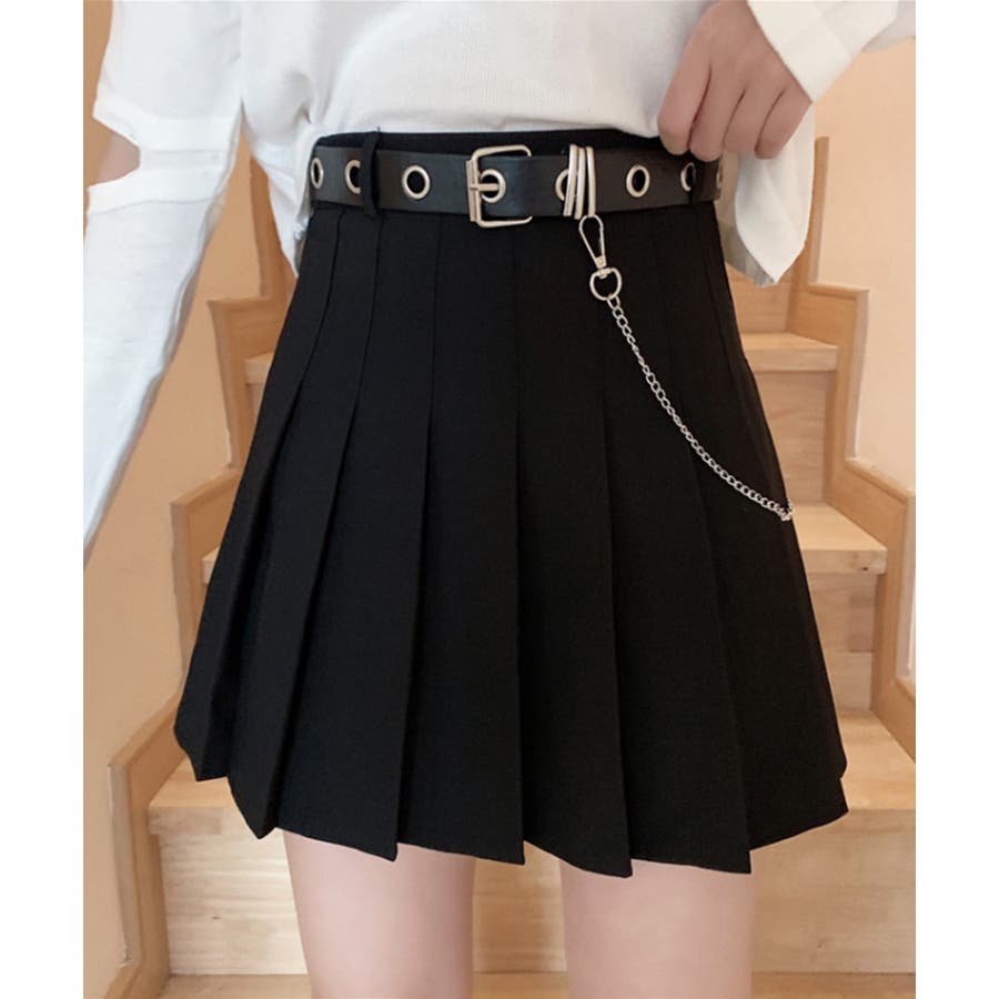 チェーンベルト付きプリーツミニスカート 韓国ファッション ワンピース