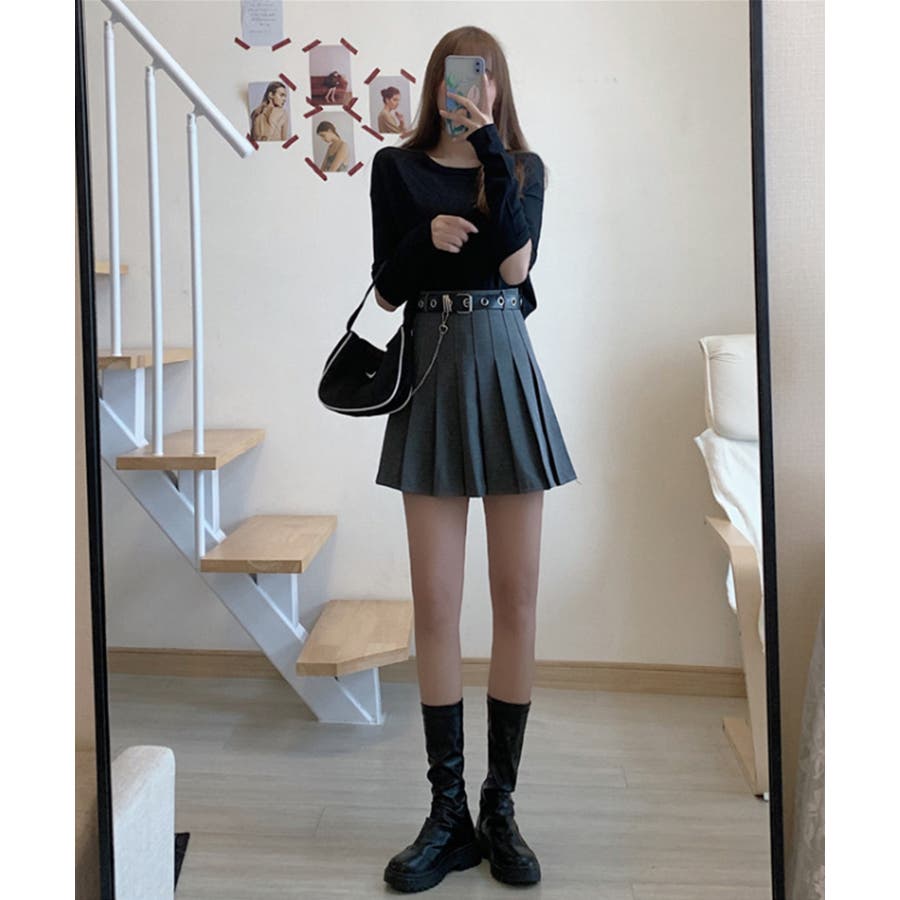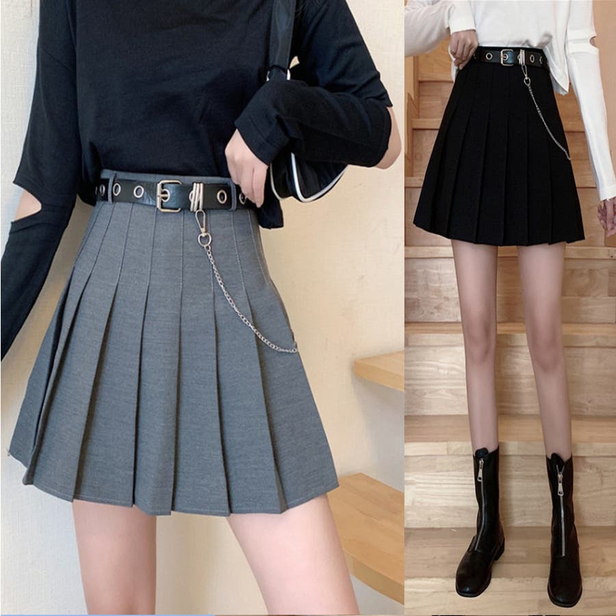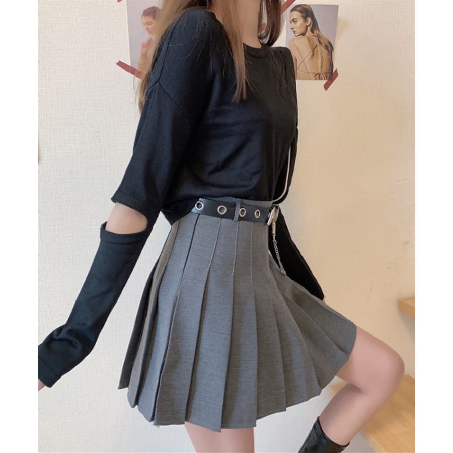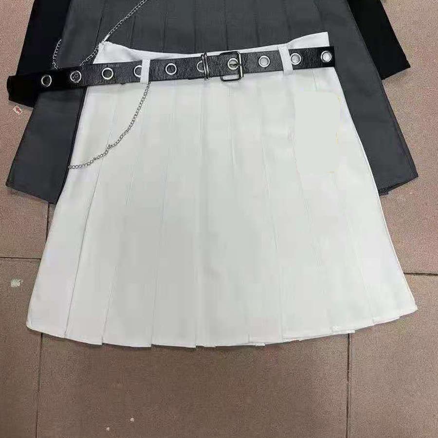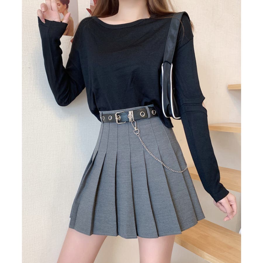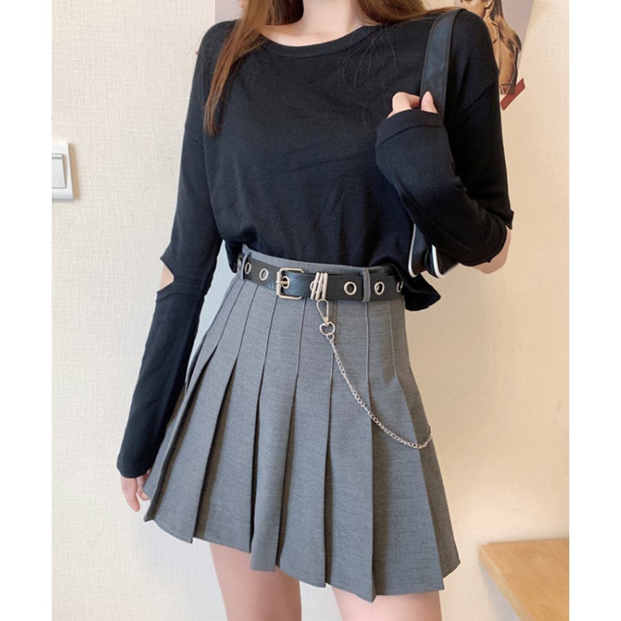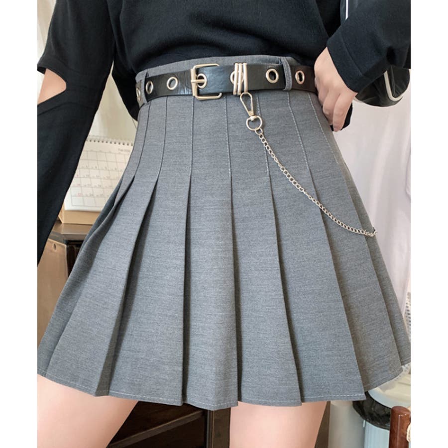 チェーンベルト付きプリーツミニスカート 韓国ファッション ワンピース