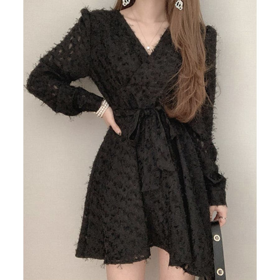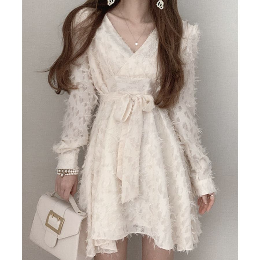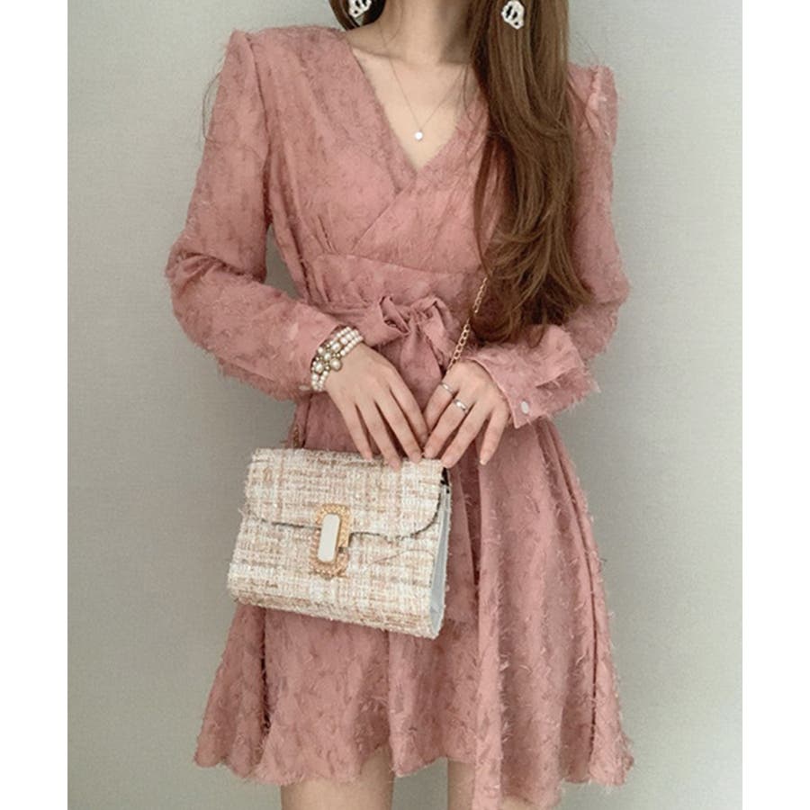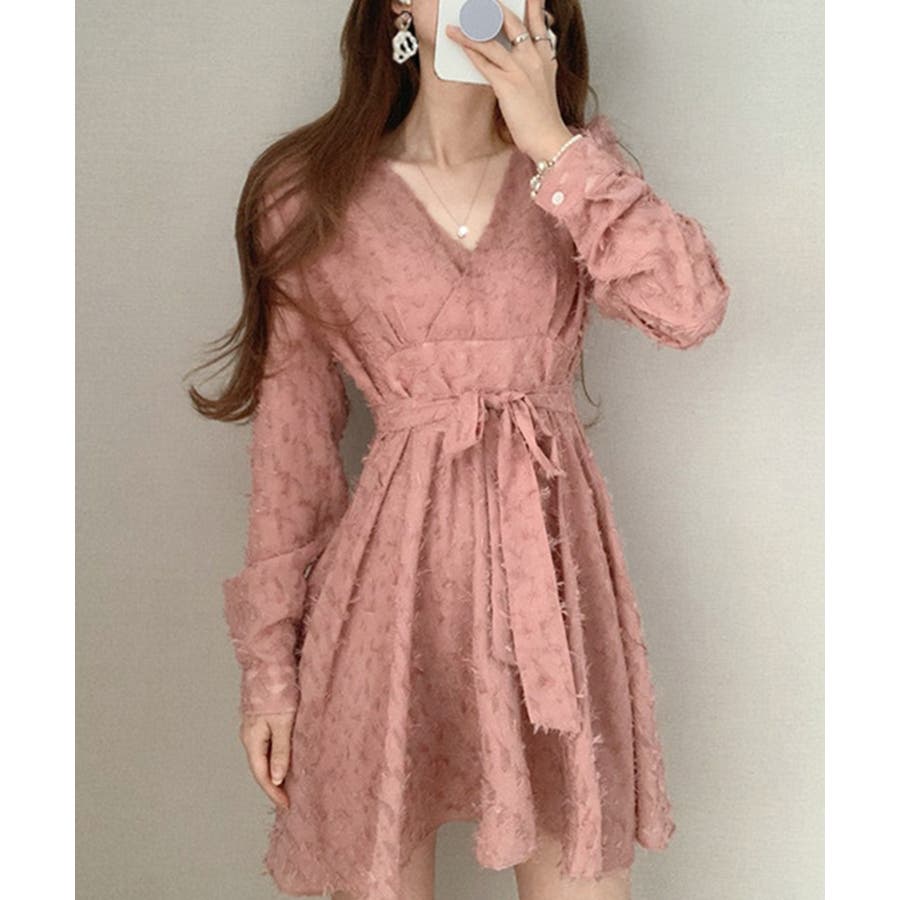 Vネックガーリーワンピース ミニワンピース 韓国ファッション