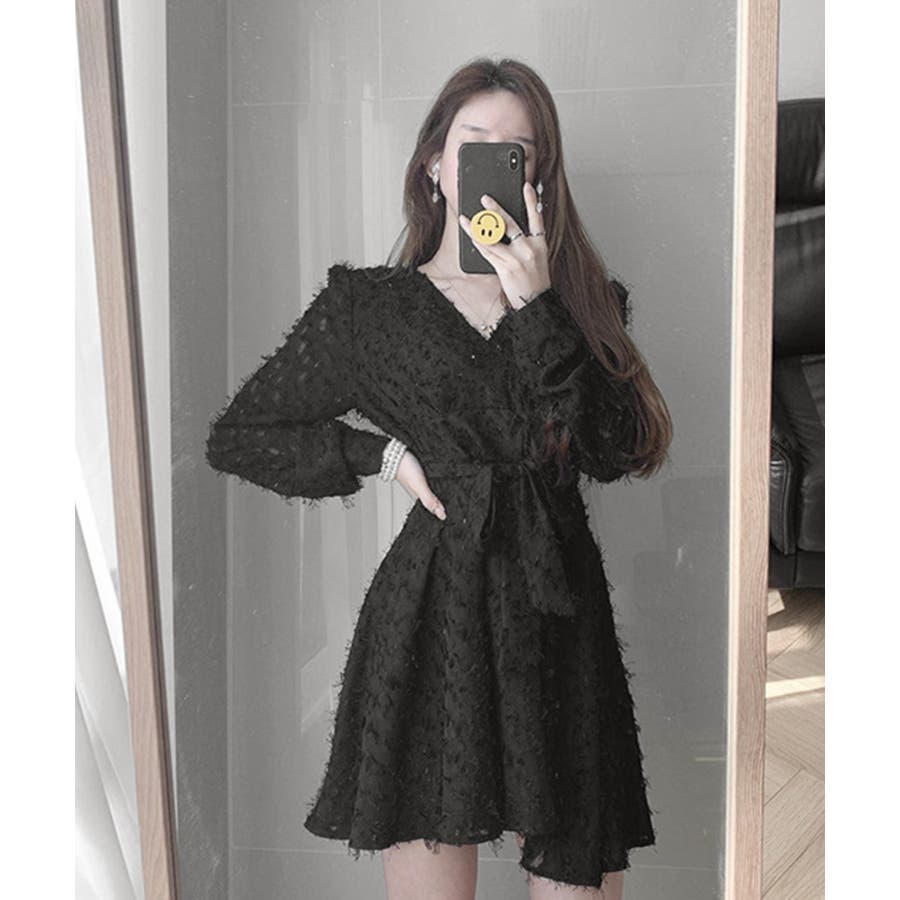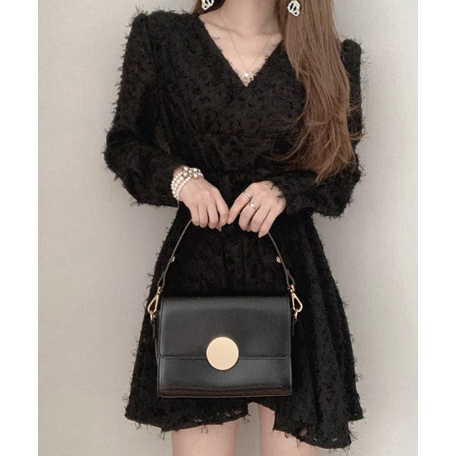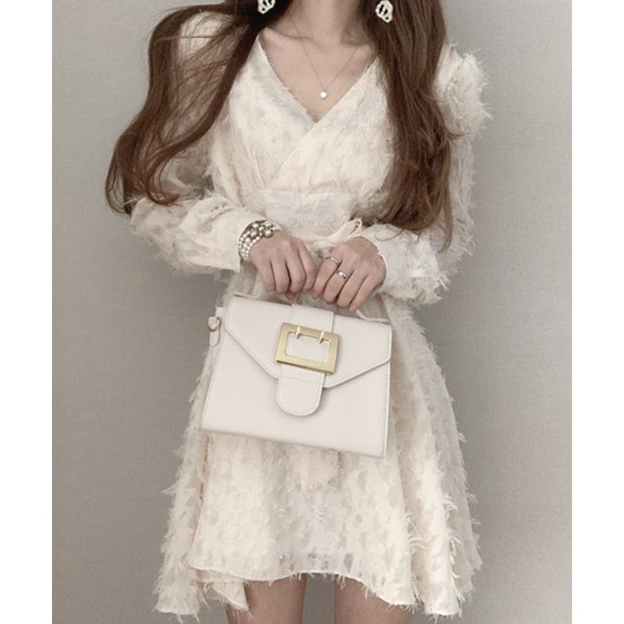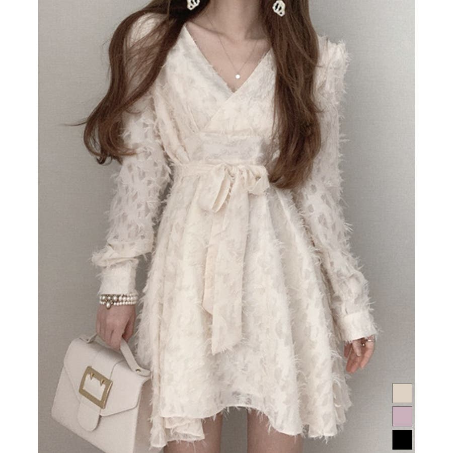 Vネックガーリーワンピース ミニワンピース 韓国ファッション
