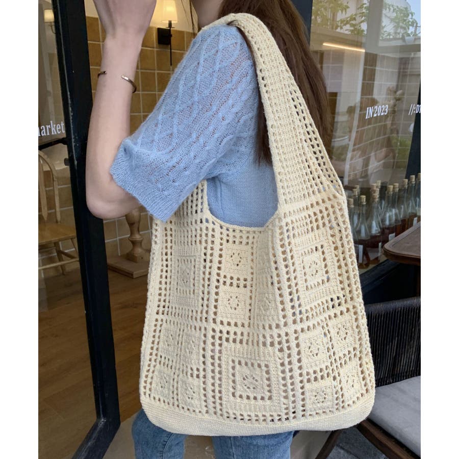 ニット編み大容量トート 韓国ファッション 大容量トートバッグ