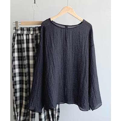 クシュっとしたしわ加工生地が涼しげな雰囲気、動く度にふわっと軽やかに揺れるニュアンスがナチュラルでオトナ女子のヌケ感を演出