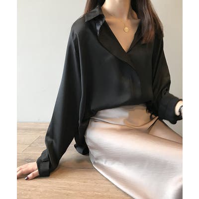 サラッと着こなせて、デコルテのきれい魅せができる長袖スキッパーシャツ