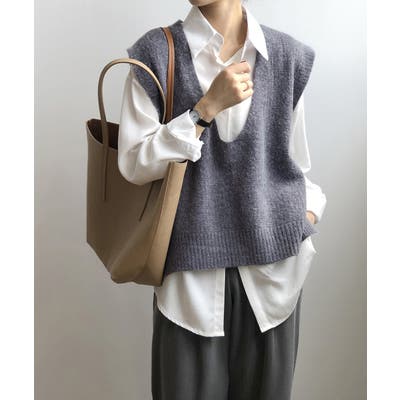 人気トレンドのゆるシルエットの韓国風Vネックニットベストです