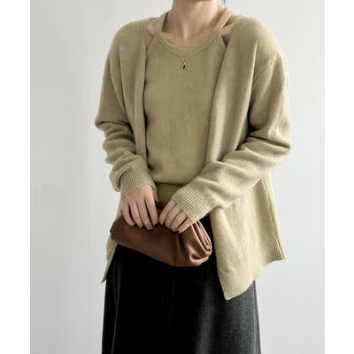 エレガントなホルターネックデザインのニットキャミソールと、軽やかに羽織れるカーディガンの2点セットです。