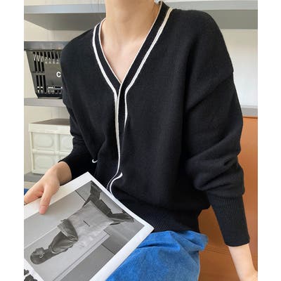 モノトーンのシックで洗練された大人顔テイストのロングスリーブカーディガン