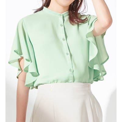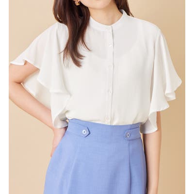 ふわっとした素材感&きちんと見せるバンドカラーで大人レディに装えるブラウス。