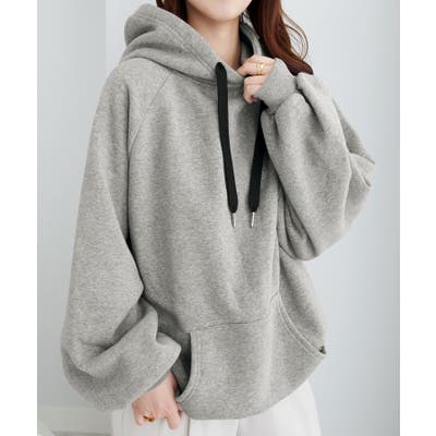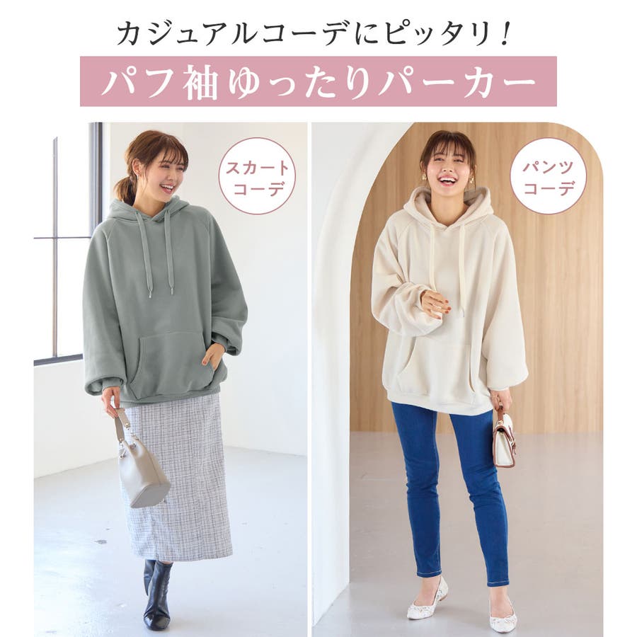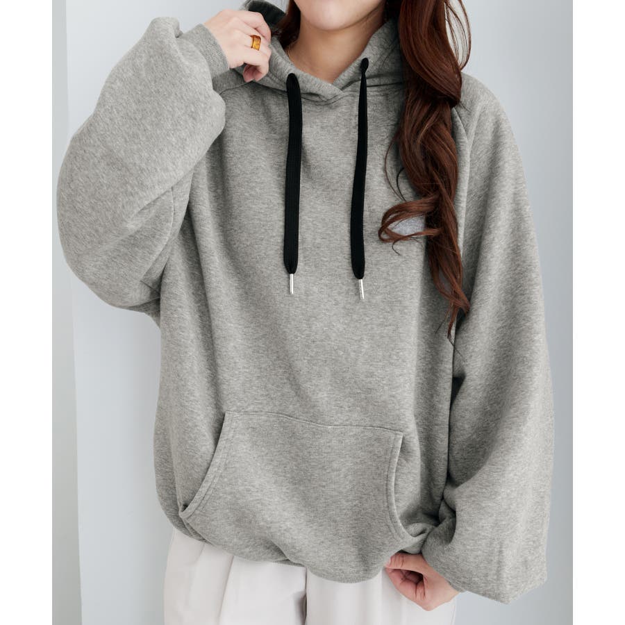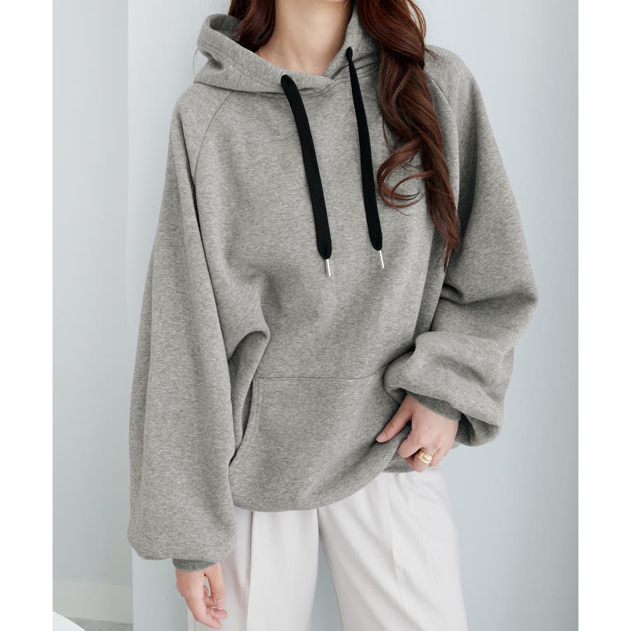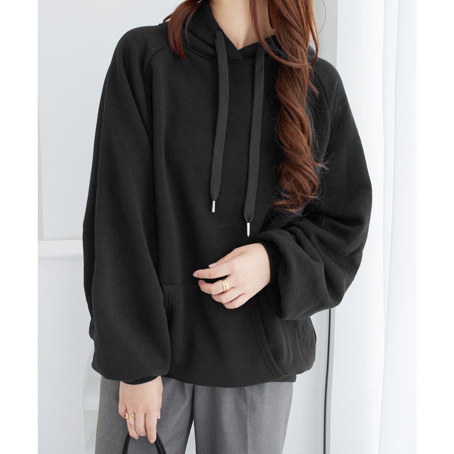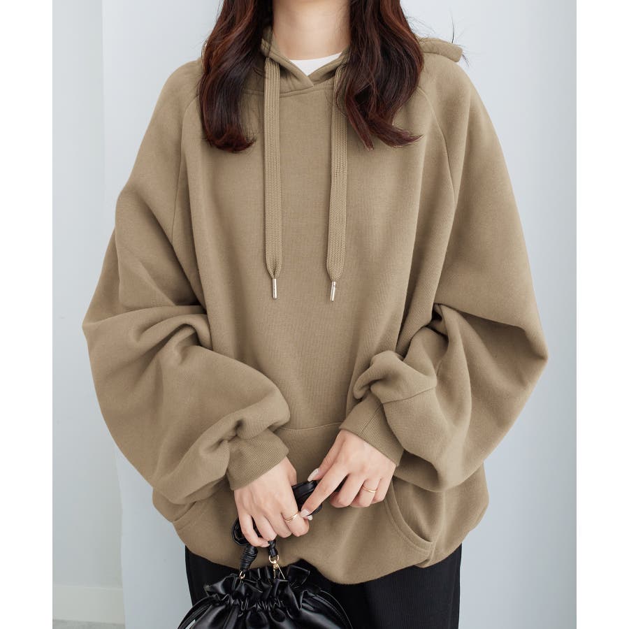ゆるっとかわいい裏起毛ビッグパーカー!ふんわりボリューム袖とビッグシルエットでトレンド感抜群♪
