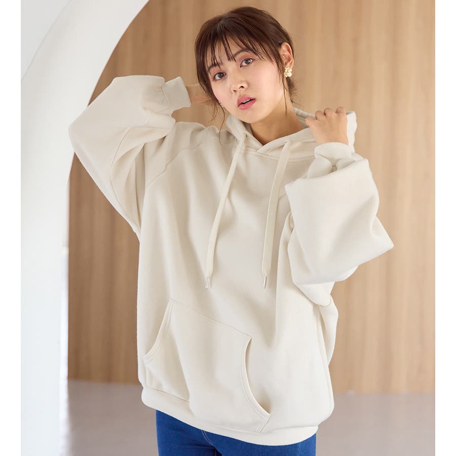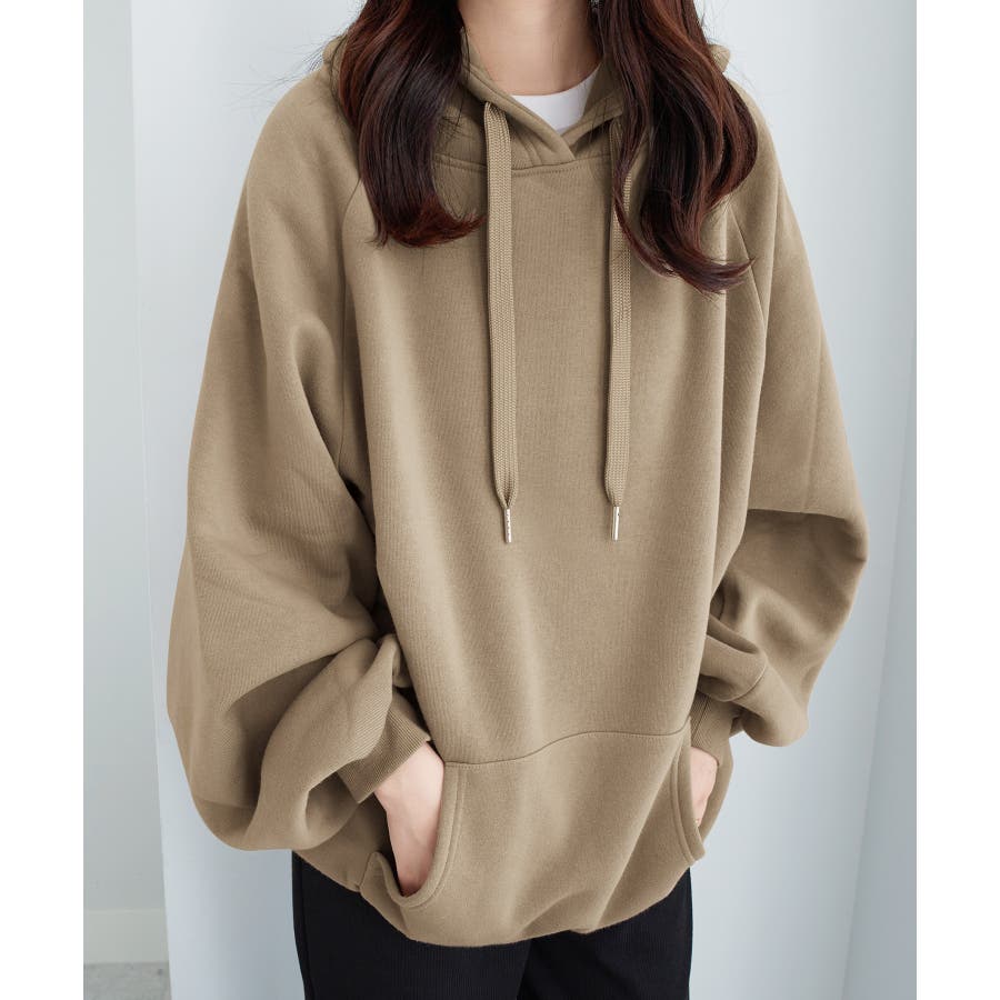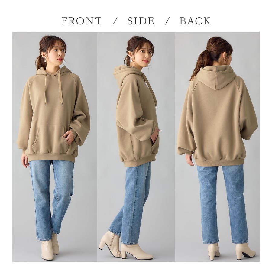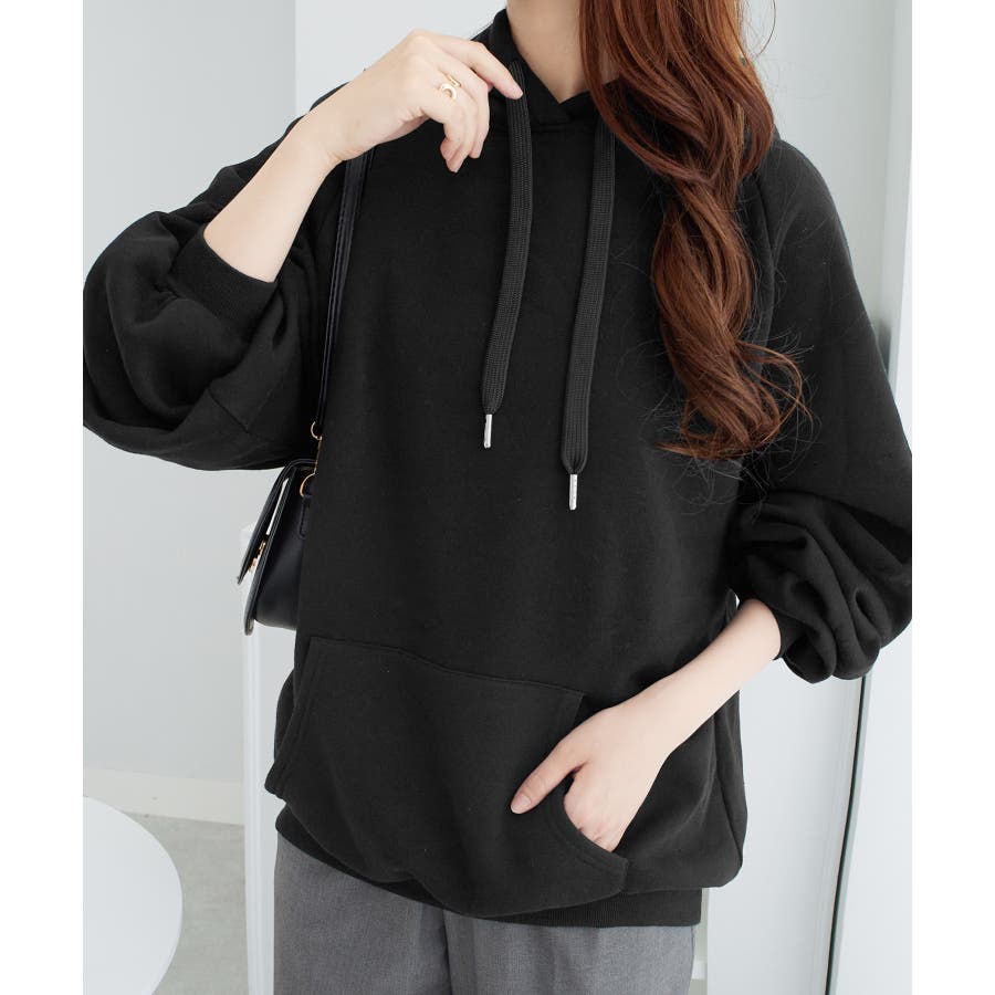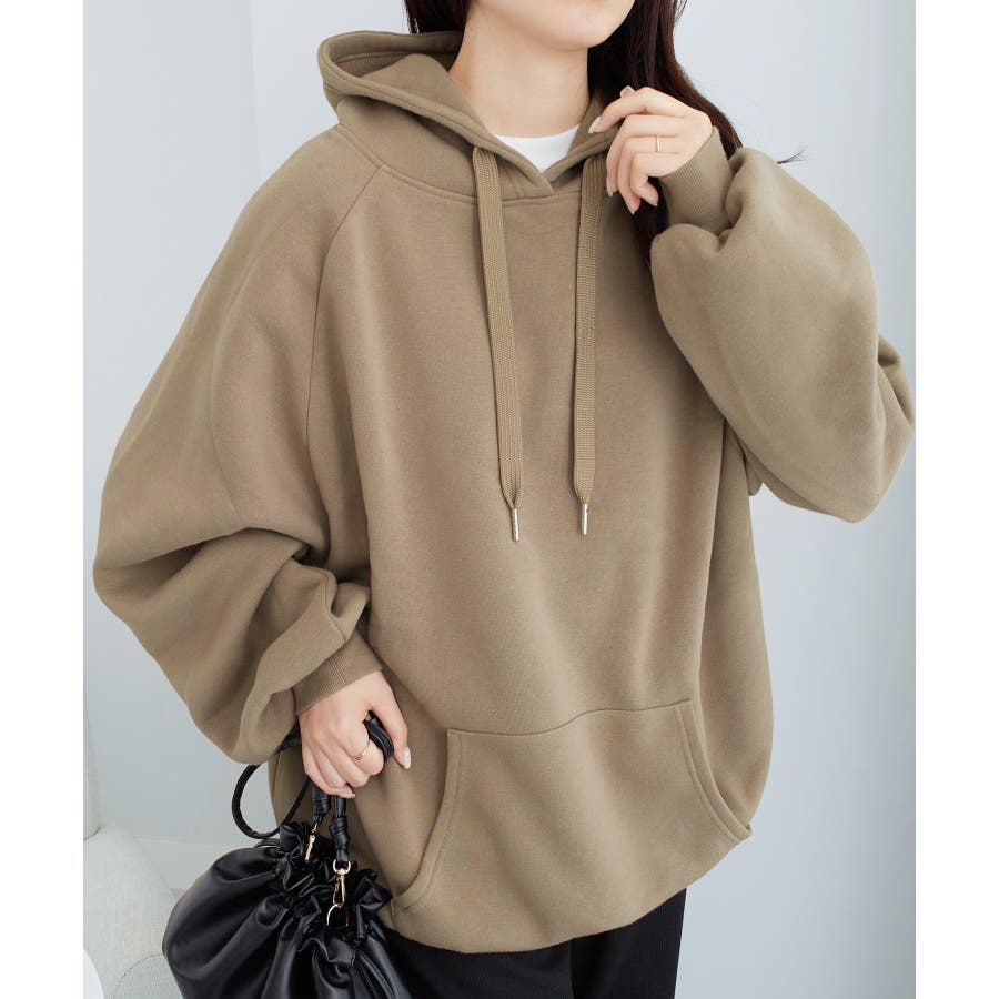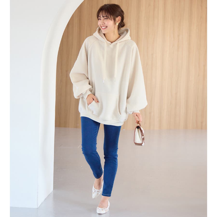 ゆるっとかわいい裏起毛ビッグパーカー!ふんわりボリューム袖とビッグシルエットでトレンド感抜群♪