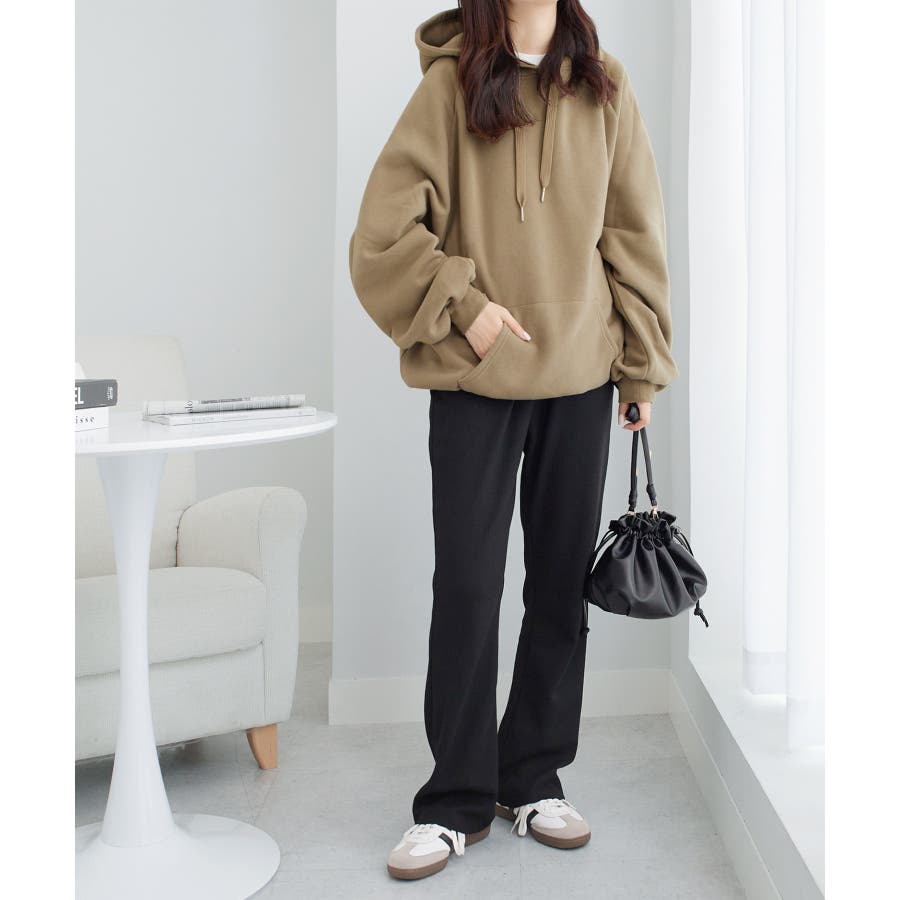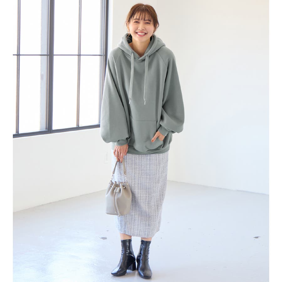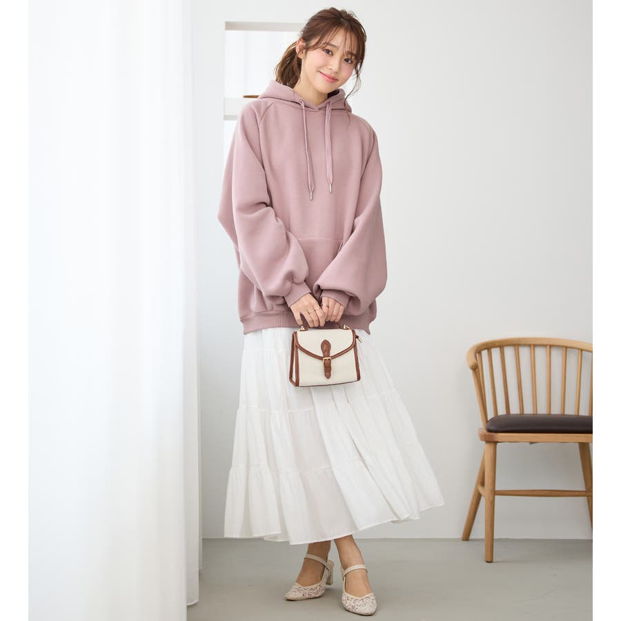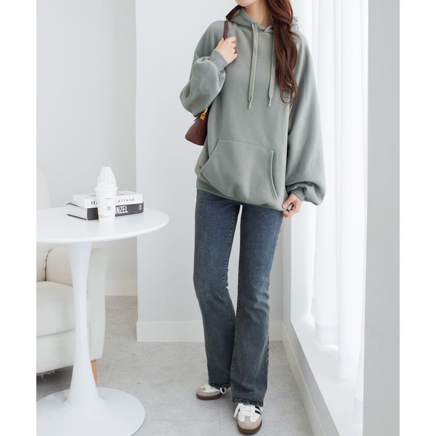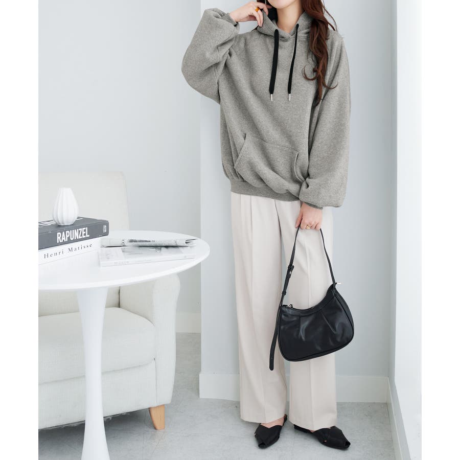 ゆるっとかわいい裏起毛ビッグパーカー!ふんわりボリューム袖とビッグシルエットでトレンド感抜群♪