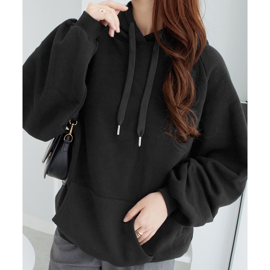 裏起毛パフ袖ゆったりパーカー