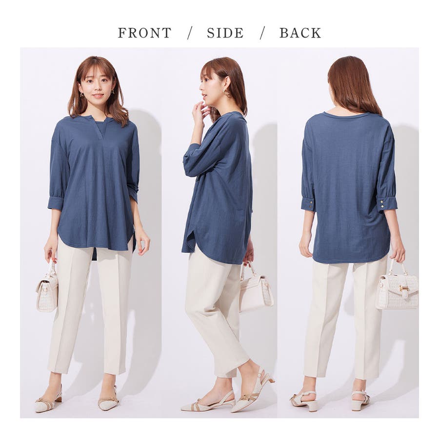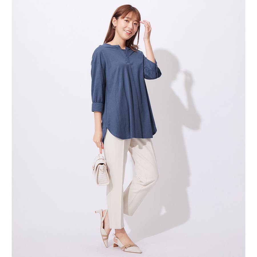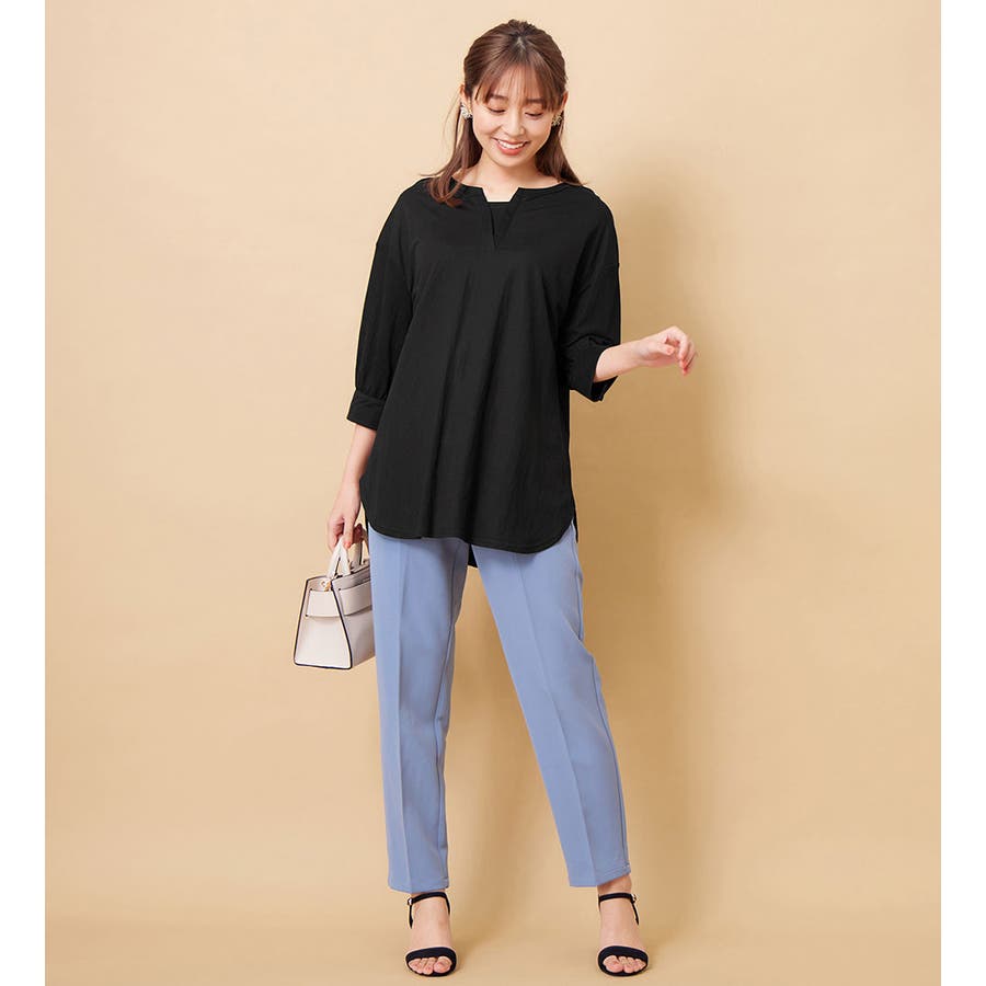 ・レーヨン混のブラウス見えするカットソー素材なので、オフィス使いにも◎