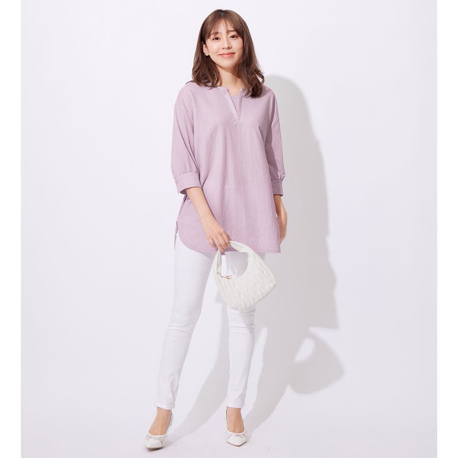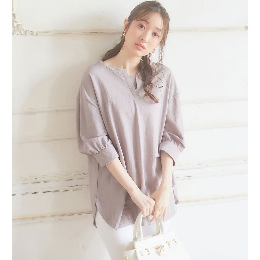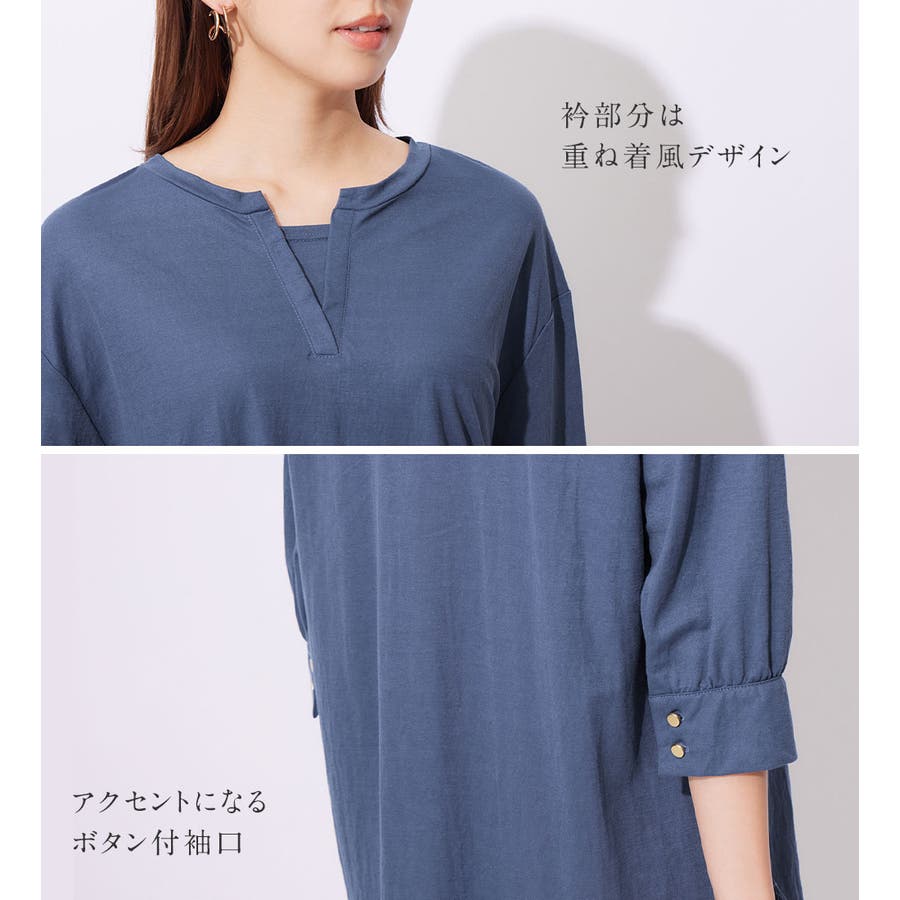 衿フェイク裾ラウンドチュニック