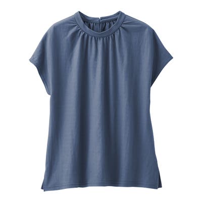 大人っぽく見せるプチハイネックデザインに、衿元ギャザーでこなれ感UP◎