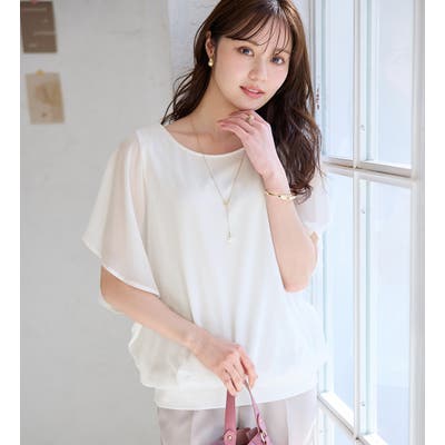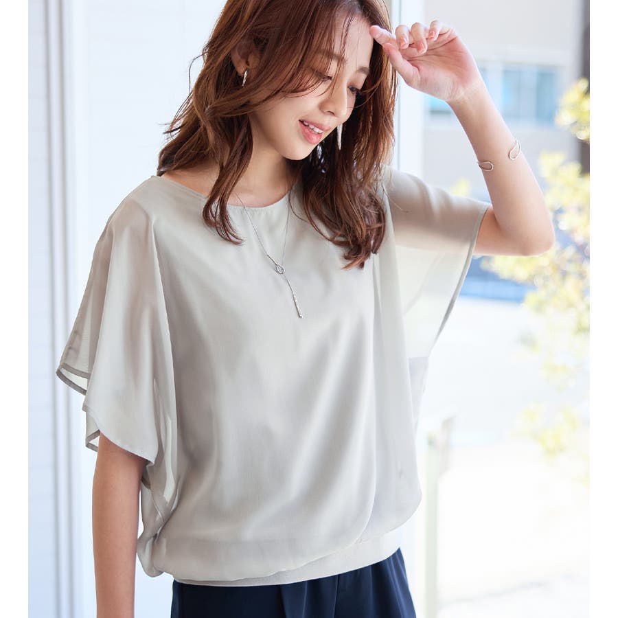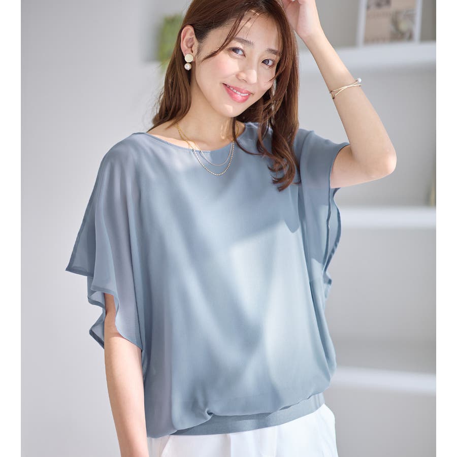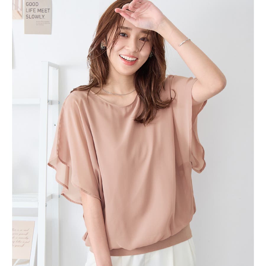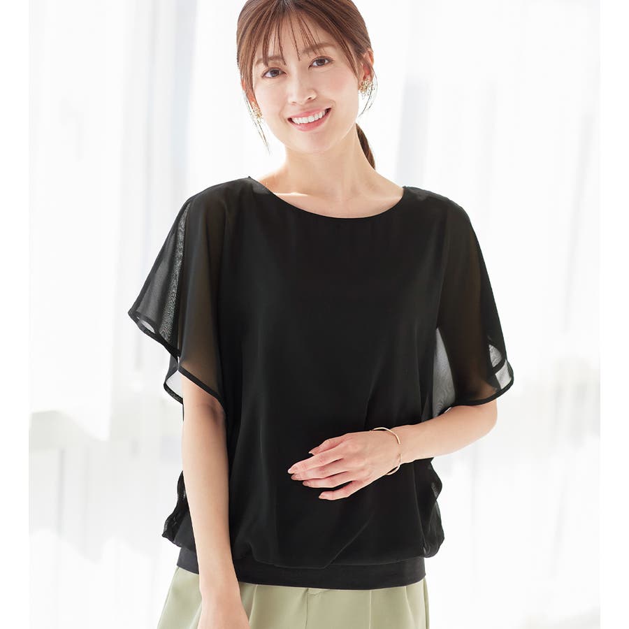 自然に体型カバーも叶える、袖フリルが可愛いゆるシフォンのデザインブラウスです。
