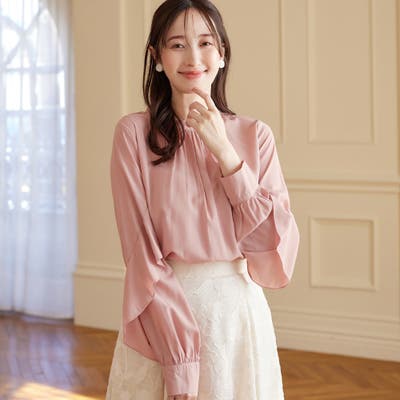 ・袖に斜めにフリルを施したフェミニンなブラウス。