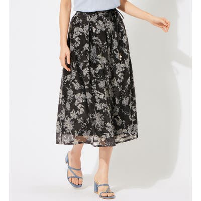 透け感のあるオーガンジー素材にニュアンスの花柄がプリントされたフレアースカート。