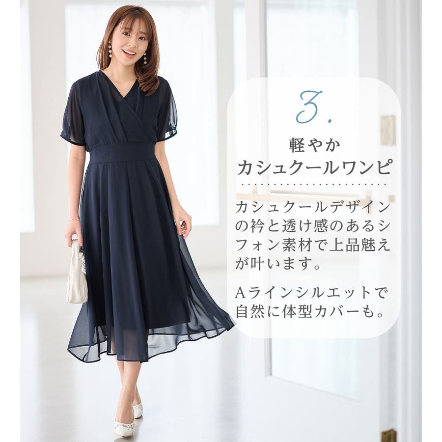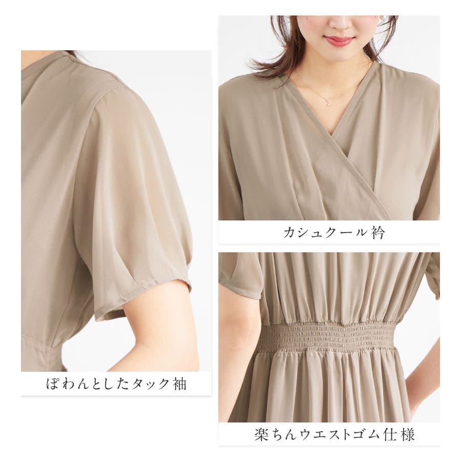 カシュクールデザインが上品見え!ウエスト切替でスタイルアップ魅せが叶います。