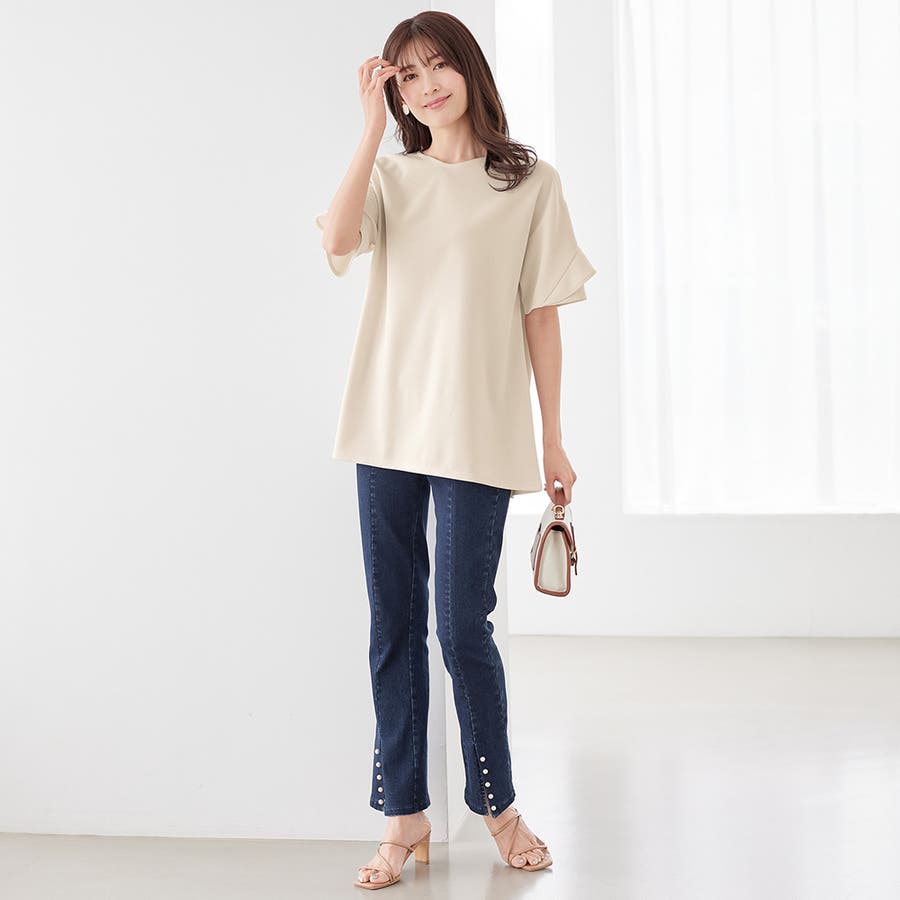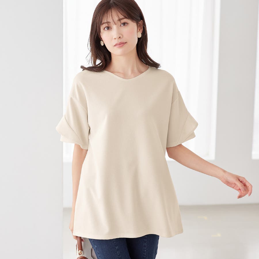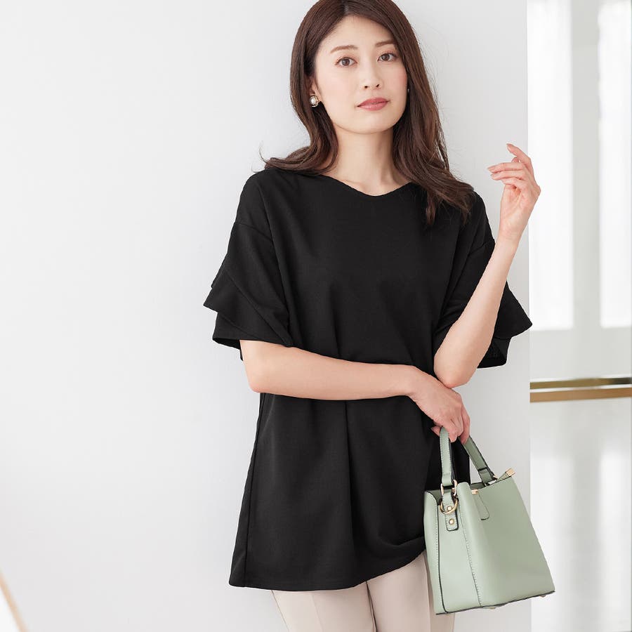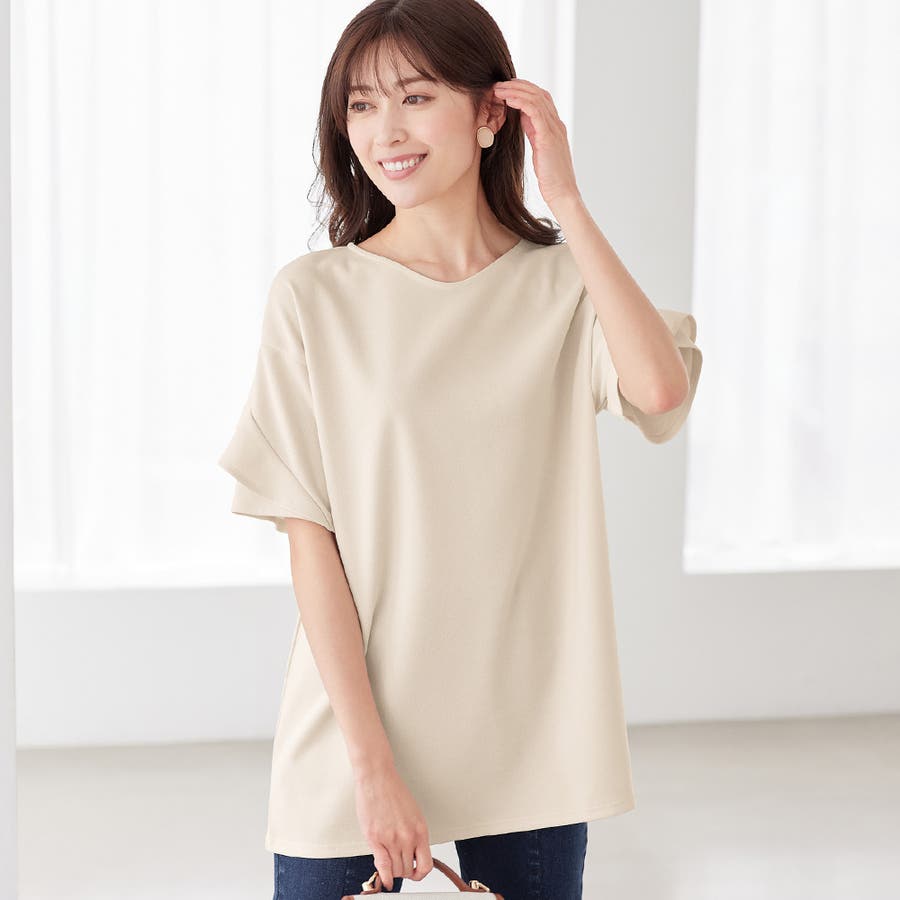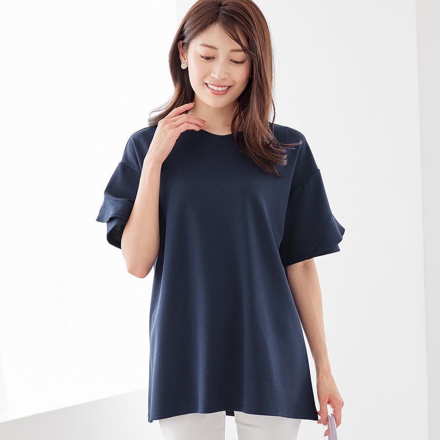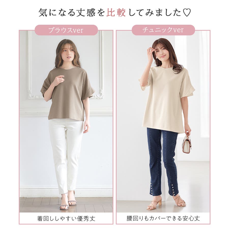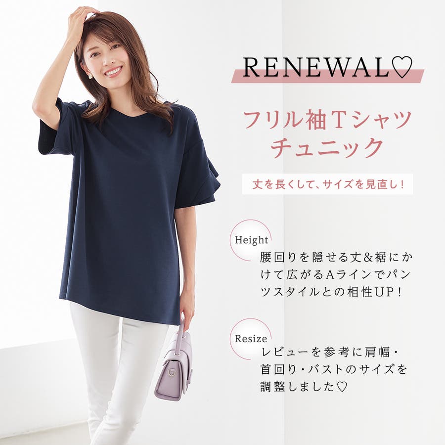 大人気商品「フリル袖Tシャツブラウス」のチュニックタイプが新登場!